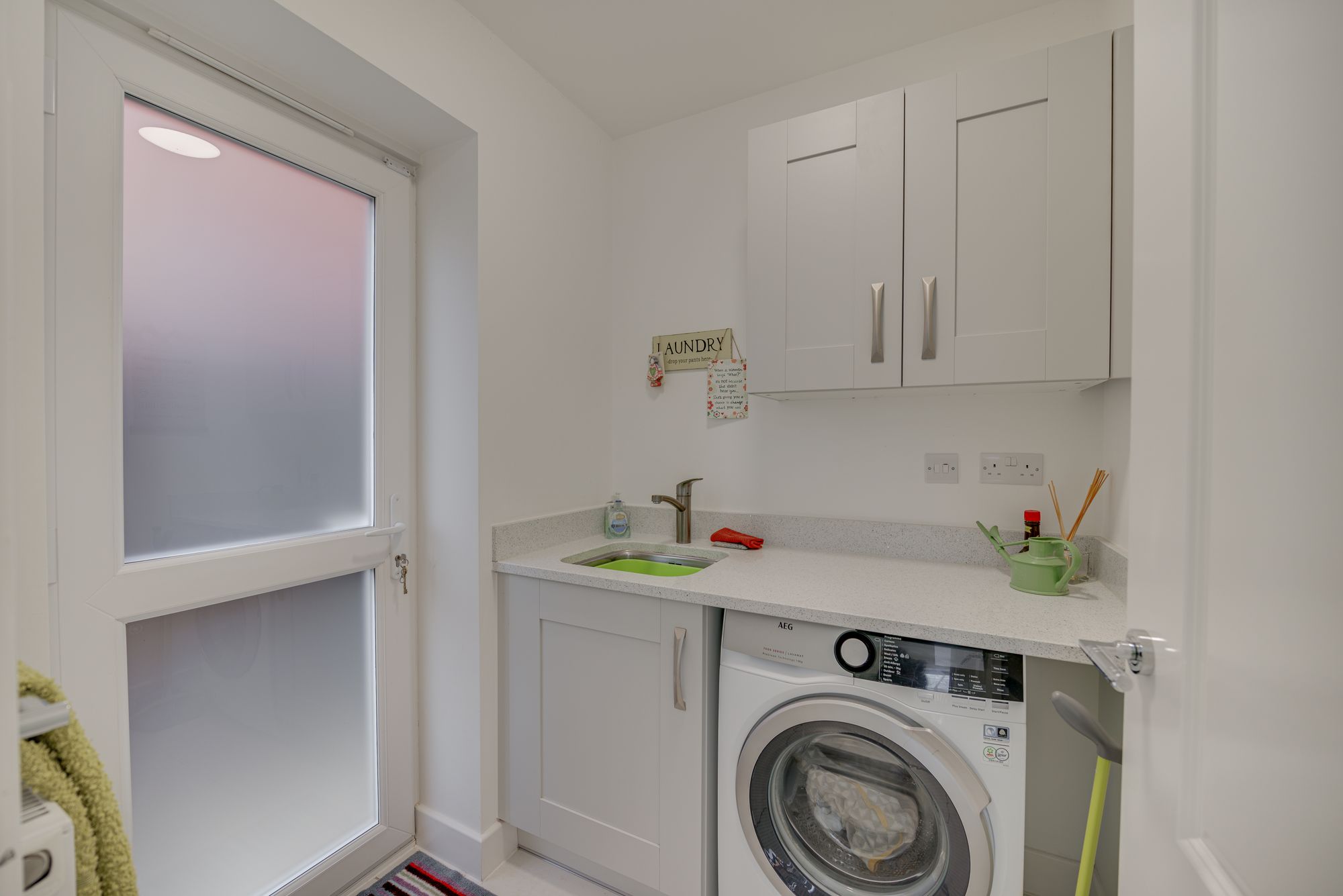 Practicality has not been overlooked. A well-equipped utility room with stone worktops, ground floor WC, and internal access to the garage make everyday life effortless. The garage offers excellent storage, houses additional appliances, and features an electric door and Hive-controlled heating system for modern convenience.