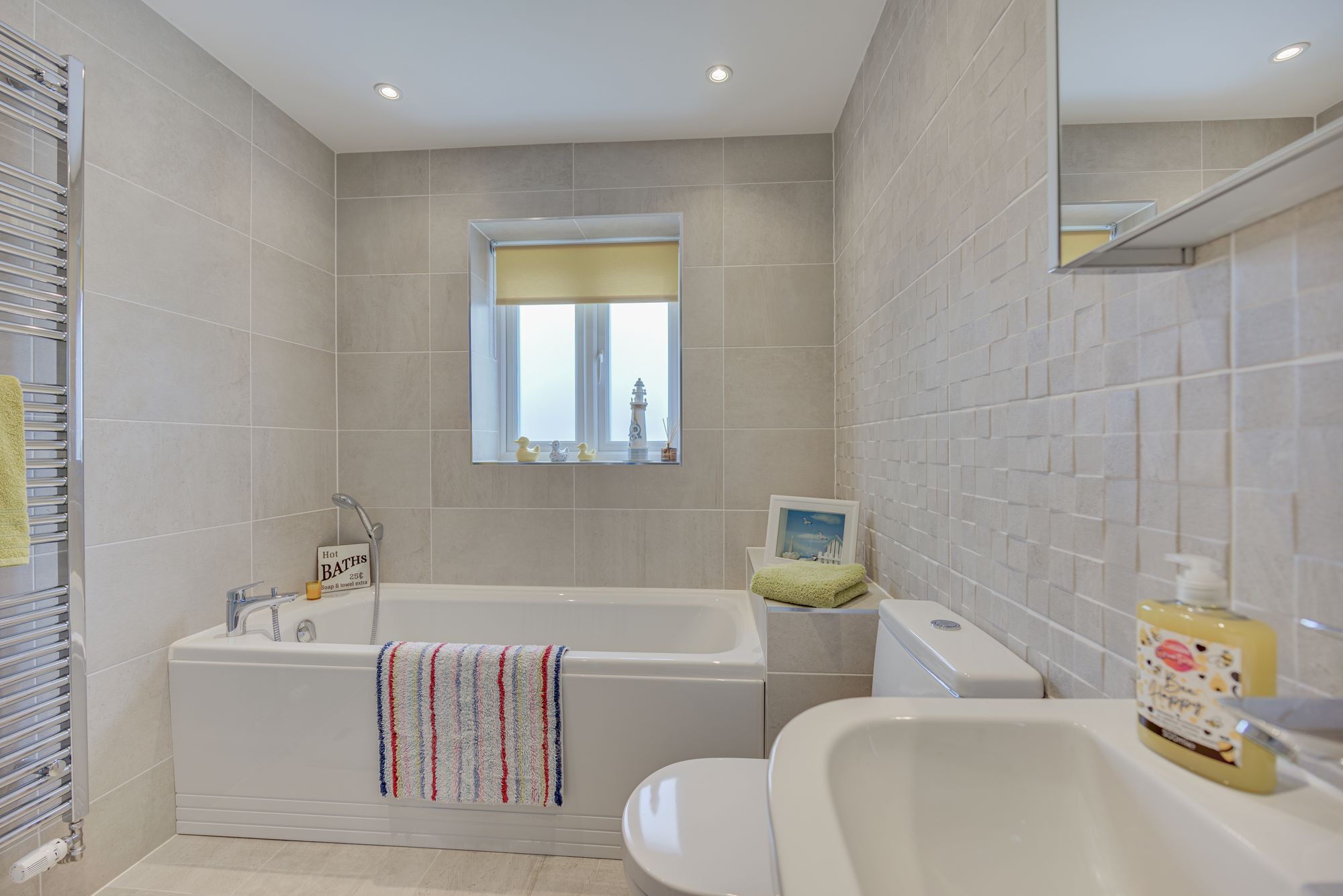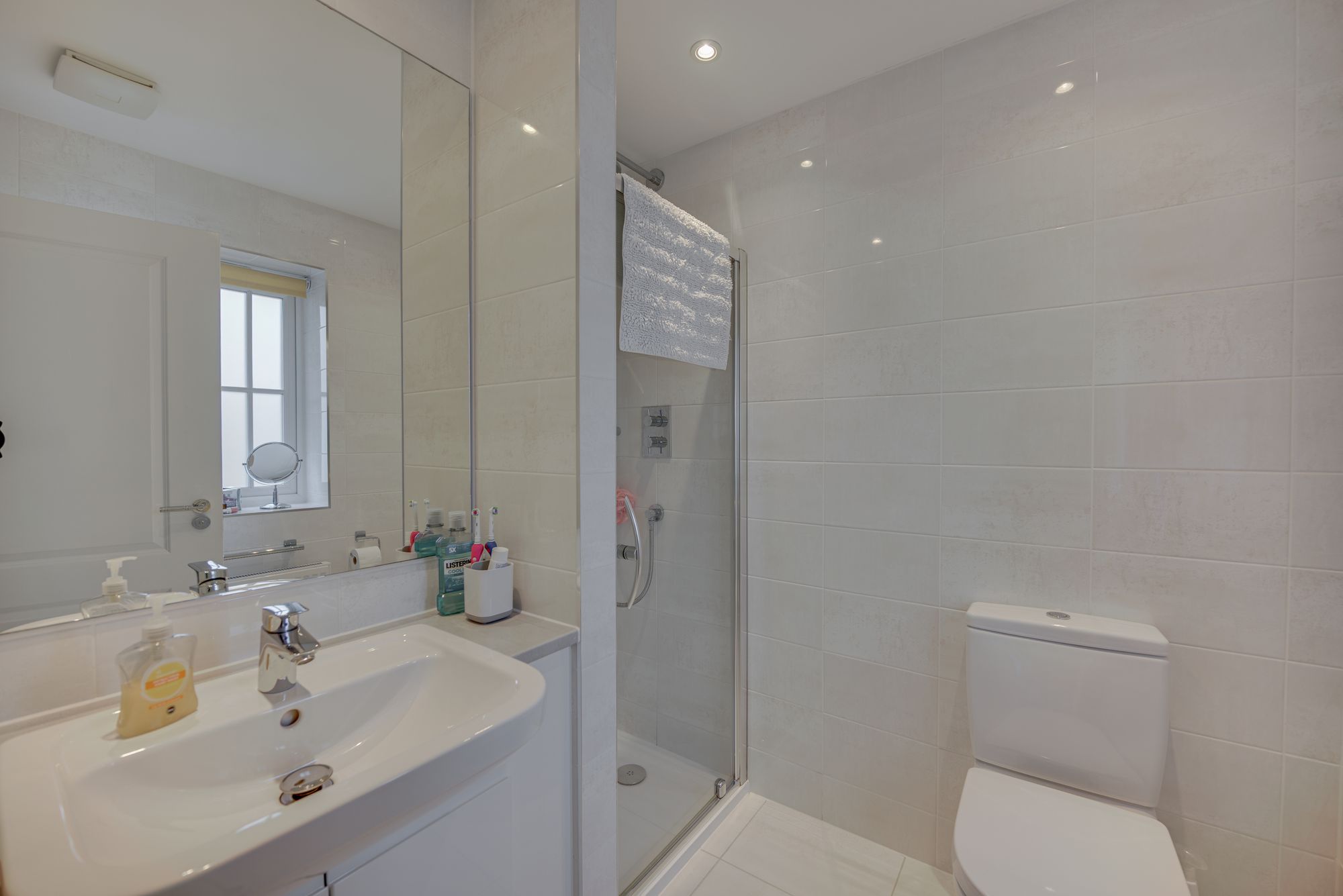 Upstairs, the home continues to impress with four generous double bedrooms arranged around a central landing. This flexible layout easily accommodates growing families, home working, or guest space. The principal superior double bedroom features fitted furniture and a stylish en-suite shower room, while the family bathroom offers both a bath and separate shower. Both bathrooms are finished with high-quality Villeroy & Boch fittings and elegant tiling, delivering a hotel-style feel.