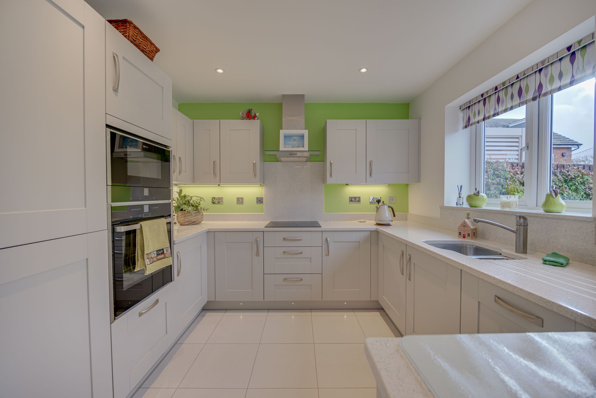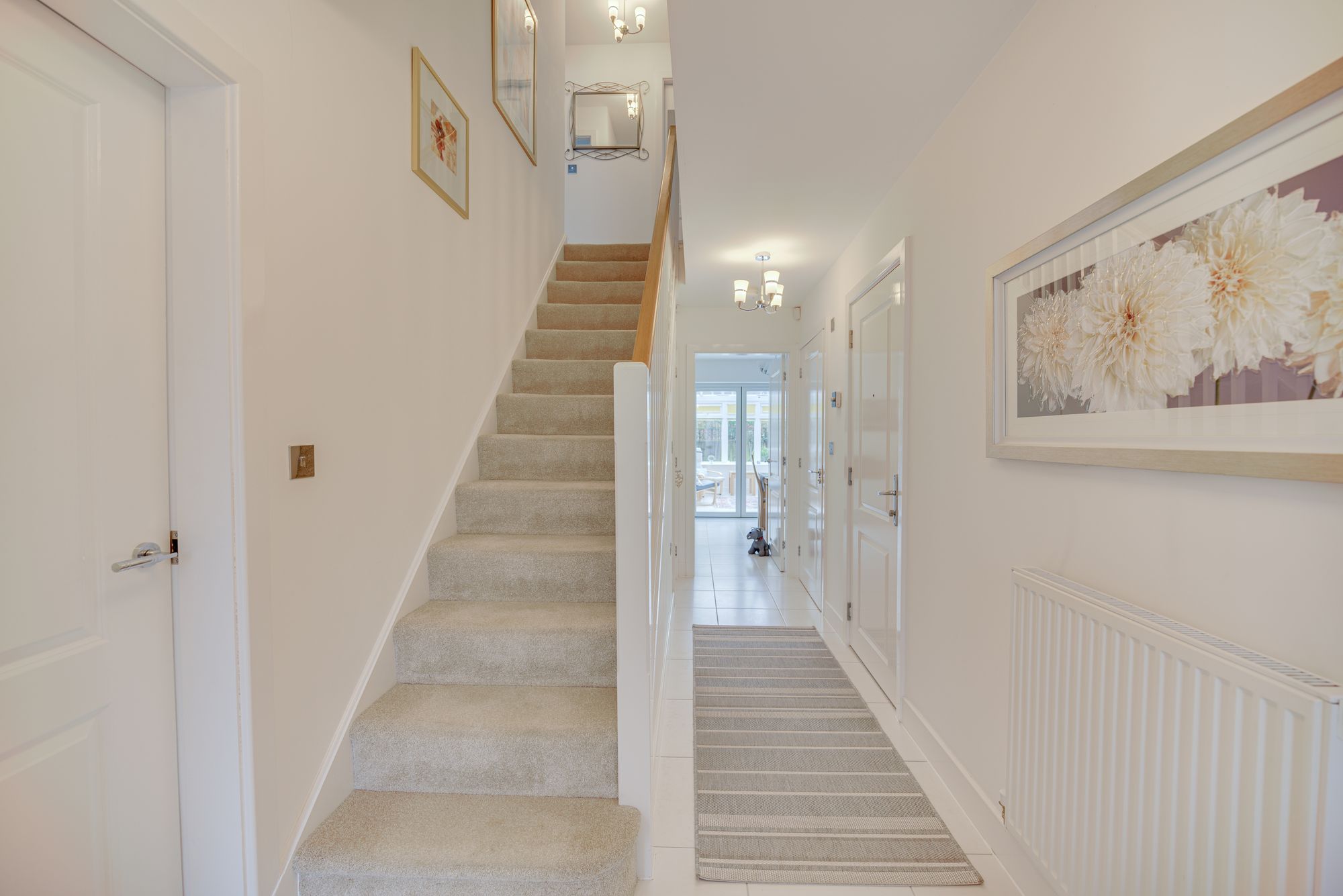 Inside, you are greeted by a bright and spacious hallway with useful storage. The bay-fronted spacious lounge offers a cosy retreat, complete with an elegant fireplace โ perfect for relaxing evenings. The heart of the home is the impressive full width open-plan living, dining and kitchen space. Featuring high-quality cabinetry, stone worktops and integrated appliances, this is a space designed for both family life and entertaining.