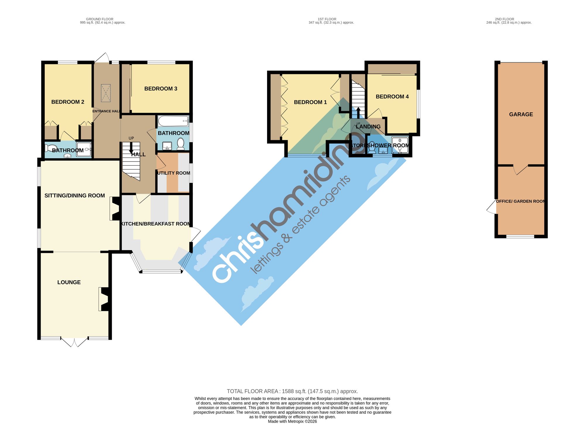 A garage provides excellent practical storage, while the attached garden room, with its large picture window overlooking the grounds, offers a superb home office, snug or peaceful retreat—ideal for working from home or simply enjoying the garden in all weathers and seasons.