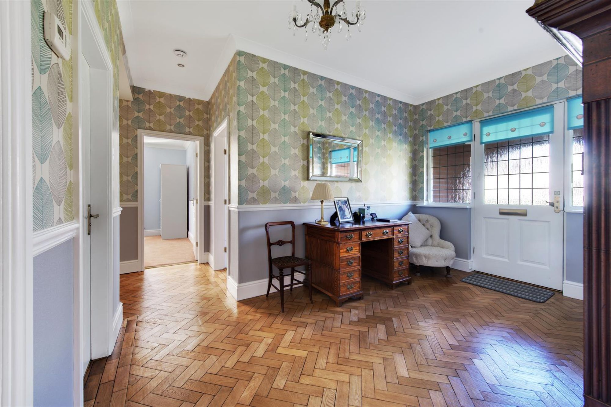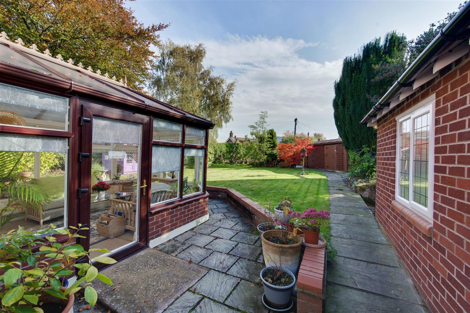 Accompanying this home are a wealth of features to note, some of which include:- wood block flooring to the entrance hall, a feature bay window and fireplace to the multi-aspect formal lounge, a high quality in-frame fitted kitchen with natural marble working surfaces, branded appliances & Amtico flooring. There is a separate utility organising the space and at the rear of the home a sizeable conservatory with wonderful vistas over the rear gardens. Having three well-balanced bedrooms, the principal room has a refitted stylish en-suite shower room and is rear garden facing too! Bedroom two enjoys a range of quality built-in oak cabinetry whilst bedroom three is a versatile space, whether you require it as another double guest room or even a formal dining area!