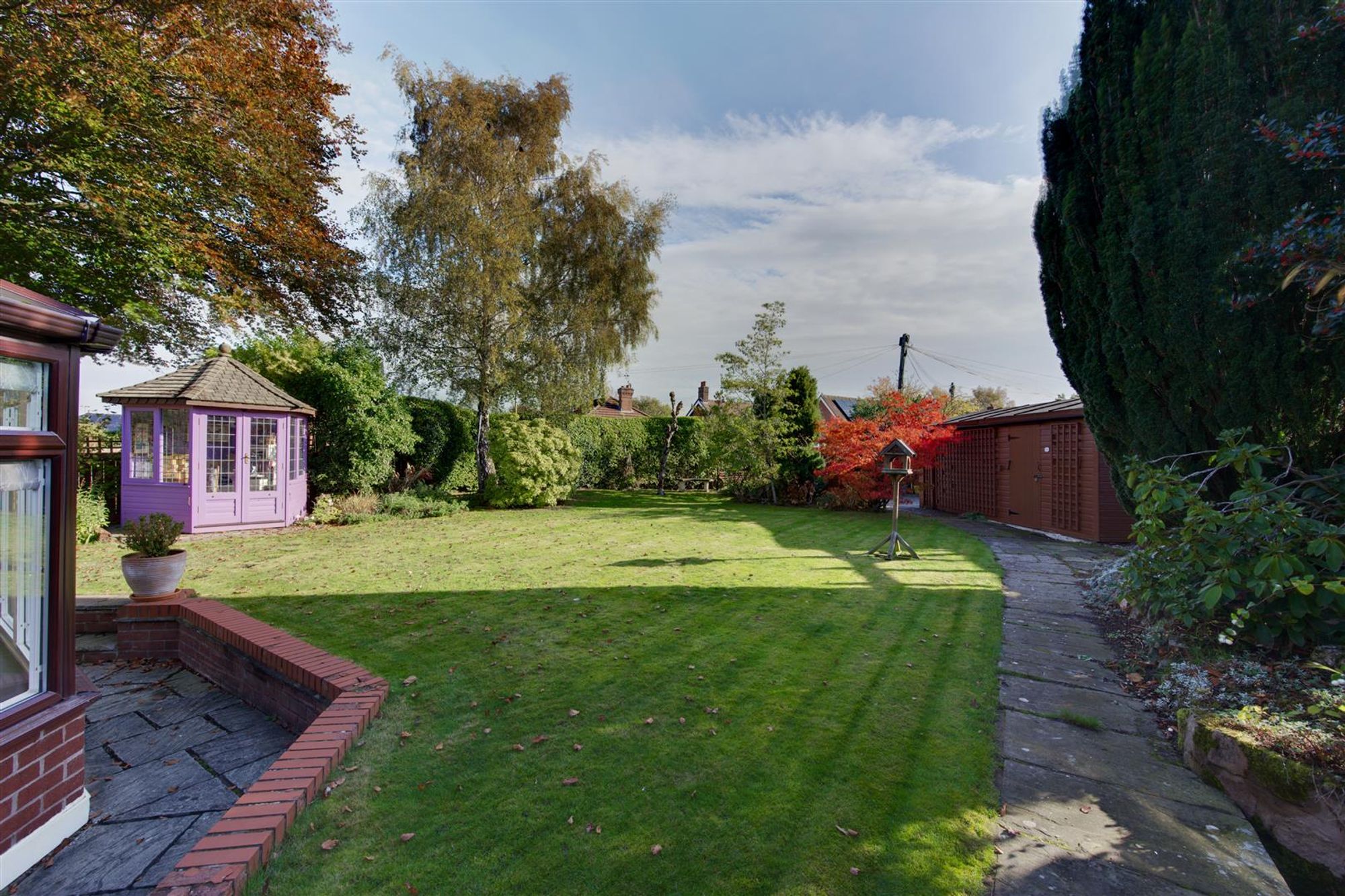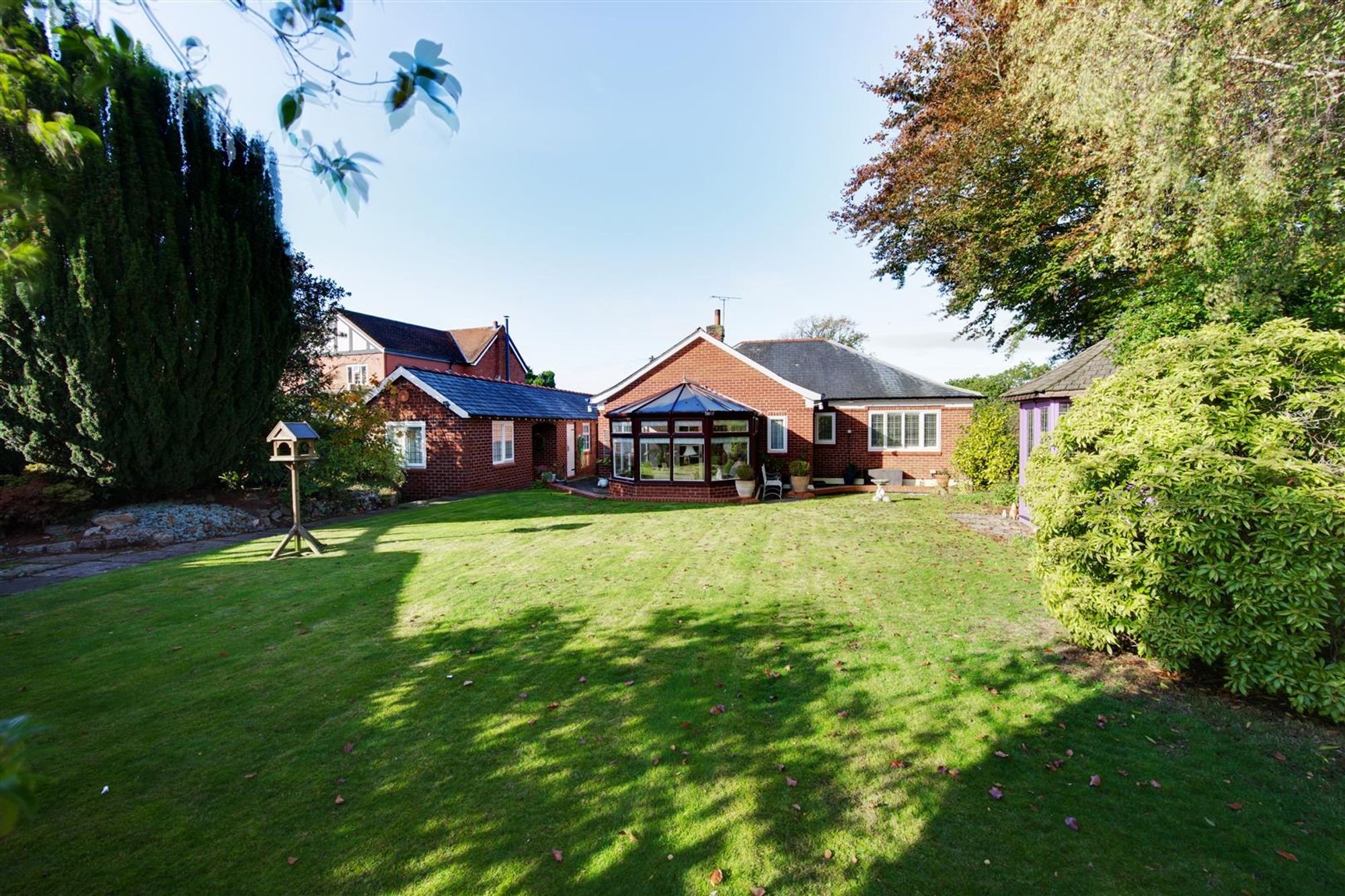 Externally, the home is approached via an Indian stone driveway, leading to a detached garage with brick-built office and garden store behind. The rear garden is beautiful and mature, being a manageable size and enjoying an excellent degree of privacy and a south facing aspect. In addition, a secondary garage and driveway access can be found at the foot of the garden.