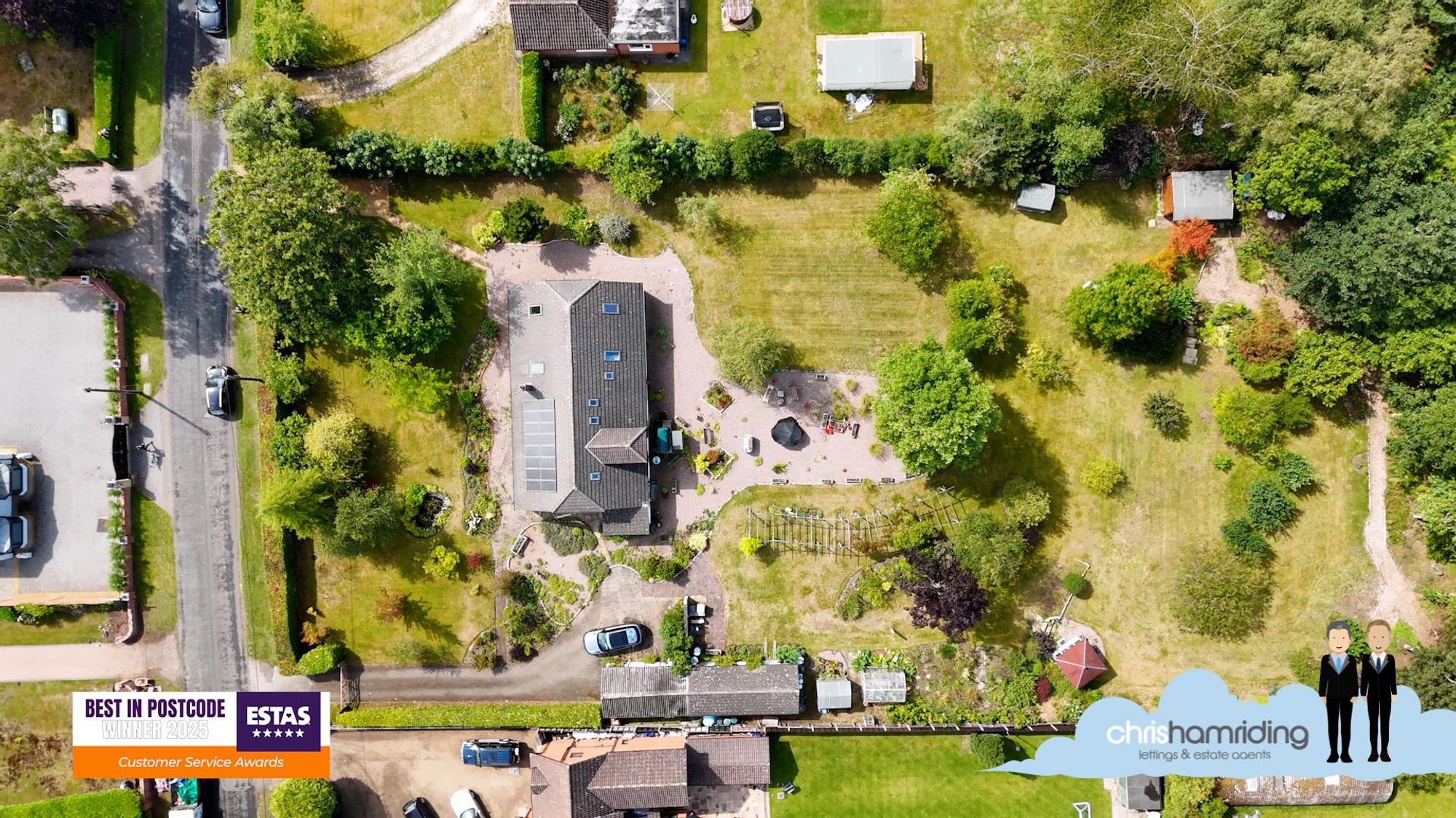 • Extensive mature gardens, woodlands and gated driveways