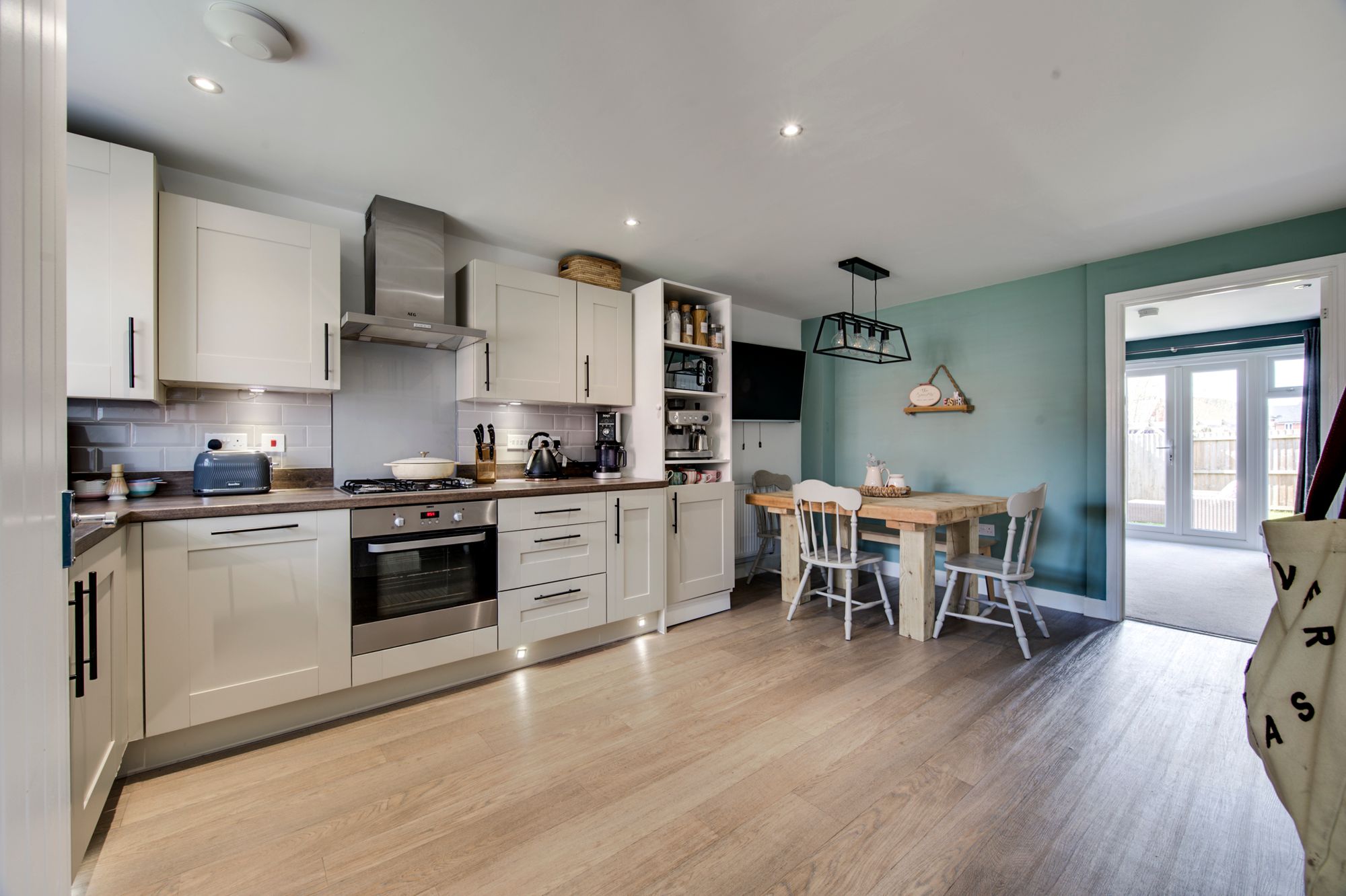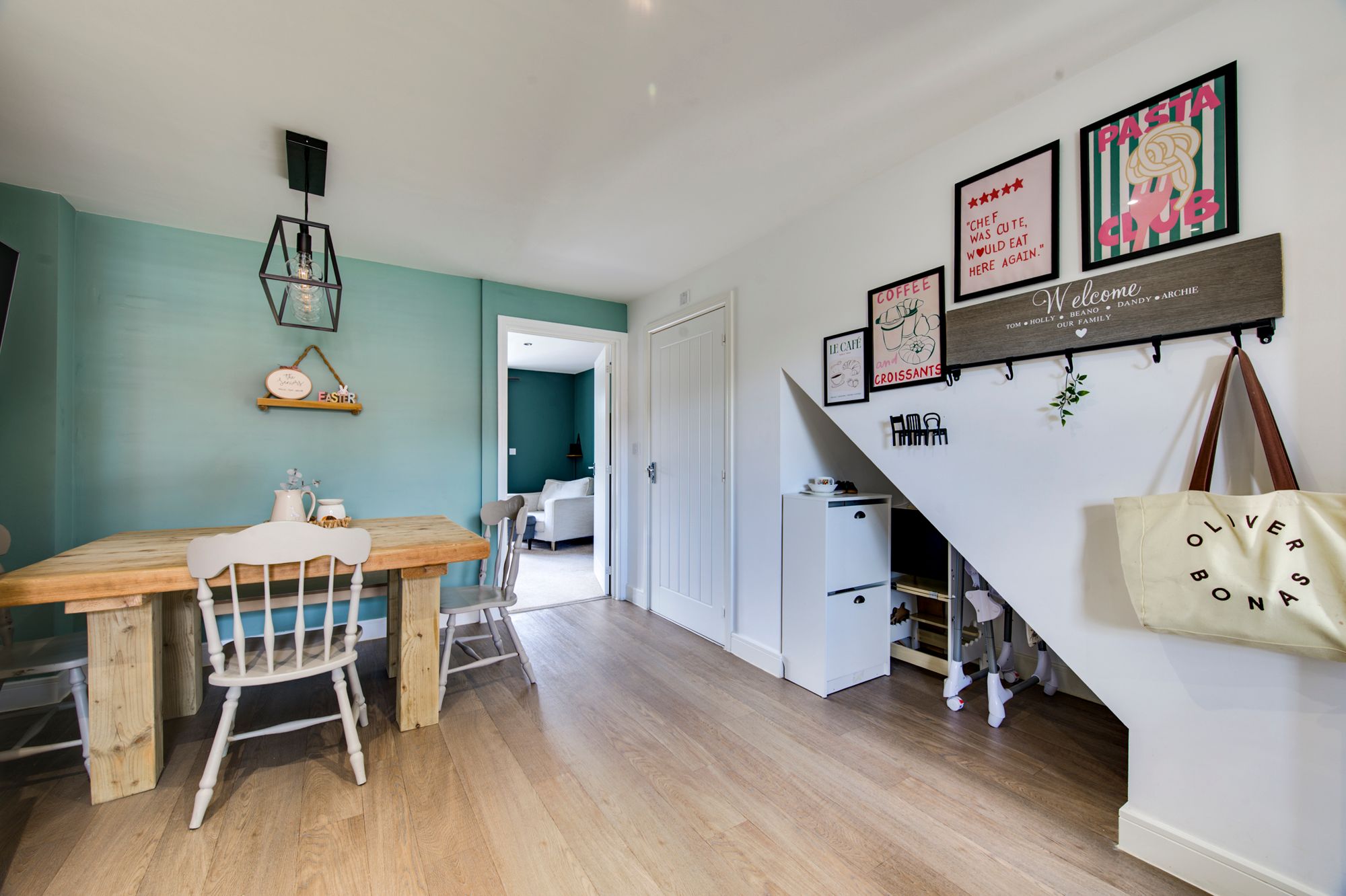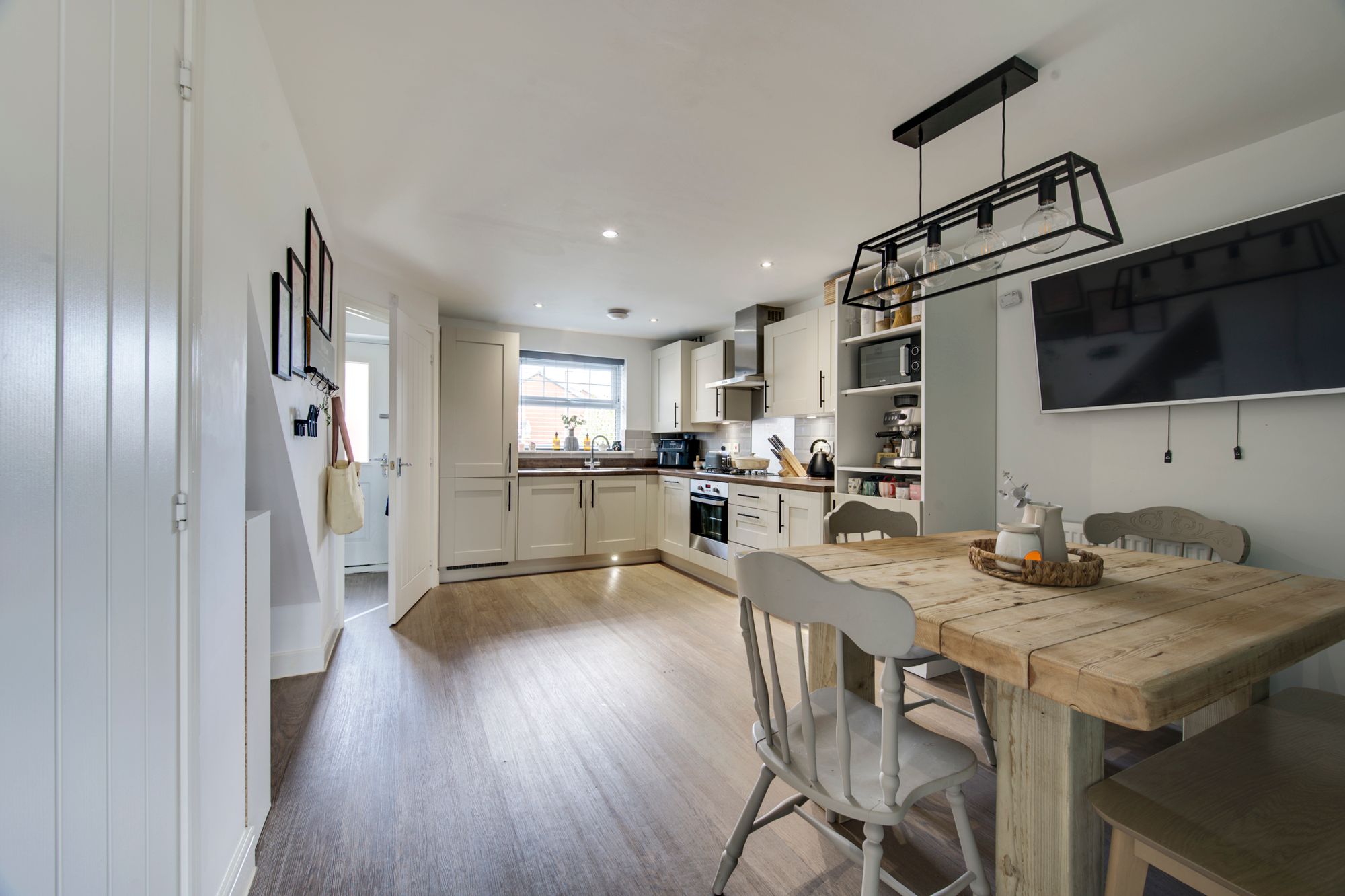 Accompanying this freehold home are a wealth of features to note, some of which include:- energy efficient double glazing and gas central heating, a welcoming entrance hall with two tone decor, an open-plan kitchen/diner featuring a contemporary ‘Symphony’ kitchen and complete with a range of integrated appliances and stylish wood-effect flooring, a useful and well presented WC and completing the ground floor accommodation is a spacious lounge towards the rear of the home, backing onto the gardens with French doors leading out to the rear & a media wall.