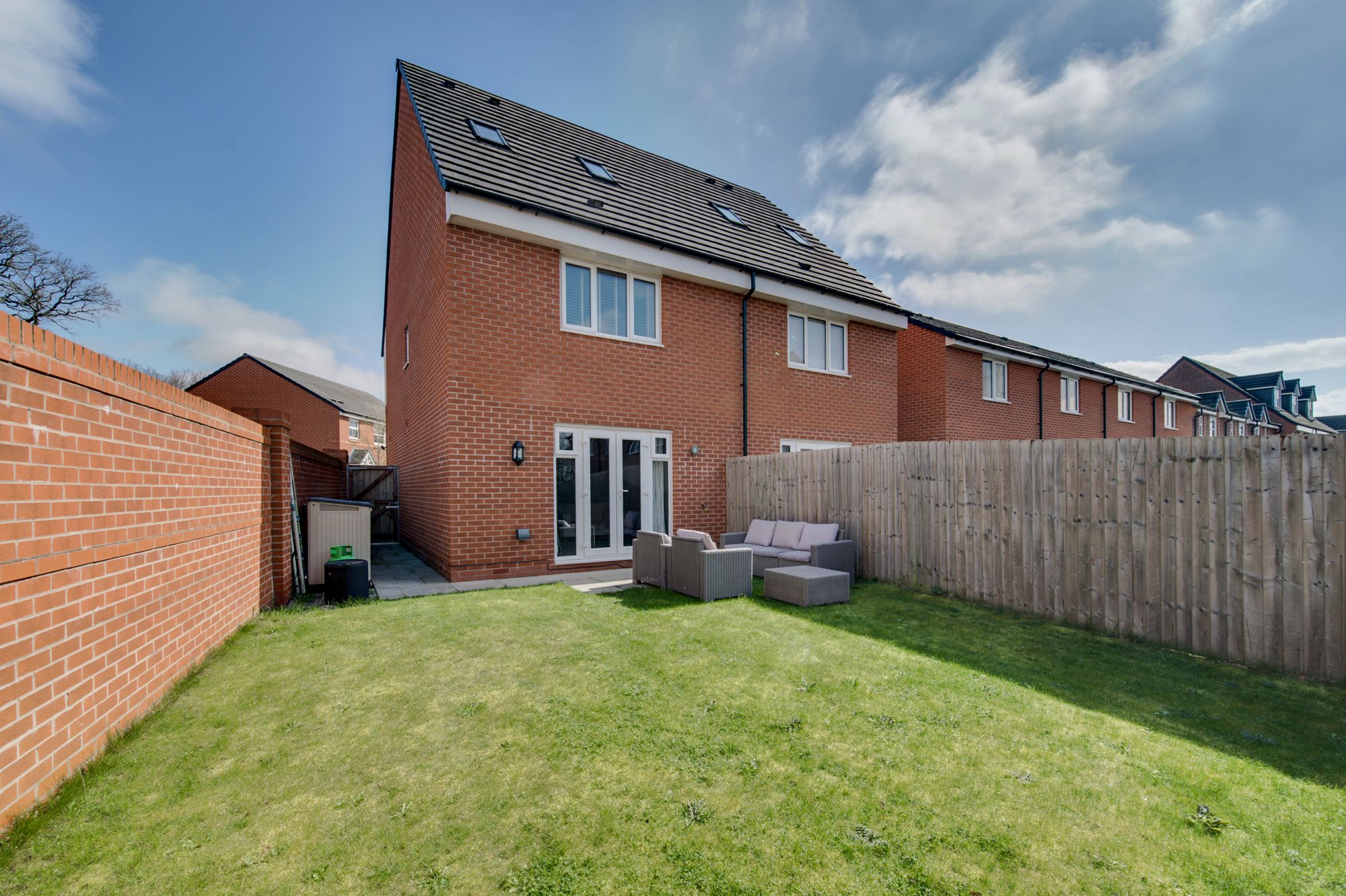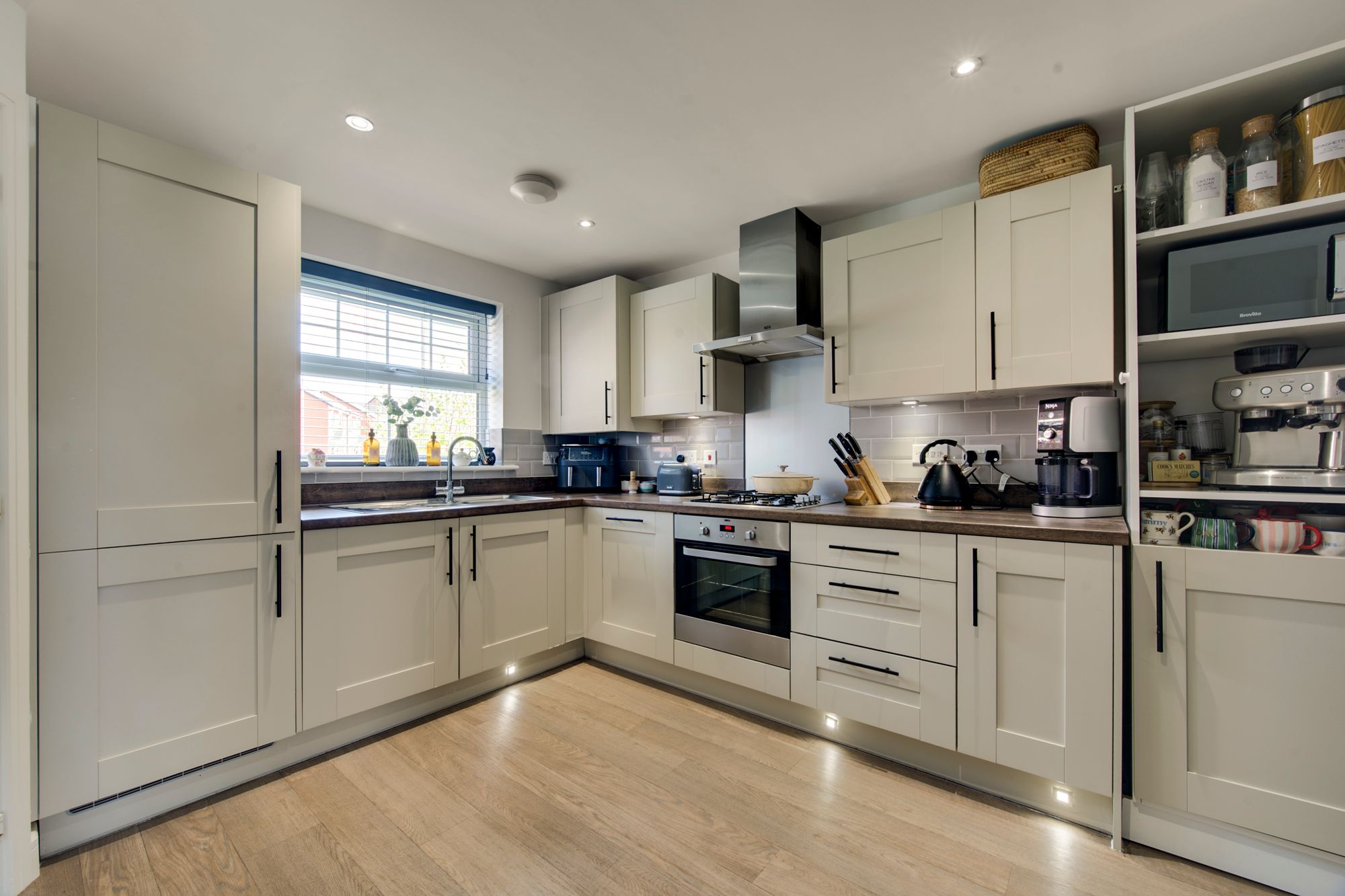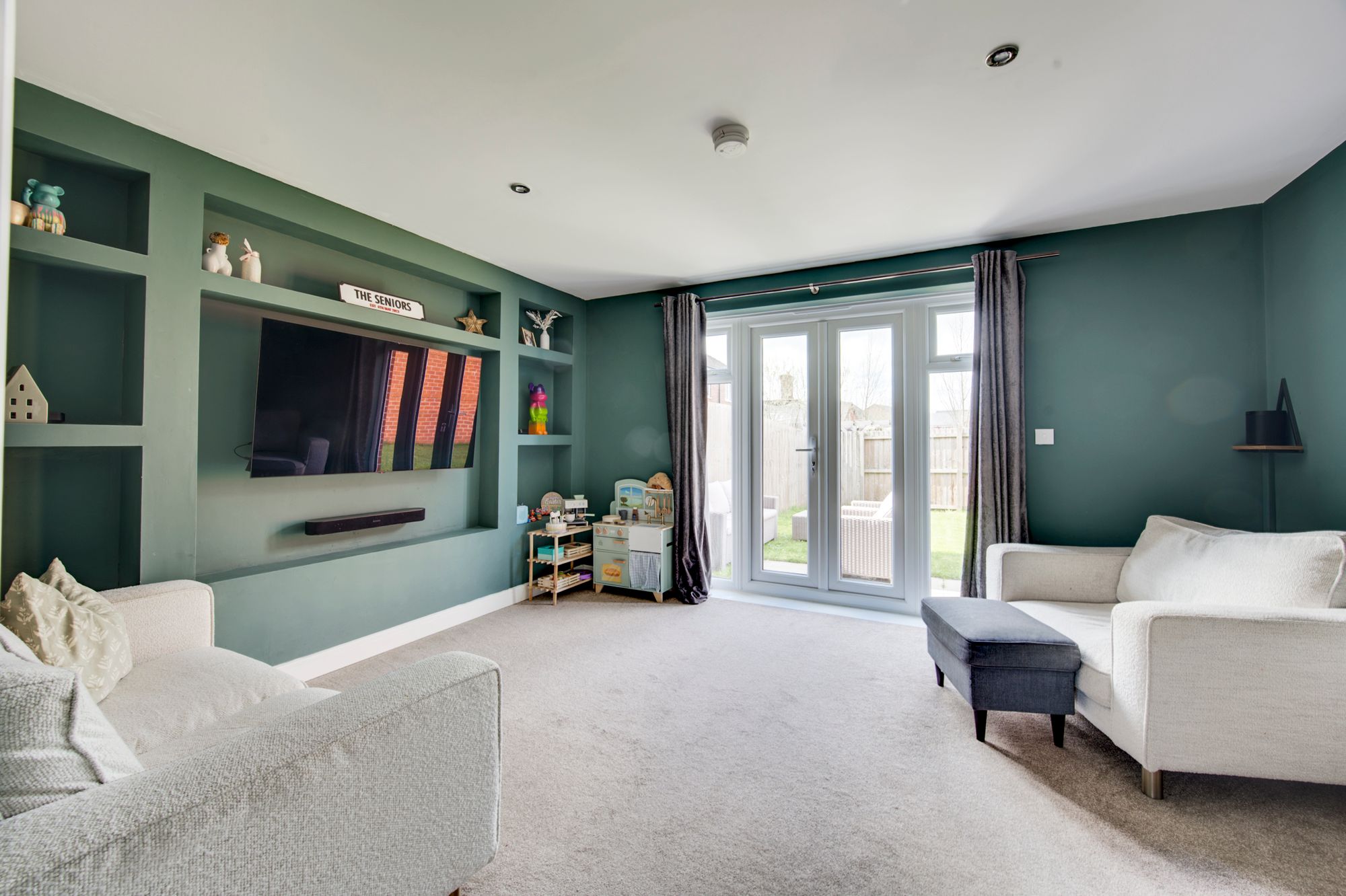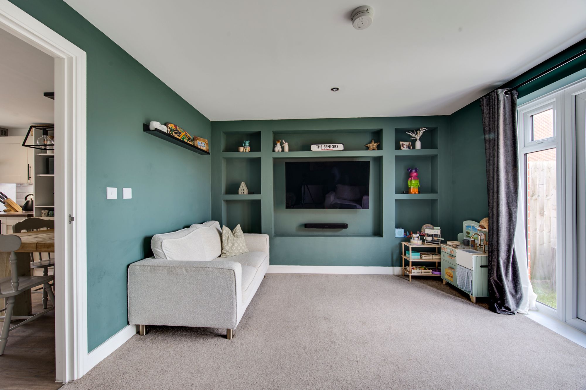 Accompanying this freehold home are a wealth of features to note, some of which include:- energy efficient double glazing and gas central heating, a welcoming entrance hall with two tone decor, an open-plan kitchen/diner featuring a contemporary ‘Symphony’ kitchen and complete with a range of integrated appliances and stylish wood-effect flooring, a useful and well presented WC and completing the ground floor accommodation is a spacious lounge towards the rear of the home, backing onto the gardens with French doors leading out to the rear & a media wall.