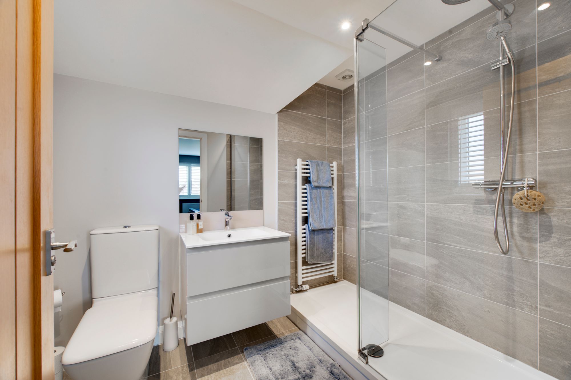 Moving upstairs, each of the three principal bedrooms up here benefit from their own luxurious en-suite shower/bathroom, providing comfort and privacy for all family members and guests. The master suite has bene clearly thought out and the real surprise was the walk-in wardrobe which fully organises the entire space. The en-suite to this room is a real treat for the mortgage payer with quality, branded sanitary wear, beautiful tiling and feature lighting. Quality finishes and thoughtful touches are evident throughout, ensuring this home is both stylish and practical for modern living.