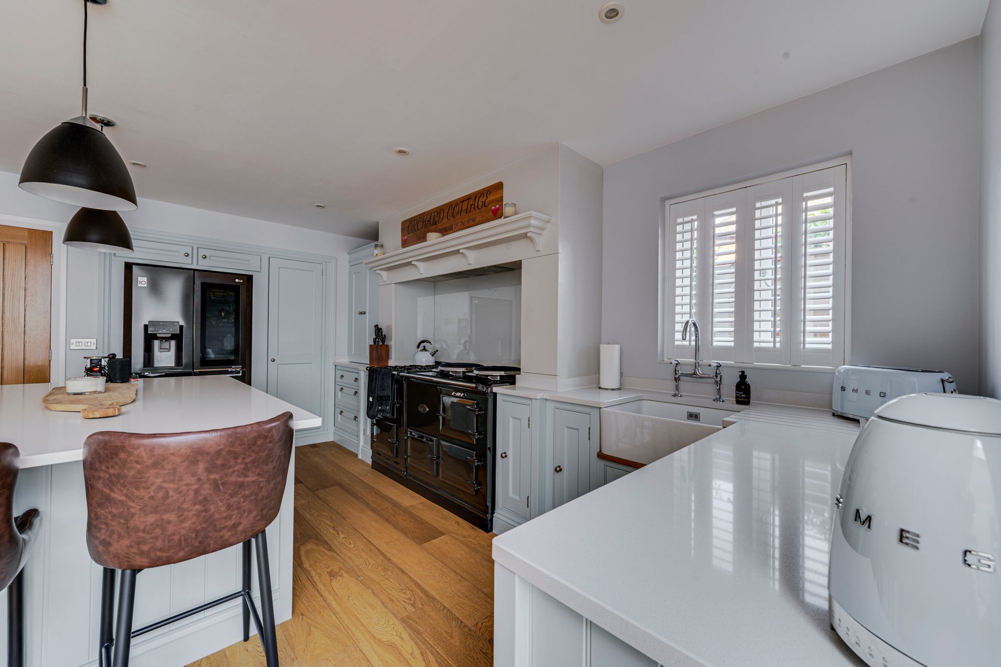 Welcome to โOrchard Cottageโ – This exceptional three/four-bedroom, detached property offered for sale with NO ONWARD CHAIN and nestled in a sought-after thoroughfare close to picturesque canal tow-path walks and miles of open countryside. From the moment you arrive at the gated entrance, youโll be captivated by the sense of exclusivity and privacy, complemented by detached garaging and generous driveway to the rear for further secure parking, convenience and versatility. Step inside to discover a thoughtfully designed, immaculately presented modern build that impresses at every turn, this home truly is the epitome of luxury! The stunning open-plan living and dining kitchen towards the rear is the heart of the home, this expansive space is perfect for entertaining and family gatherings, featuring a truly remarkable โPuddled Duckโ premium bespoke kitchen, complete with high-end fittings, quartz-style preparation surfaces and a wealth of storage to delight any culinary enthusiast! The lounge area is a real showstopper, boasting a dramatic vaulted ceiling, an inviting wood burning stove plus feature glazed doors leading out to the rear terrace. Towards the front of the home, the formal lounge is multi-aspect with feature lighting and another period style fireplace/stove, the perfect play to unwind when not hosting! The entire ground floor enjoys underfloor heating and quality oak-style flooring. Currently set up as a snug lounge/home office, the third reception room is versatile and could make the perfect fourth guest bedroom, or ideal play room, if required.