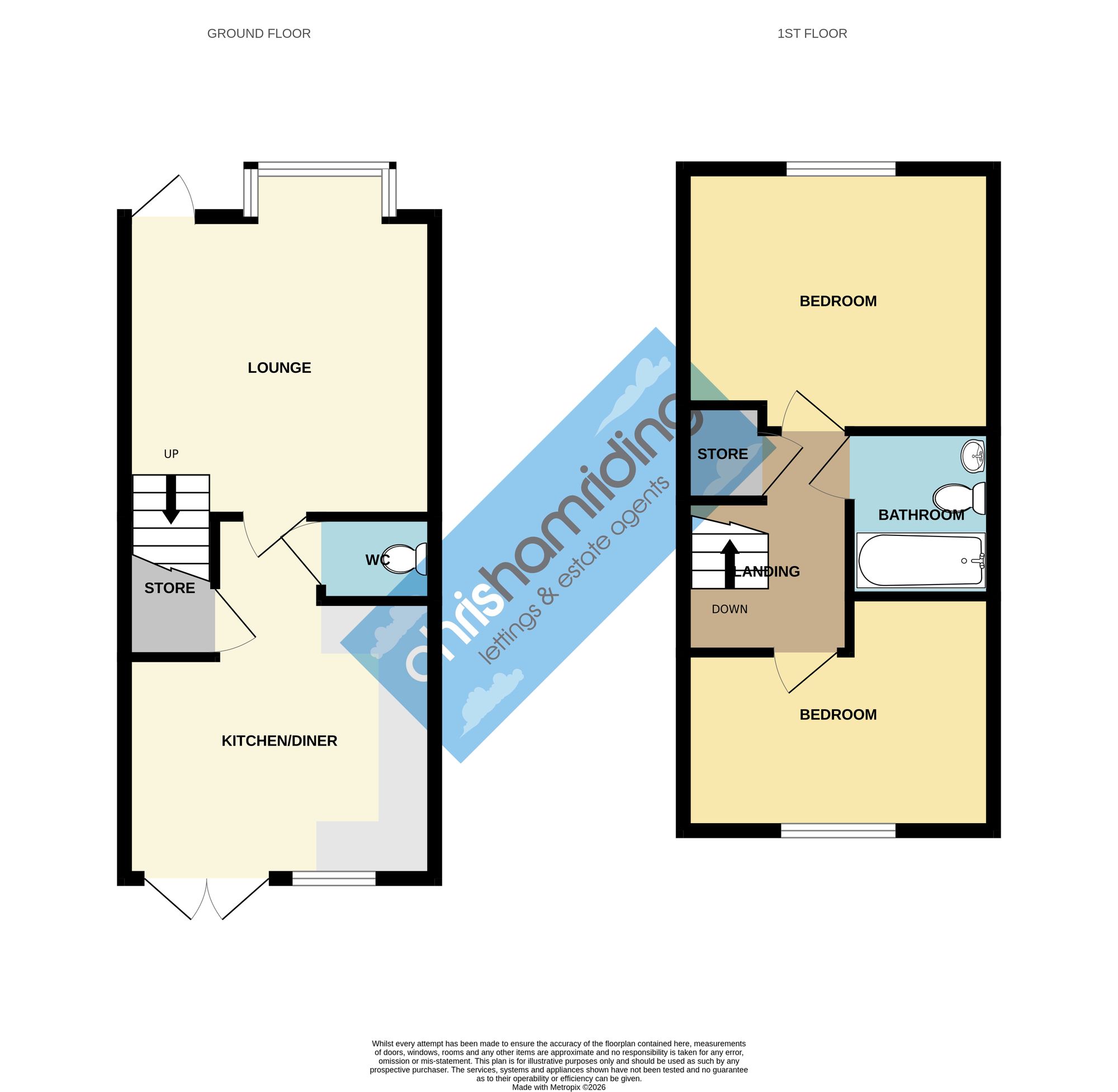 The first floor offers a feature landing, two generous double bedrooms, and a beautifully finished contemporary bathroom, all maintained to an exceptional standard.