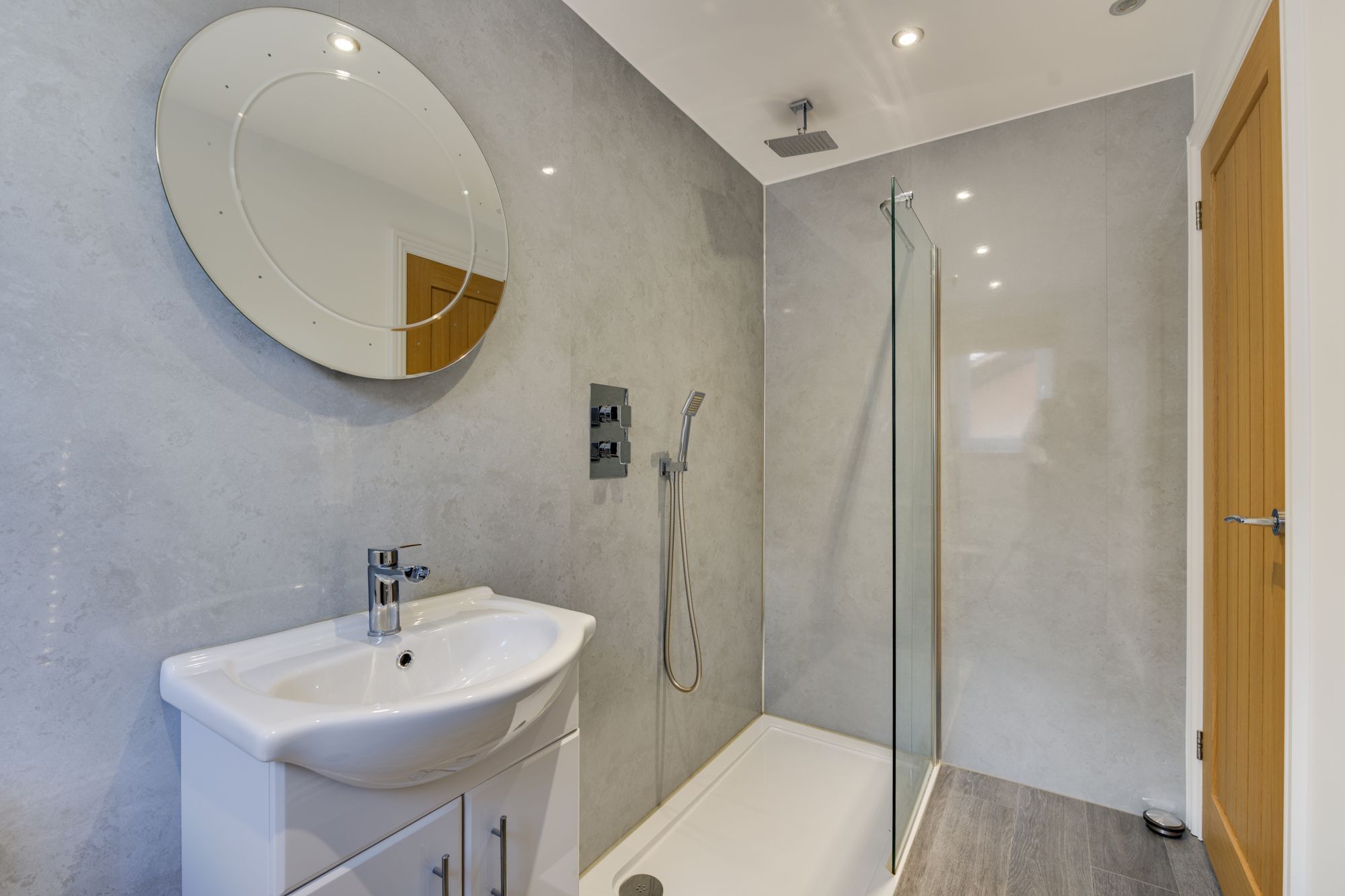 The south-west facing rear garden enjoys uninterrupted open countryside views and complete privacy, creating an ideal setting for outdoor living. Positioned across the rear of the garden is a full-width, fully insulated pavilion building with sliding glazed doors and a fitted shower room, offering flexible use as a home office, gym, guest space or studio.