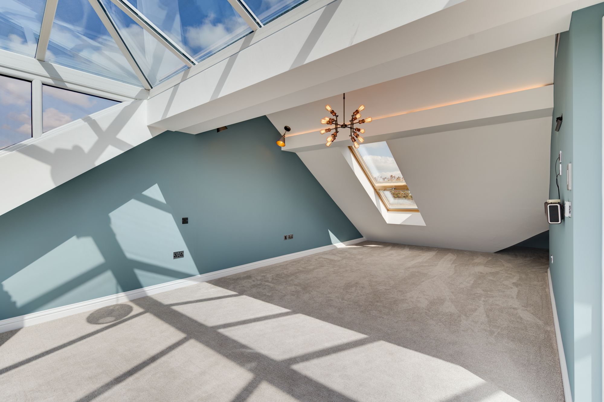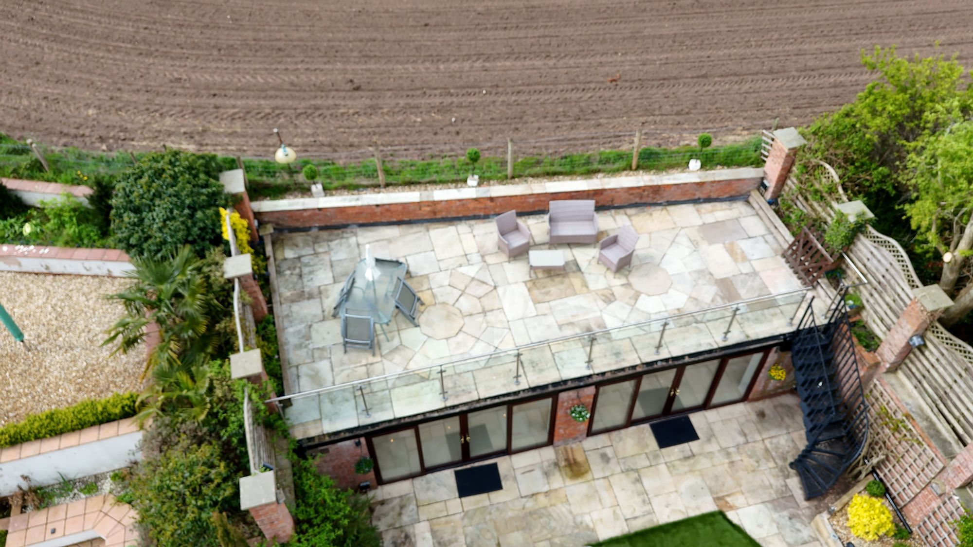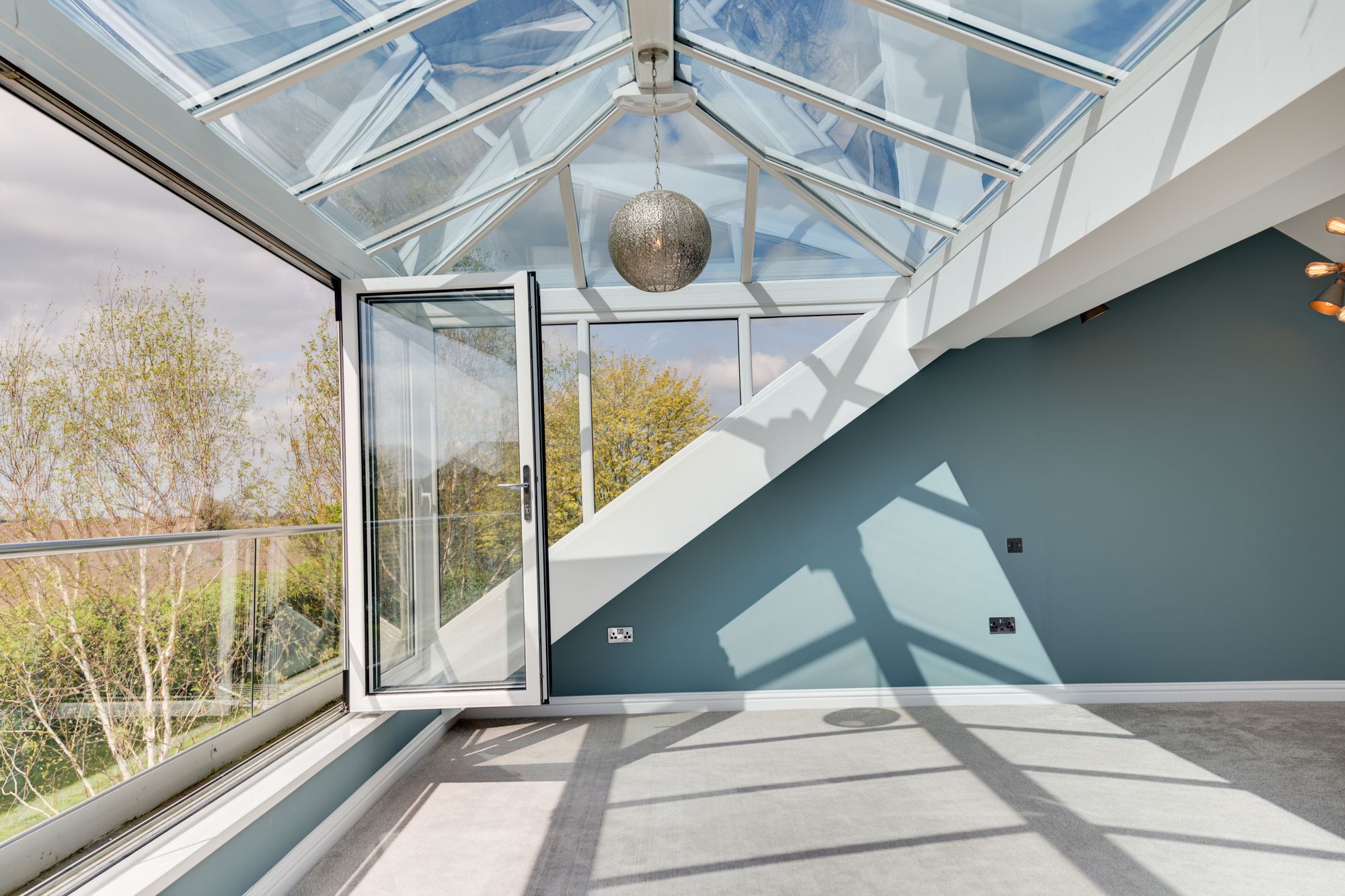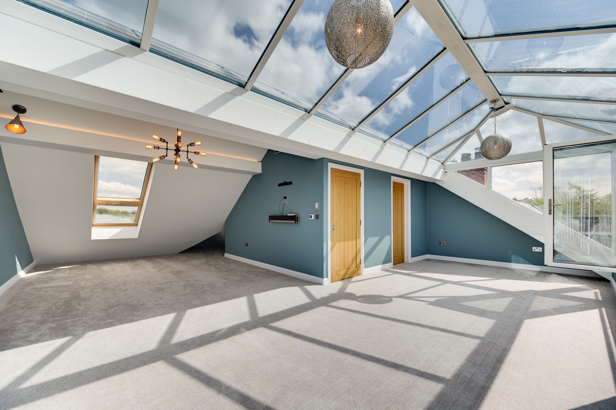 Above the pavilion is a large elevated roof terrace, providing panoramic views across the surrounding fields and rolling Cheshire countryside. This space is perfectly suited for โalfrescoโ dining, entertaining or simply enjoying the surroundings & evening sunsets.