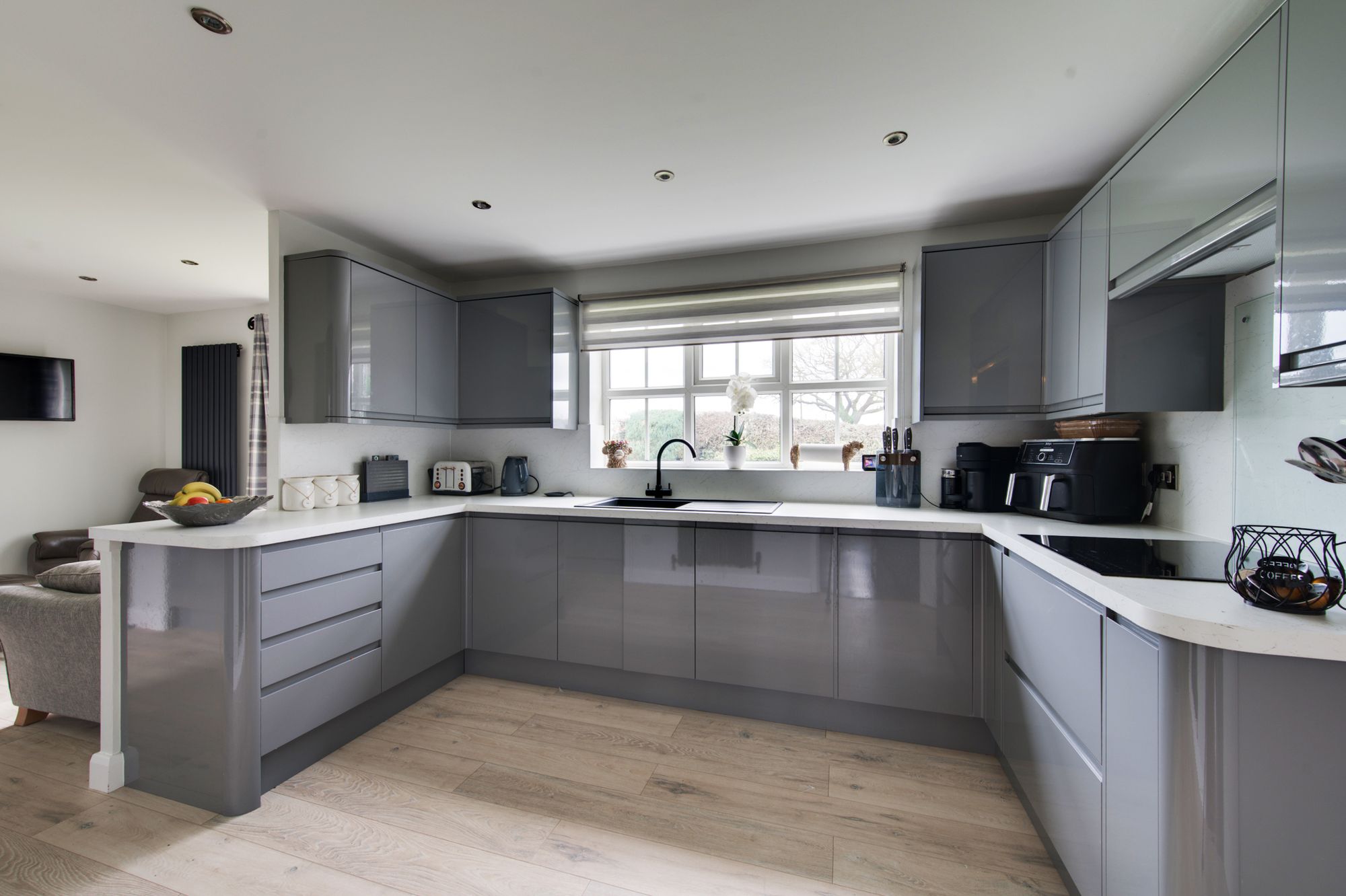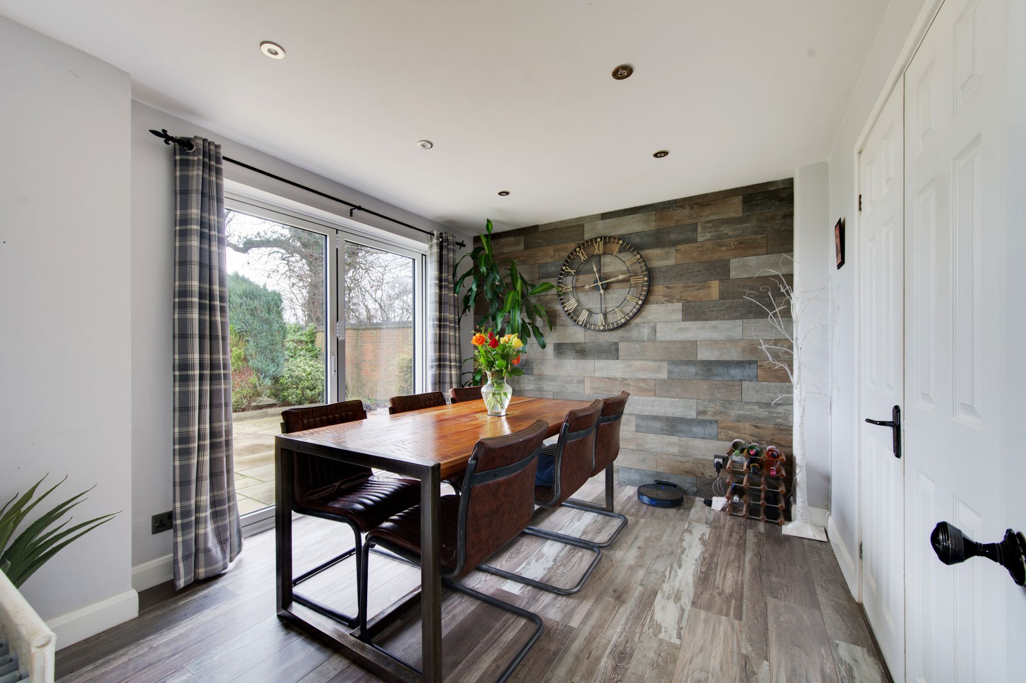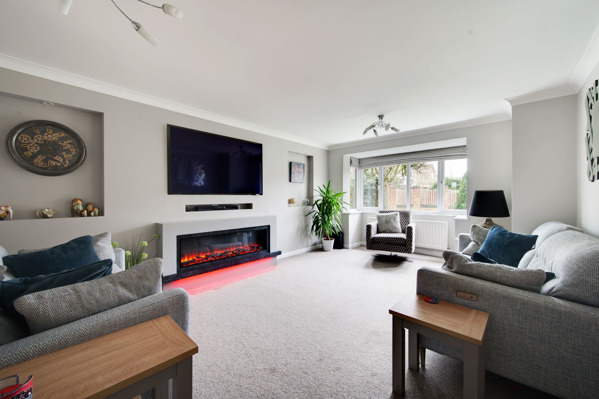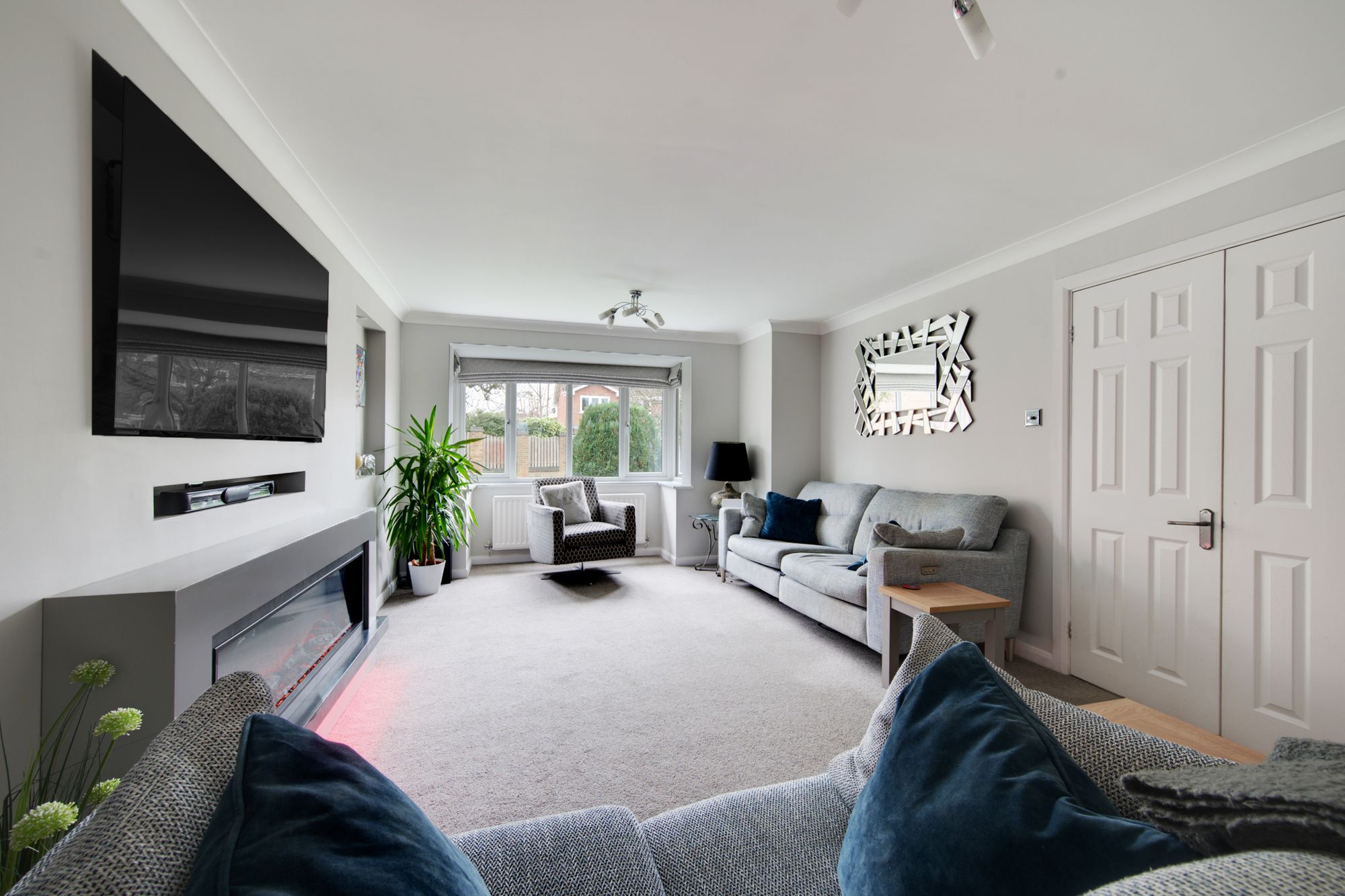 Welcome to 2, Dove Close – A truly impressive family home that blends modern elegance with thoughtful design throughout. As you step into the inviting entrance hall, the luxury vinyl tile (LVT) flooring immediately sets a contemporary tone, offering both style and durability. The heart of the home is the social living-kitchen/diner which has been lovingly remodelled to feature a contemporary handleless cabinetry, a wealth of high-specification AEG appliances and masses of preparation surfaces, making it perfect for every-day meals and entertaining guests, this really is the epitome of modern living! Flowing seamlessly from the kitchen is a spacious formal dining area, enhanced by striking bi-folding doors that fill the room with natural light, being ideal for both lively gatherings or relaxed family dinners. The lounge is equally impressive, being over 20ft in length & boasting a bespoke media wall that provides a stylish focal point for movie nights or unwinding with your favourite shows, while the elegant bay window adds a touch of character to the space.