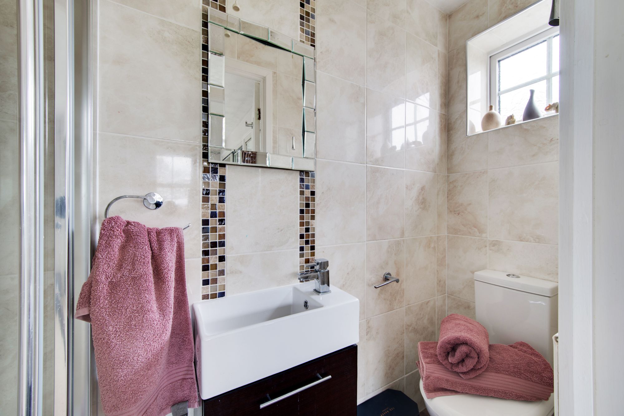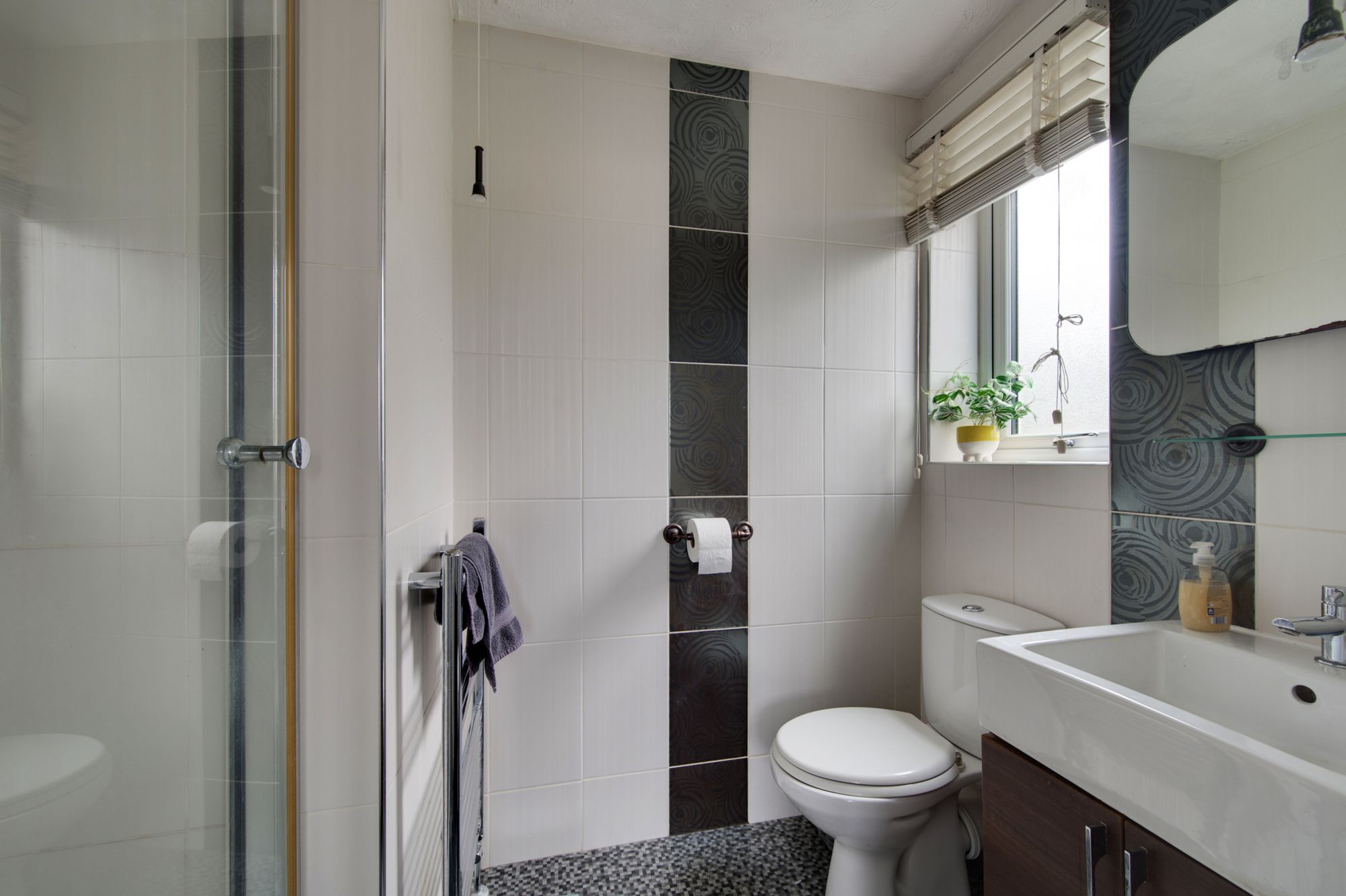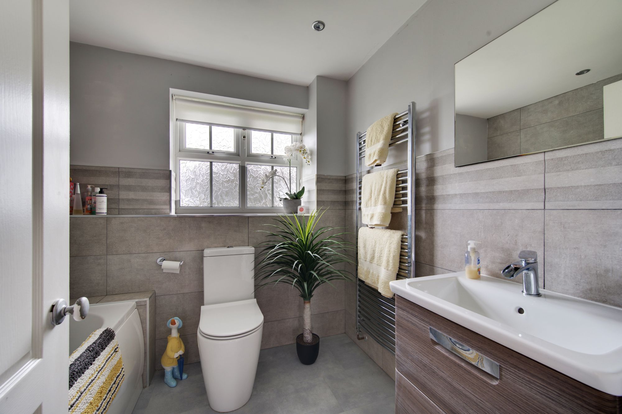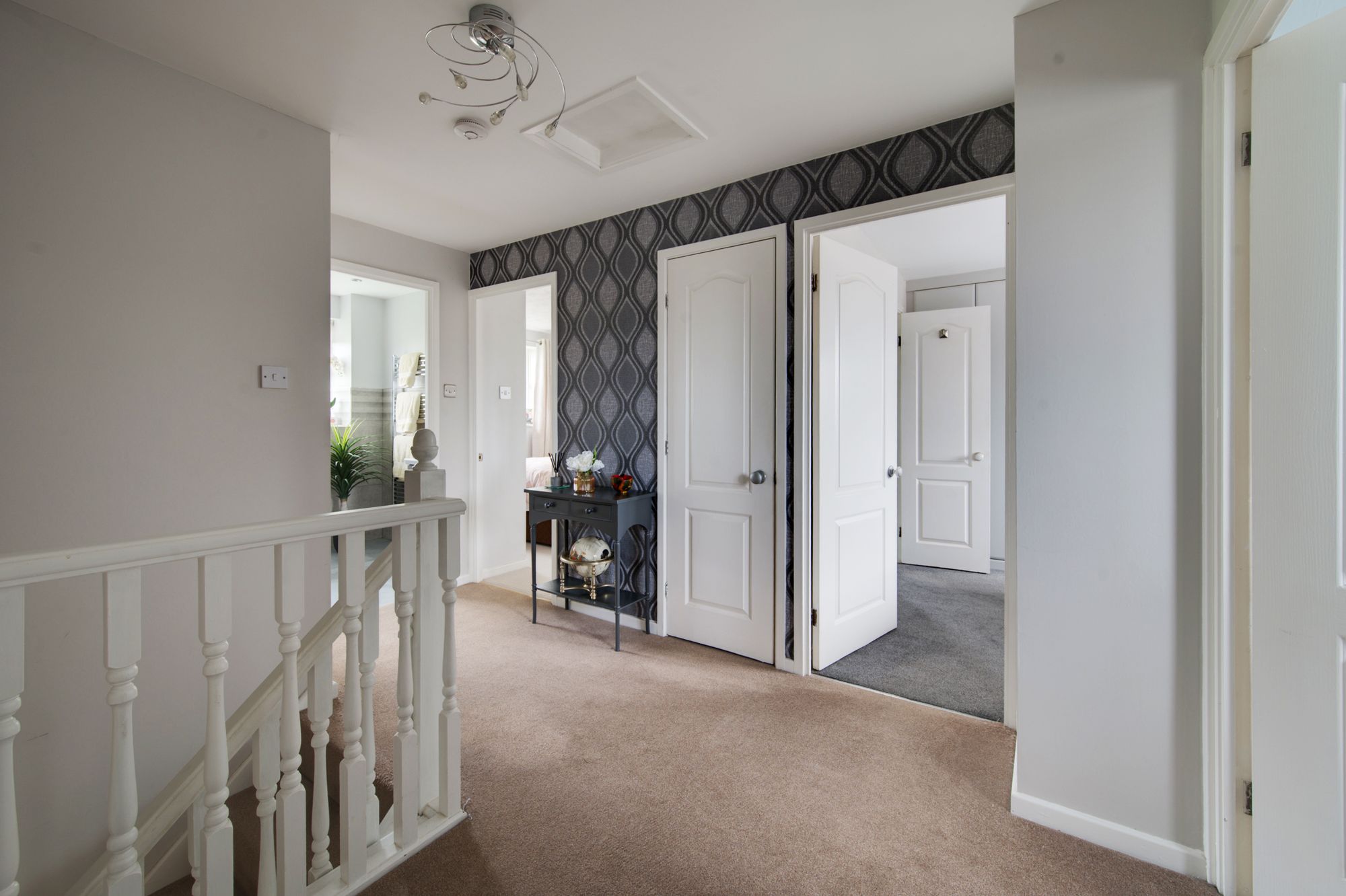 Upstairs, five incredibly well-proportioned bedrooms and three bathrooms which is a rarity in todays market offer flexible accommodation to suit a variety of needs, whether you require dedicated home offices, guest rooms, or play spaces you and the family will have no problem living out of these areas! The principal bedroom is a spacious, peaceful retreat, featuring bespoke wardrobes and an en-suite shower room. Bedroom two also benefits from built-in robes and an additional en-suite whilst bedrooms three and four are superior double rooms. Tasteful finishes and thoughtful touches are evident throughout the property, from the quality flooring to the contemporary fixtures and fittings, ensuring a move-in ready experience for the lucky new owners! The family bathroom has also seen an overhaul more recently with quality porcelain tiles and ‘Roca’ designer vanity unit.