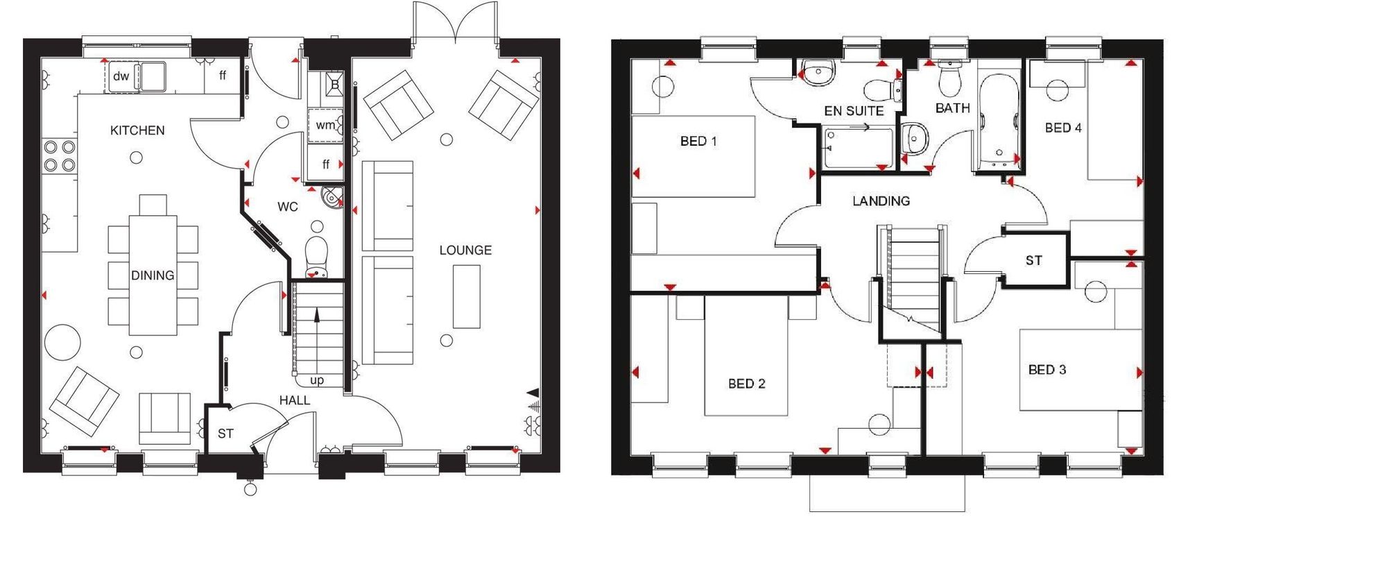 The first floor has a superior master suite with a modern en-suite shower room, two further sizeable double bedrooms, a well-planned fourth single bedroom and a stylish family bathroom with white sanitary suite.