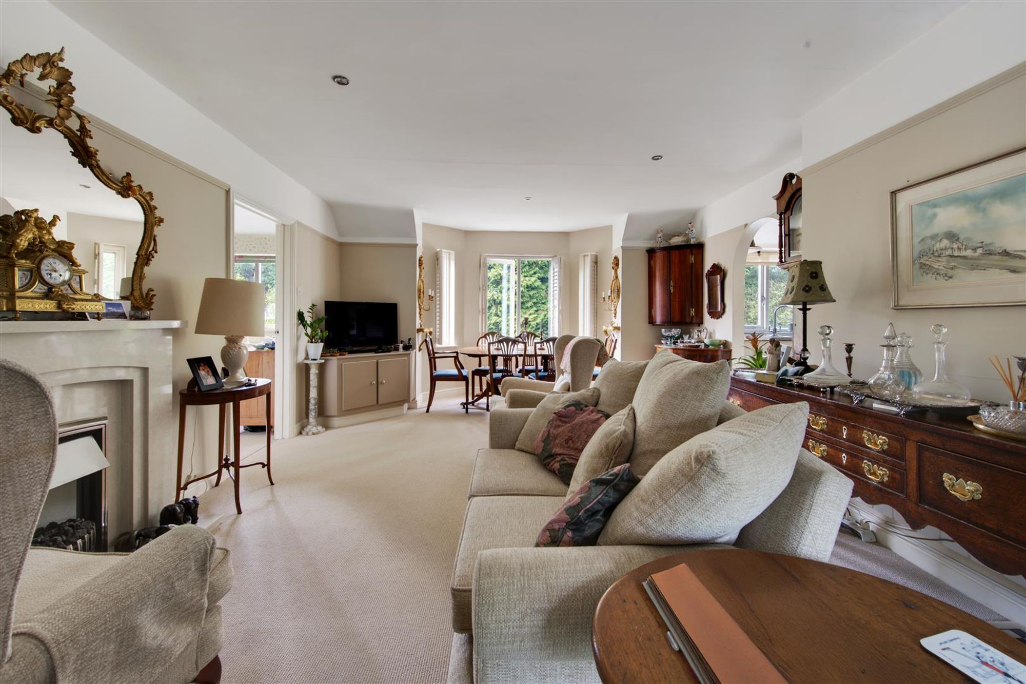 • Wonderful living area with bay window admiring the manicured gardens