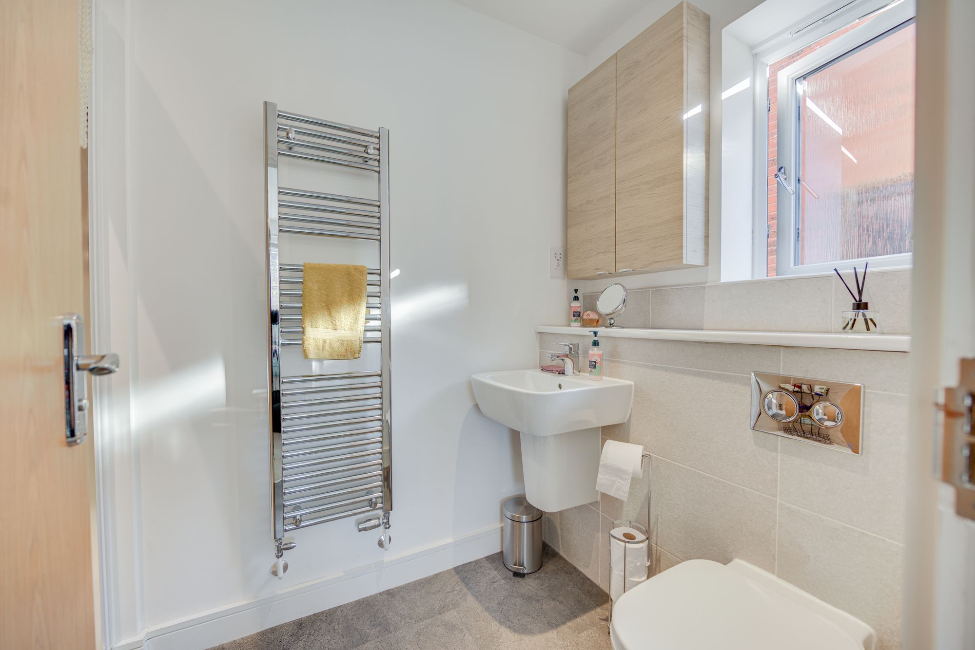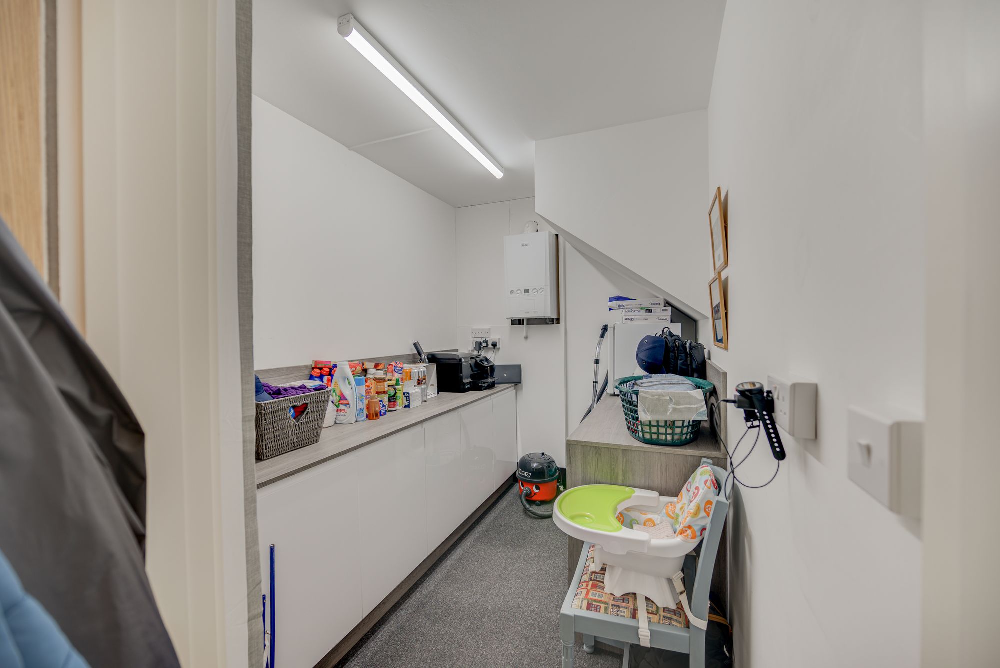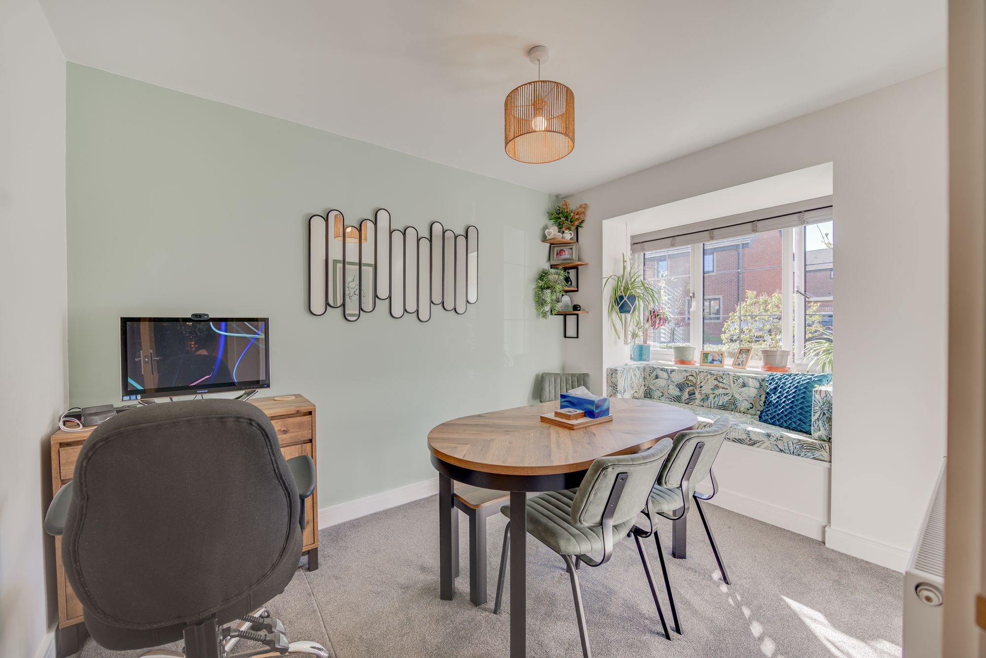 Welcome to this beautifully presented detached house, offering an exceptional blend of modern comfort and versatile living across three spacious bedrooms, two contemporary bathrooms, and two inviting reception rooms. Step through the stylish front door into a welcoming hallway with sleek laminate and wood-effect flooring, setting the tone for the home’s light-filled, neutral decor. The generous living room is a true highlight, featuring French doors that open directly onto the landscaped garden, seamlessly connecting indoor and outdoor spaces and flooding the room with natural light – perfect for both relaxation and entertaining. The heart of the home is a stunning, contemporary kitchen boasting integrated appliances, sleek modern units, a gas hob, and a double oven, with ample natural light creating a bright and inviting atmosphere. Adjacent to the kitchen, a utility room with abundant storage and modern lighting provides practical functionality, while the versatile second reception room – complete with a cosy built-in seating nook and stylish decor – offers flexible space for dining, a home office, or additional lounging.