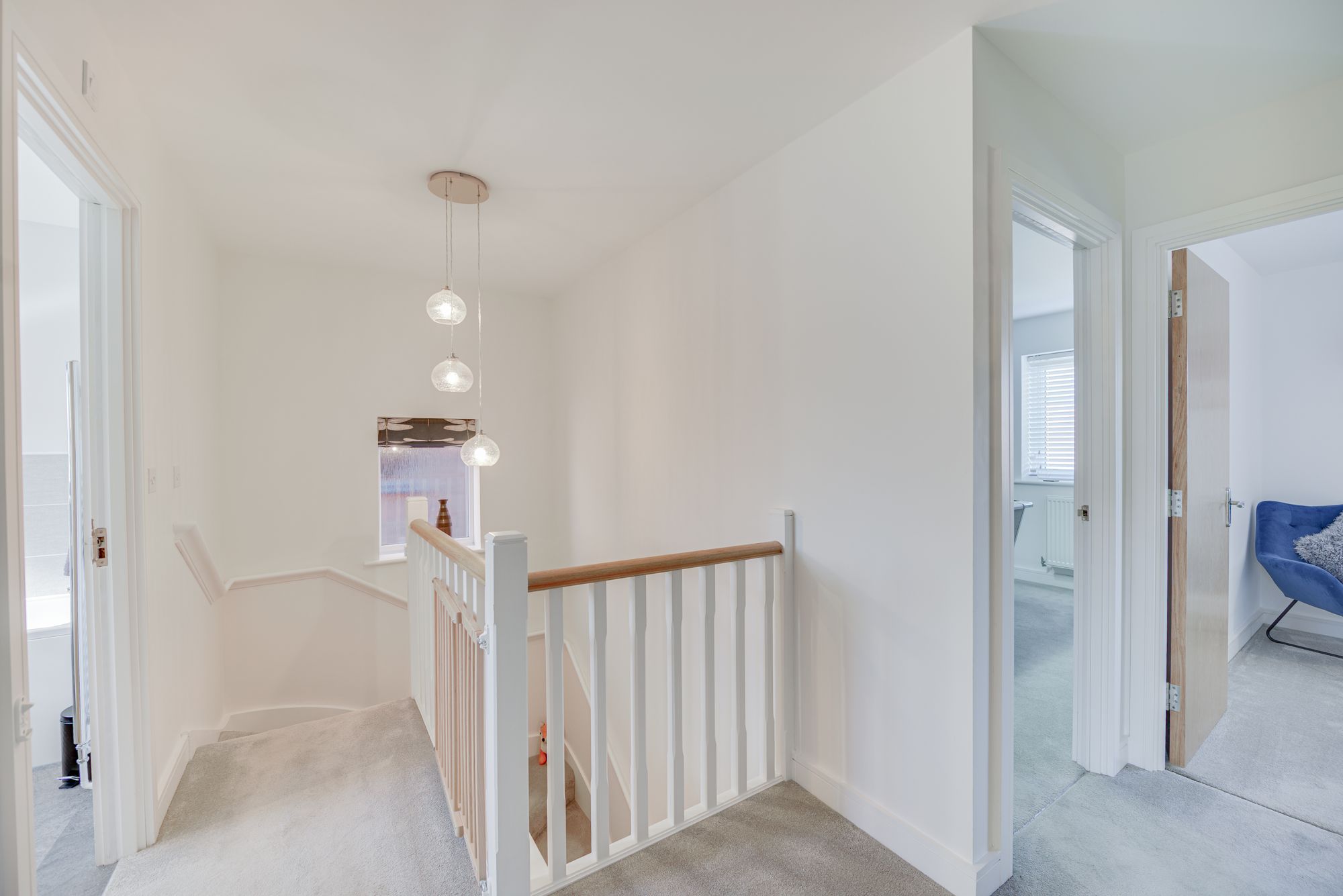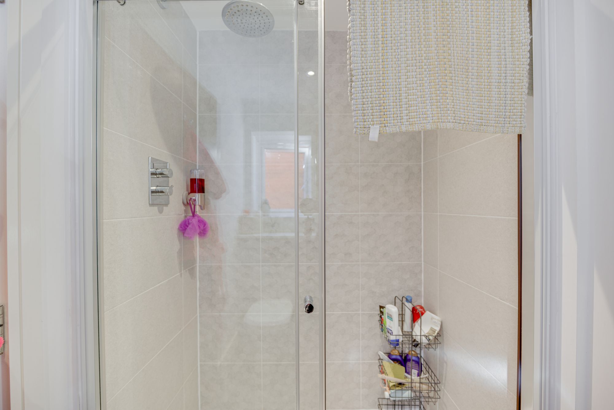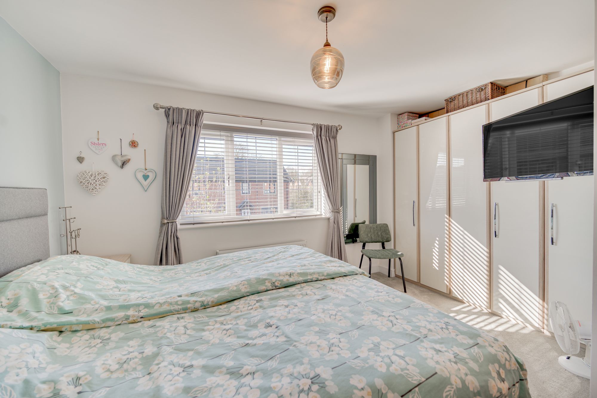 Upstairs, each of the three bedrooms is thoughtfully designed with large windows, modern lighting fixtures, and ample built-in storage, ensuring comfort and style for all family members. The principal bathroom features a luxurious walk-in shower with sleek fixtures and a rainfall showerhead, complemented by a second bathroom with a bath-tub, wall-mounted vanity, and heated towel rail – both spaces enhanced by natural light and elegant tiling. The propertyโs recreational room adds a unique touch, boasting a contemporary billiards table, decorative shelving, and adjustable lighting for leisure and entertainment. Outside, the expansive rear garden is a true sanctuary, offering a spacious patio for al fresco dining, a well-maintained lawn, a charming swing seat, and a greenhouse for gardening enthusiasts. The integral garage and paved driveway provide ample off-road parking, while the attractive front garden enhances kerb appeal with manicured shrubs and a small tree.