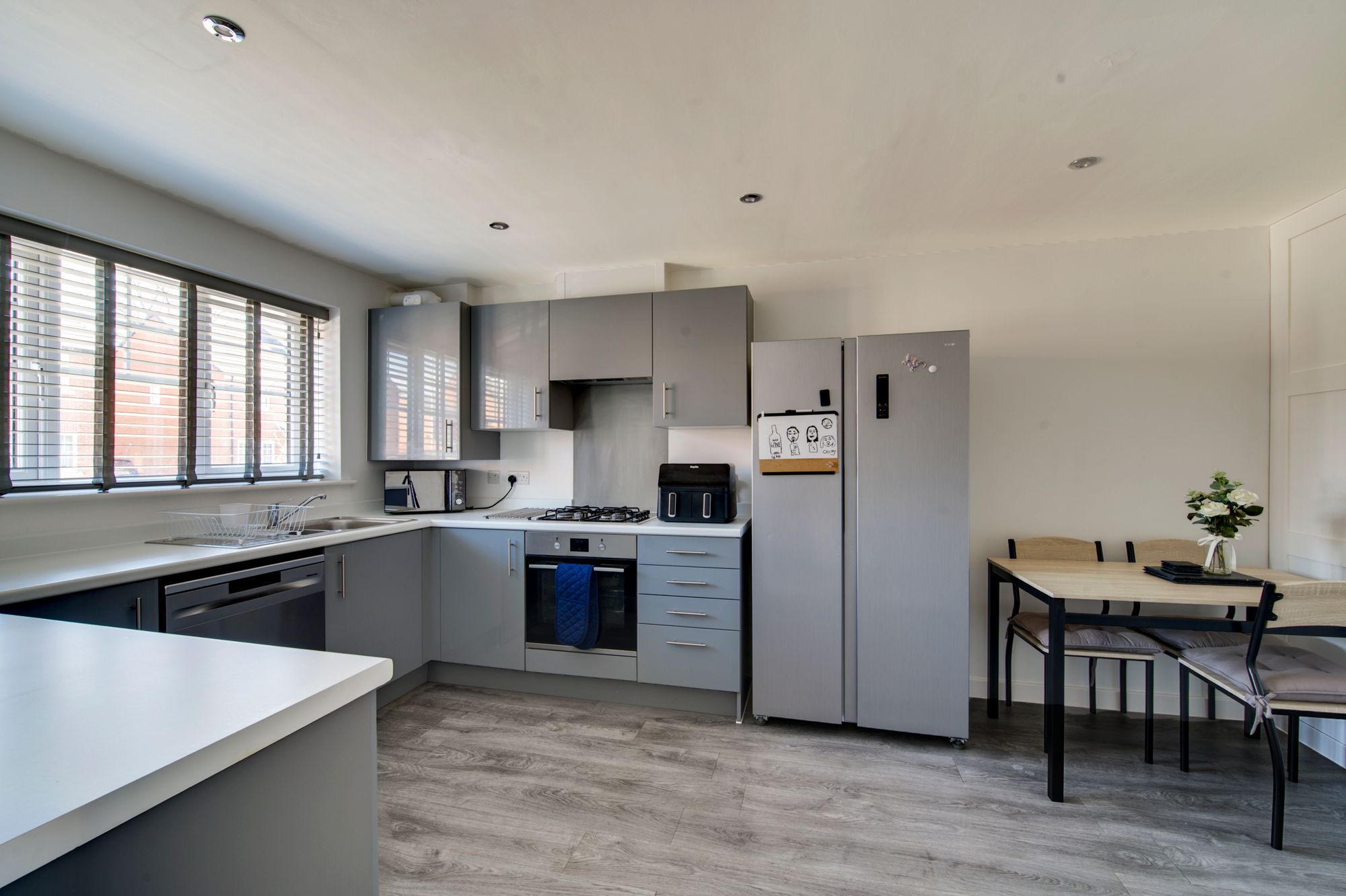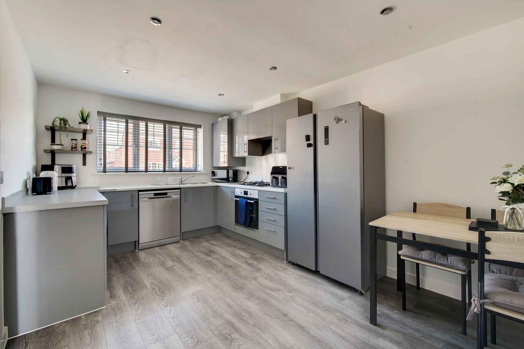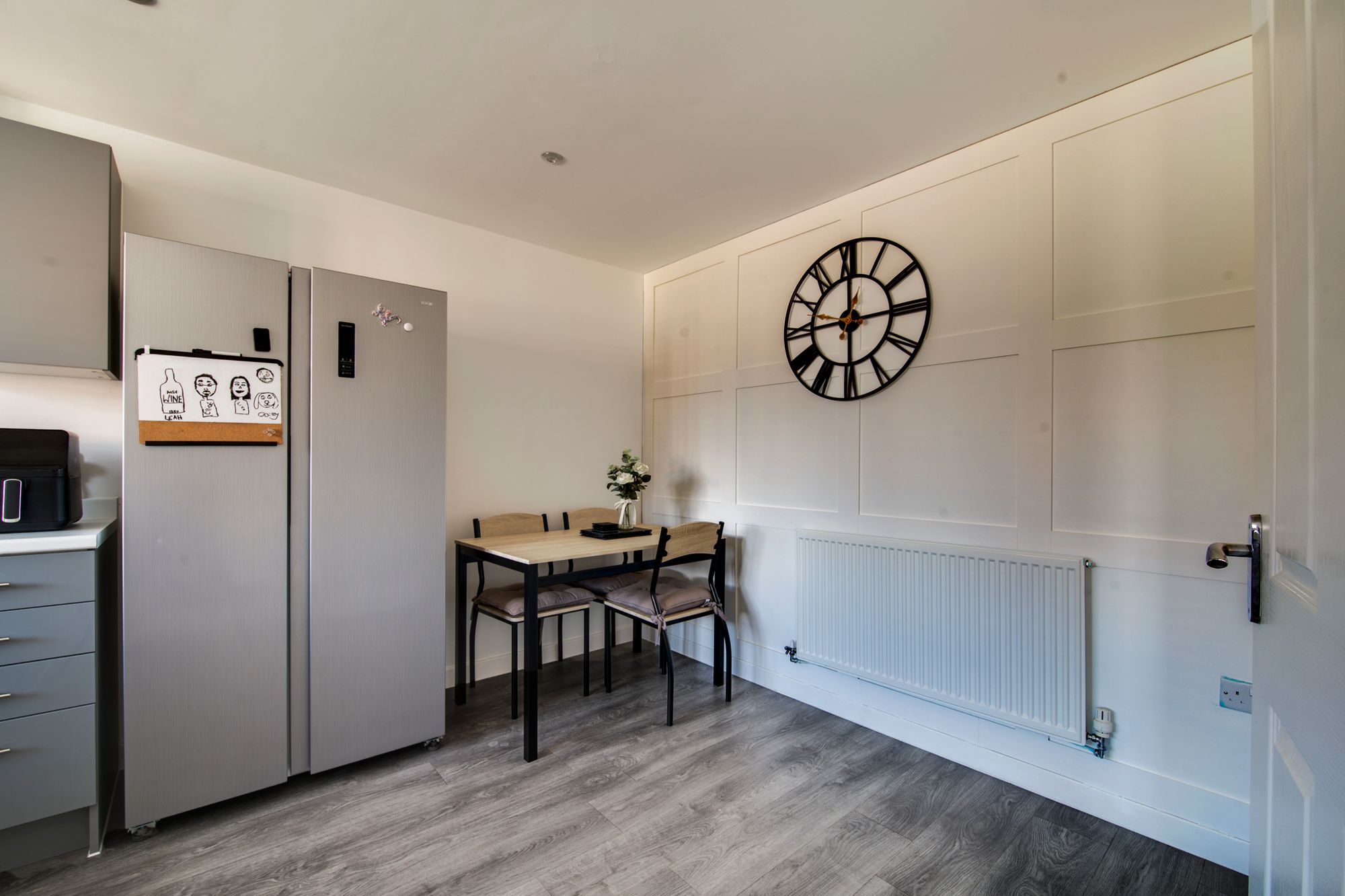 Welcome to 19, Larch Drive – this beautifully presented four-bedroom terraced house, offering spacious and contemporary living in the highly sought-after โThe Heathโ Sandbach Heath development, constructed by Persimmon Homes. This freehold property is perfect for families or professionals seeking a stylish and practical home, with accommodation spanning over 1100sqft, arranged over three floors with driveway parking providing added convenience right from the start. Step inside to discover a stunning kitchen/diner, featuring quality high-gloss kitchen units, โin-vogueโ wall panelling and ample space for both entertaining and family meals. The entire ground floor is adorned with designer LVT-style flooring, creating a seamless and modern feel throughout. The lounge is a true highlight, being rear-garden facing & boasting an impressive media wall plus elegant French doors that allow natural light to flood the space, creating an inviting yet relaxing atmosphere for all of the family!