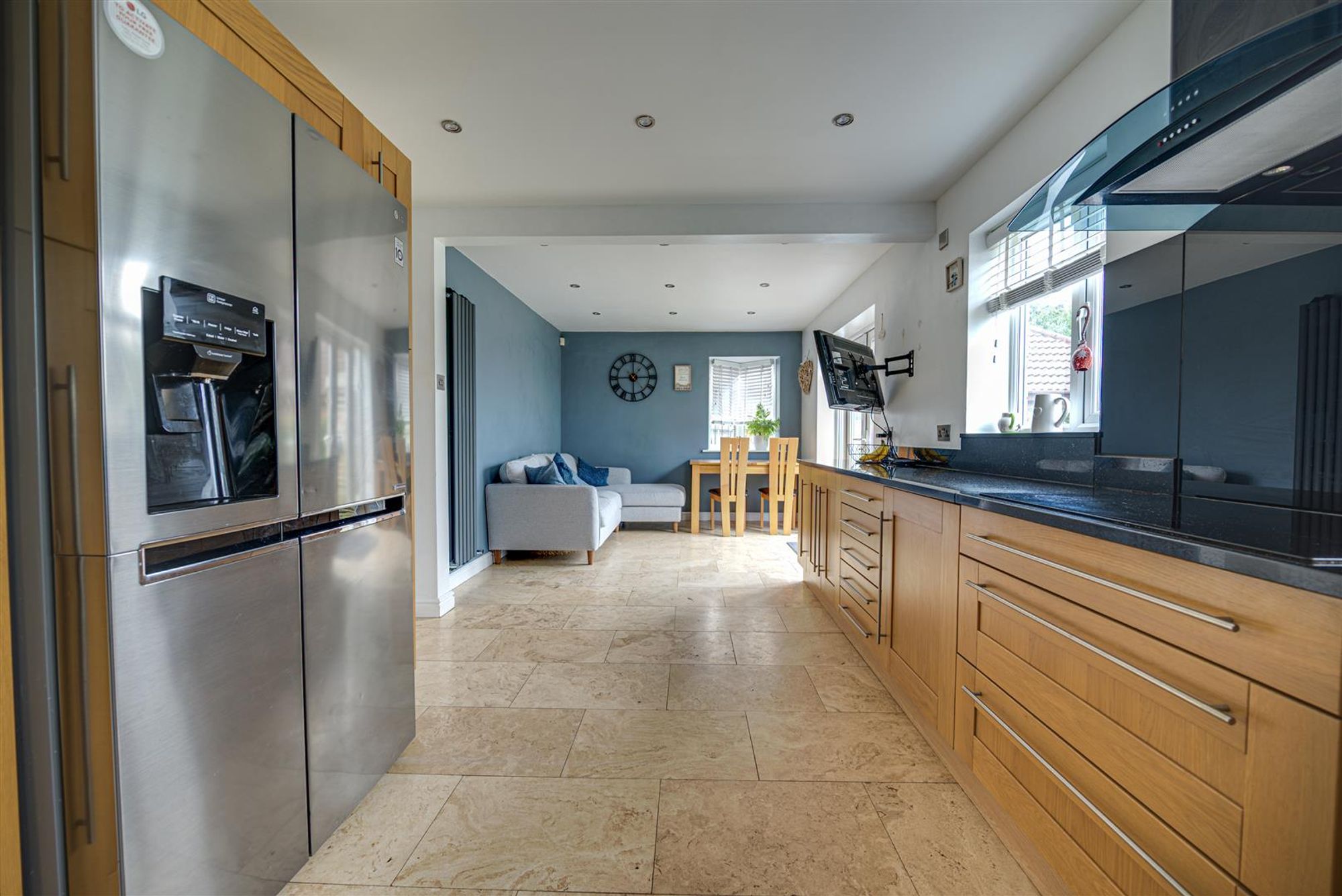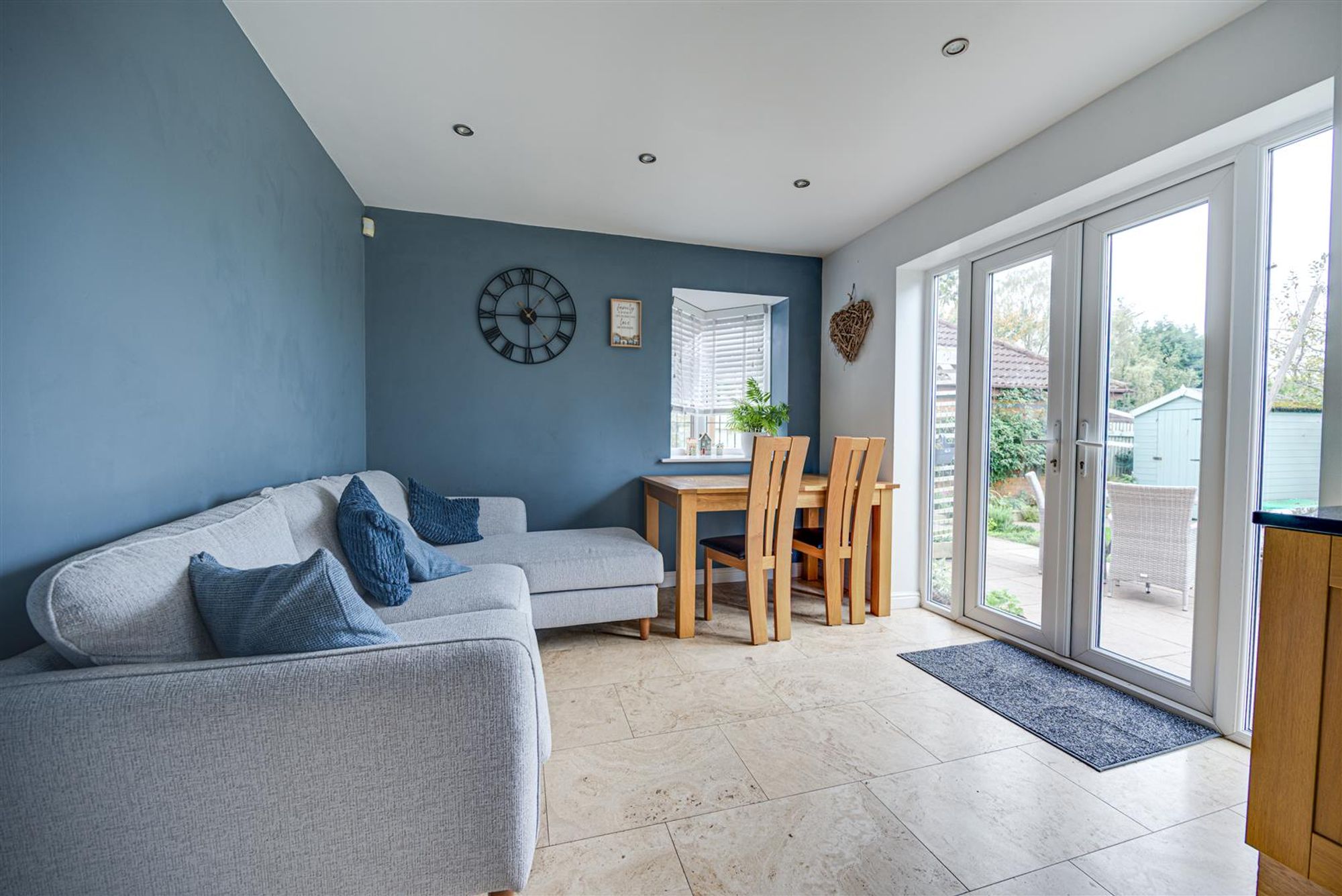 Accompanying the home are a number of features to note, some of which include: gas central heating and double glazing, a storm porch with quarry floor tiles and composite front door, a downstairs cloakroom with white suite, and a a sizeable lounge with feature fireplace. The garage conversion provides an ideal additional snug lounge/ground floor bedroom, home office or playroom. Towards the rear of the home, there is the all important open-plan kitchen diner complete with oak ‘shaker’ style units, granite preparation surfaces, a wealth of integrated appliances, separate utility and French doors to the garden from the living/dining area!