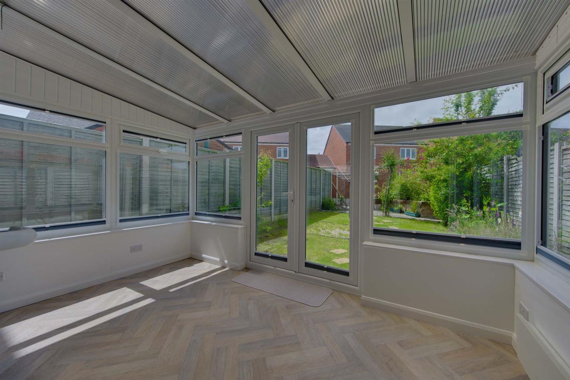 Offered for sale with NO ONWARD CHAIN and sat proudly within a stunning residential development, this lovely home sits on an enviable plot and boasts immaculate accommodation across both floors that could suit a wide range of buyers! The property itself enjoys gorgeous views over a village green but the area is also awash with green fields and countryside views giving a real sense of calm whilst being only a moments walk or drive to great shops, amenities and commuter links so we feel that whether youโre a young professional or couple looking for a spacious pad, an upsizing family looking to grow or perhaps even a downsizer looking for a low maintenance home, this really will tick many (if not all) of your boxes! Upon entry into the tasteful entrance hall youโll find a large guest cloakroom and a lovely spacious lounge/dining area that opens into the garden room overlooking the amazing rear gardens! There’s also a stylish breakfast kitchen to the front. To the first floor are four good size bedrooms (the master having an en suite) and a luxurious family bathroom. Outside lies a useful detached garage and driveway as well as the Immaculately landscaped rear gardens that are quite simply stunning!