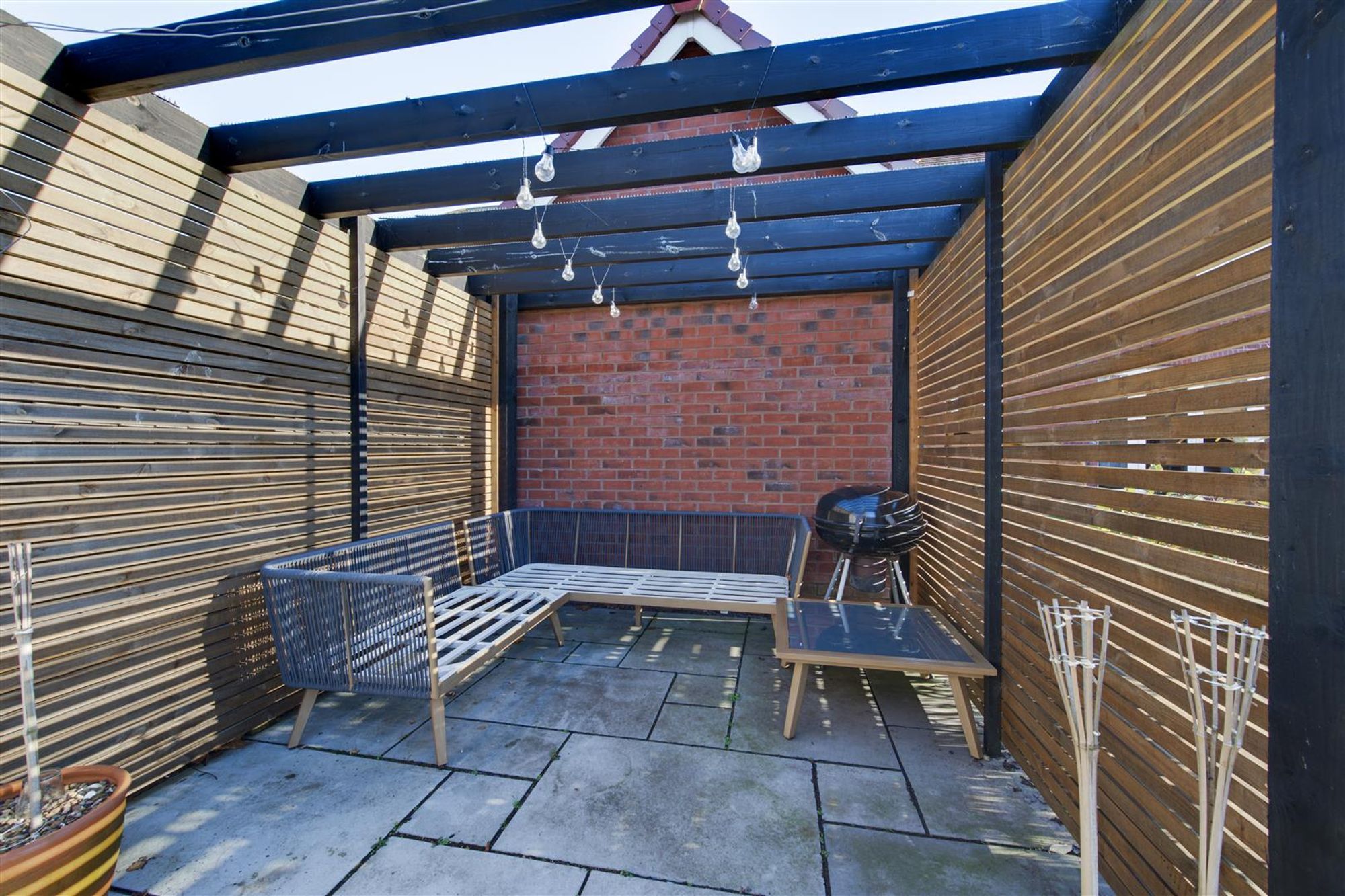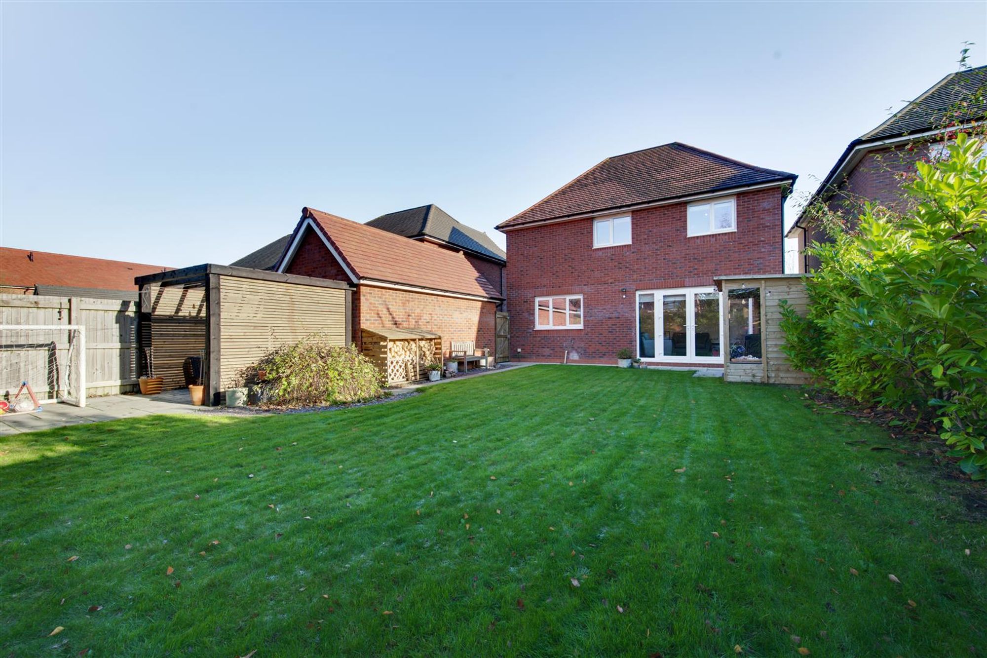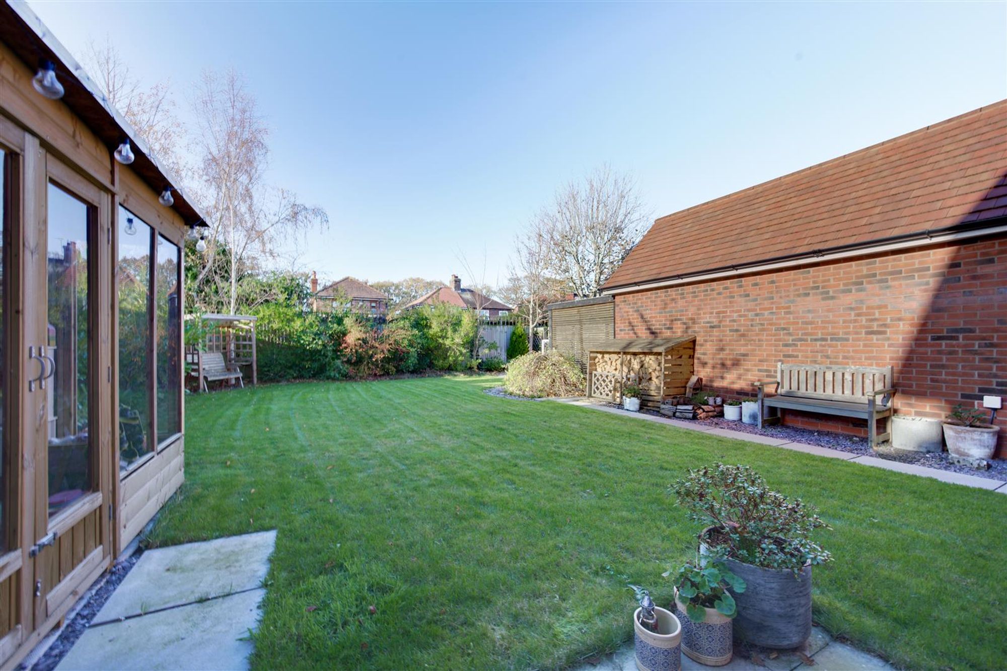 Externally, the home has a favorable size plot on the development with a driveway providing ample tandem parking leading to a detached garage and an ever-maturing Laurel hedgerow providing screening from the road. The rear garden is a good size & enjoys a good degree of privacy with multiple seating areas, a garden store, a log store and at the foot of the garden there is a further flagged area with pergola which would be a great place for a hot tub or private dining!