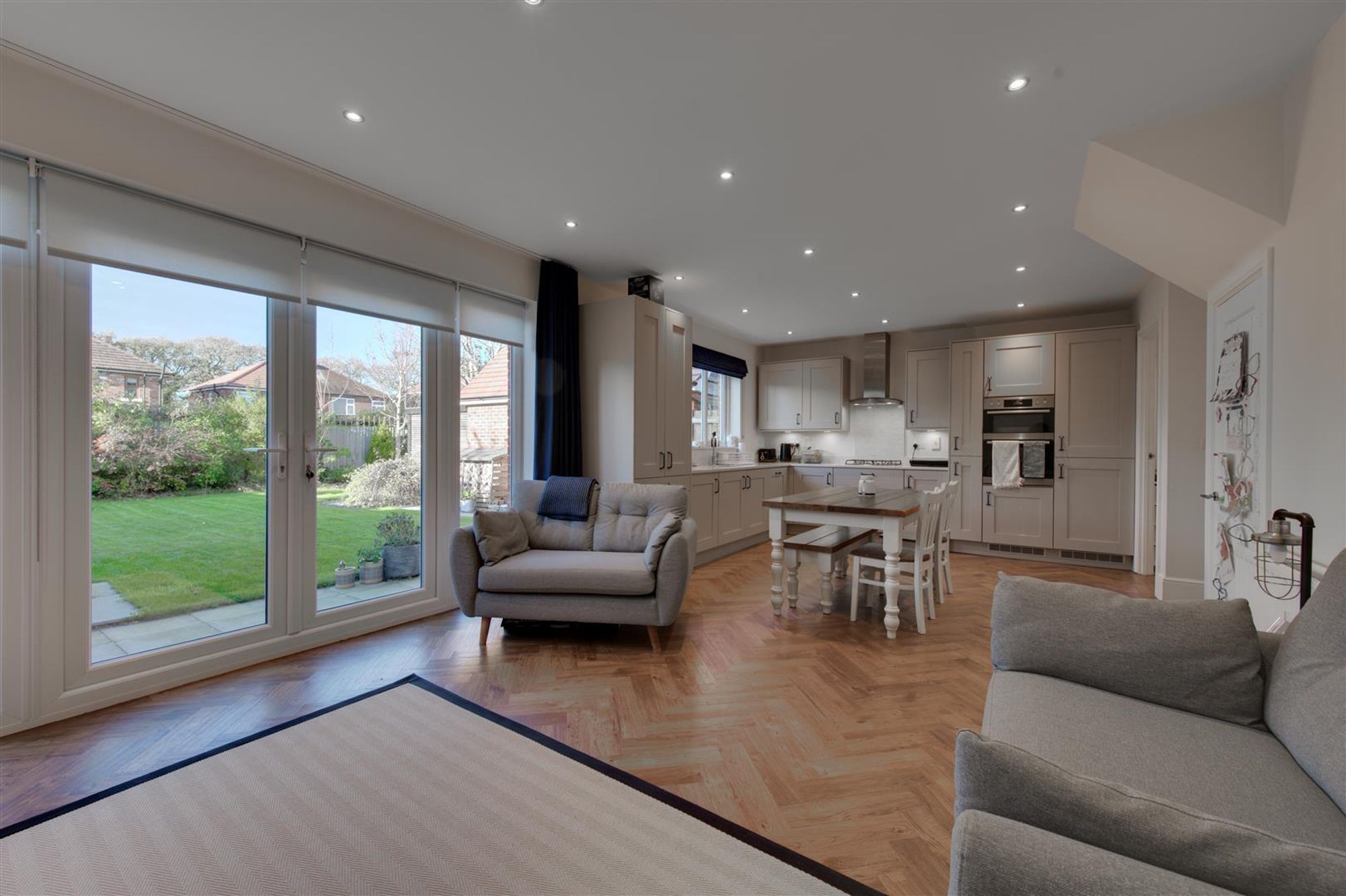 Accompanying the home are an number of features to note, some of which include:- decorative wall panneling and period style floor tiles to the entrance hall, Amtico flooring to the majority of the ground floor, a spacious lounge with cafe-style shutters and a feature fireplace with wood burning stove! Towards the rear of the home, the living-kitchen/diner enjoys ‘herringbone’ LVT flooring, shaker-style units and natural stone working surfaces plus a wealth of AEG built-in appliances and a seperate utility area.