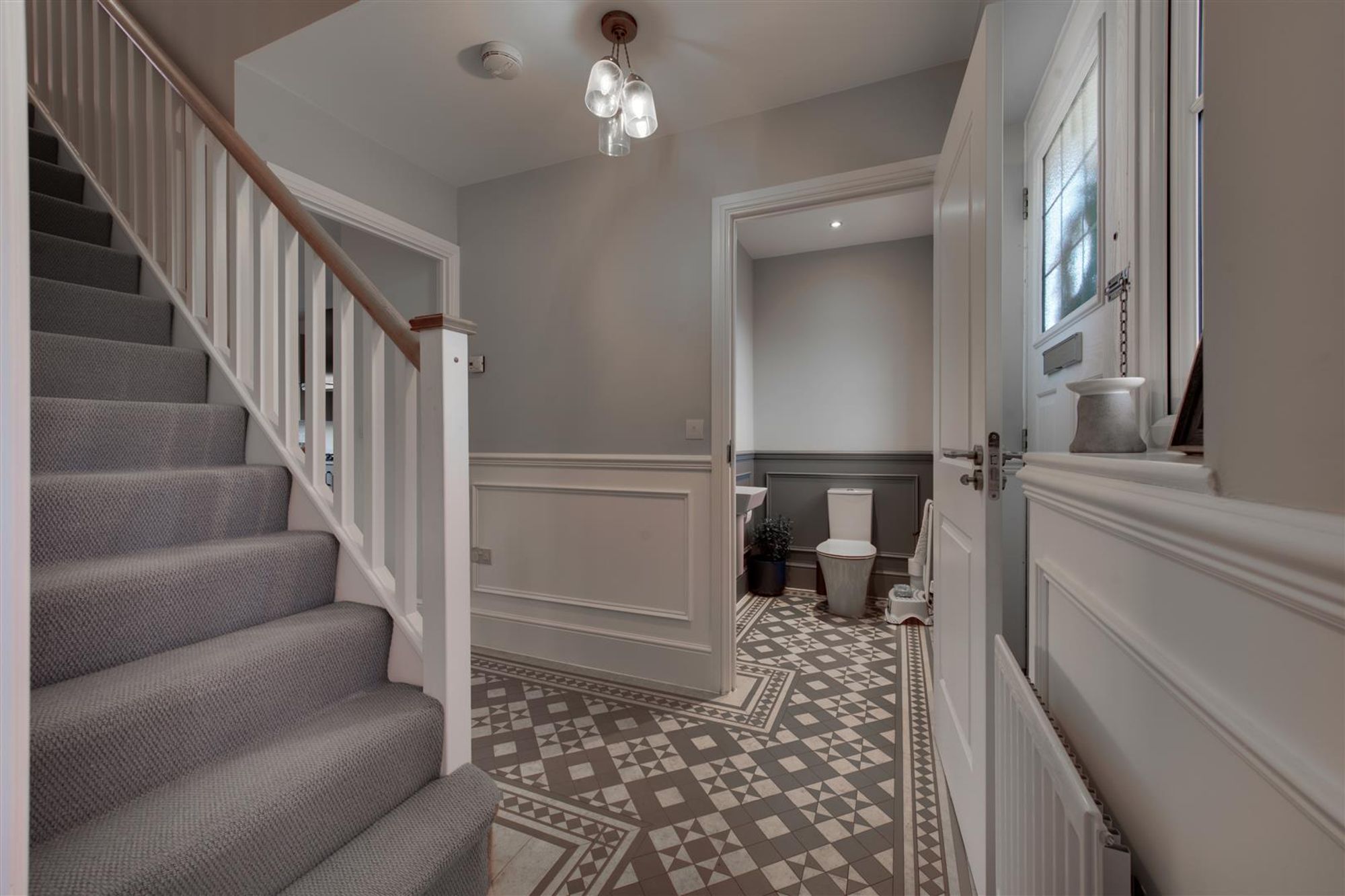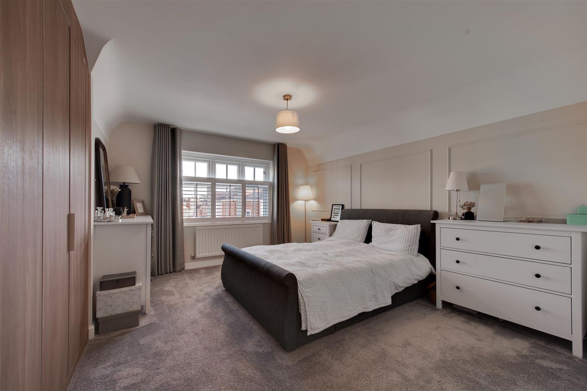 Upstairs, the beautful period style decor continues with four well-balanced bedrooms with the master having quality built-in robes, wall panelling, shutters & en-suite shower facilities, two further double bedrooms plus a comfortable single room/nursery/home office.