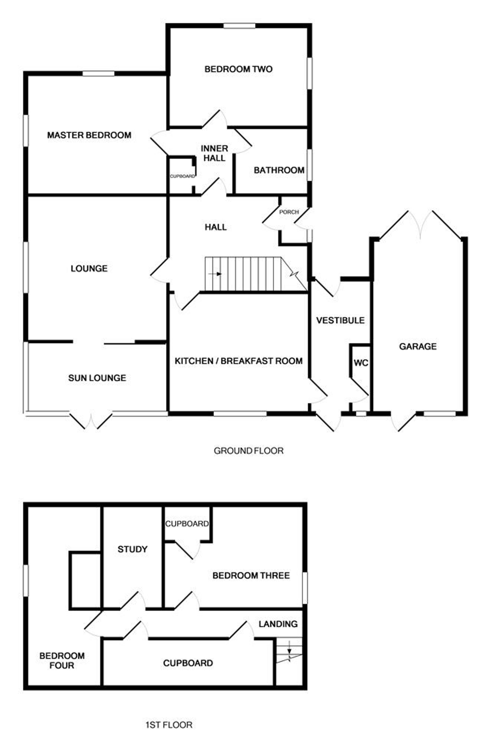 Inside the home you’ll find very well presented and flexible accommodation across two floors. The ground floor boasts two lovely double bedrooms and a bathroom along with a dining kitchen, lounge and sun room. Upstairs are two further bedrooms and plenty of generous storage. We feel this home could suit bungalow buyers as well as families and those who may work from home.