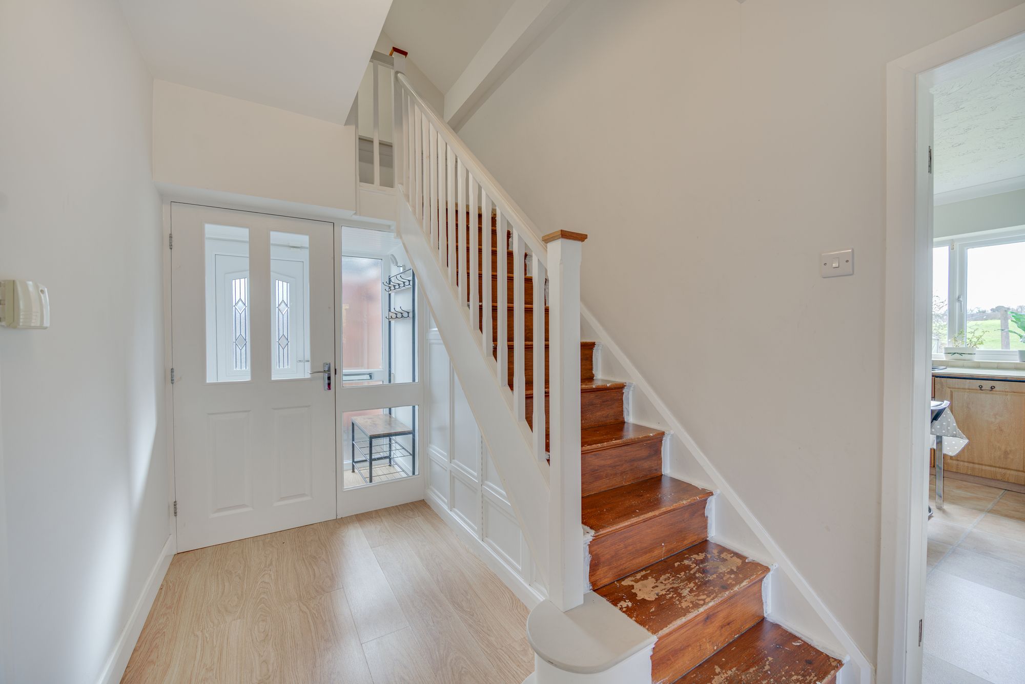 Located on the edge of beautiful countryside yet conveniently placed within the ever popular area of West Heath, this spacious detached property occupies a very generous plot indeed. Consisting of a large driveway that houses not one, not two but three garage buildings(!), there are also beautiful lawned gardens to the side and rear that enjoy pleasant views over adjoining farmland. There’s even a babbling brook at the foot of the gardens!!