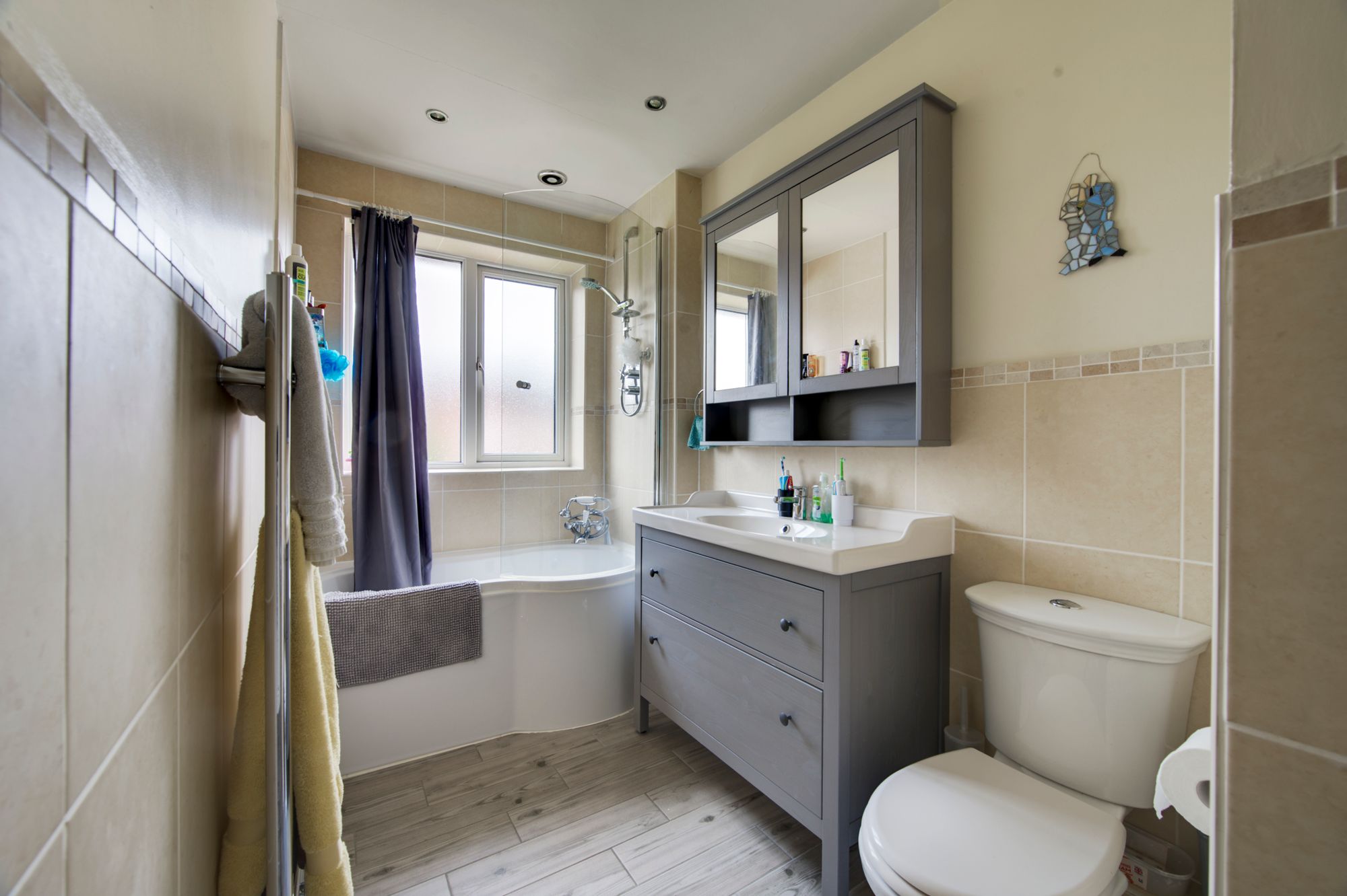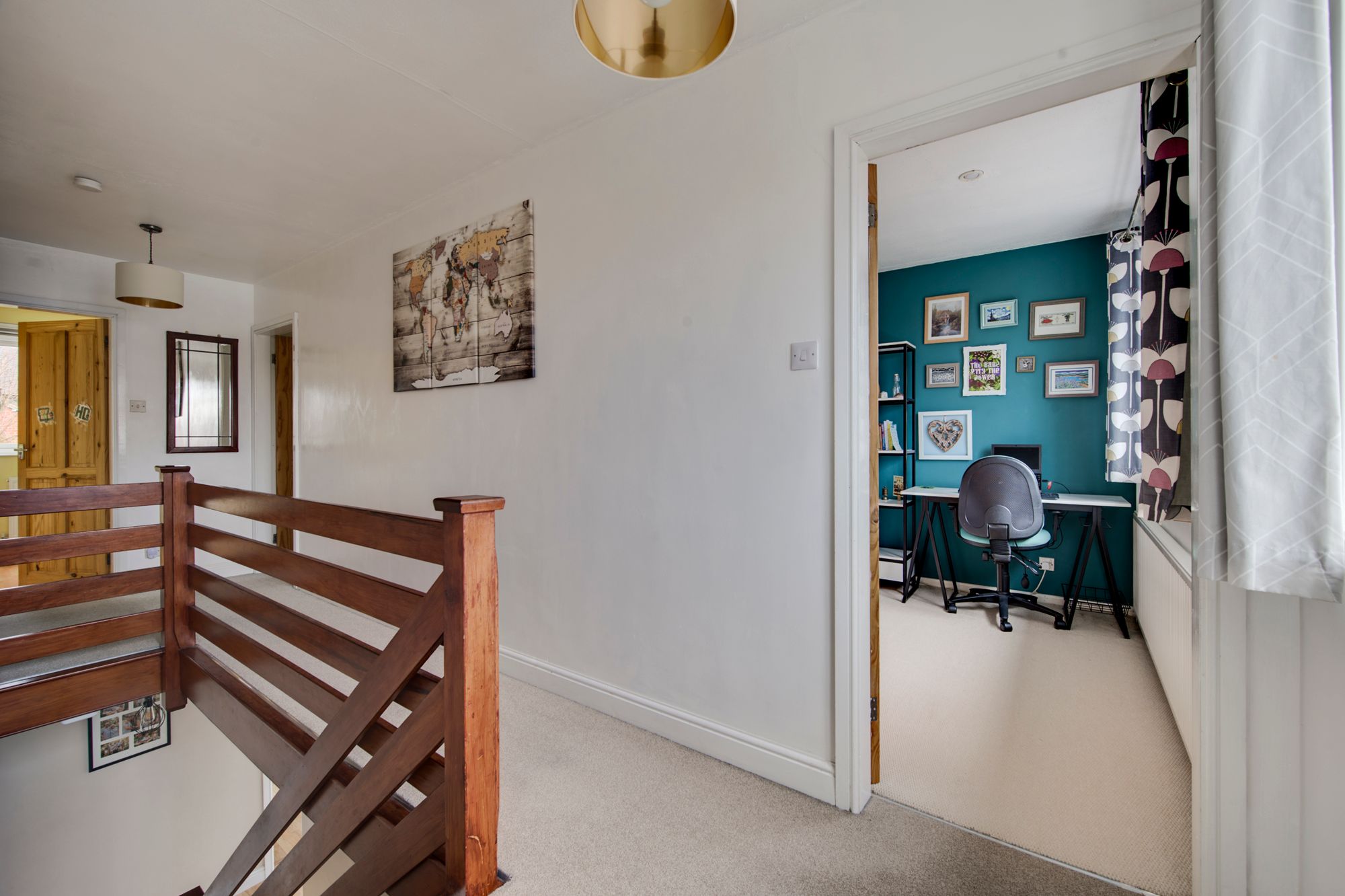 Upstairs, four well-proportioned bedrooms provide flexible accommodation, whether you need all four as dedicated bedrooms, a home office, or a creative spaces. The principal bedroom is particularly noteworthy, offering generous dimensions plus a wealth of fitted wardrobes and dressing area, while the remaining three bedrooms are equally versatile and can all accommodate double beds. A stylish family bathroom is refitted to a high standard, complete with quality fixtures and fittings to ensure comfort and convenience for all, with separate shower over the bath and quality sanitary suite.