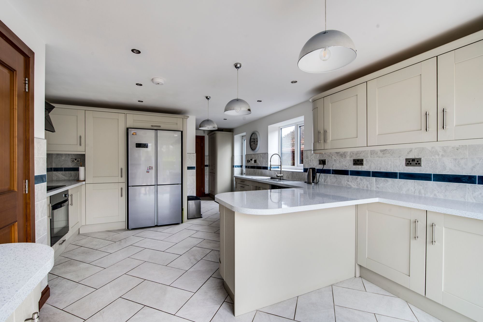 NO ONWARD CHAIN!! Welcome to this exceptional four-bedroom detached residence, individually designed to deliver a lifestyle of luxury, comfort, and flexibility. From the moment you step inside, you are greeted by a spacious entrance hall and the warmth of underfloor heating throughout the entire ground floor, setting the tone for modern, energy efficient living. The heart of the home is the sociable open-plan kitchen and dining area, thoughtfully crafted for both every-day living and stylish entertaining, with feature glazing flooding each space with natural light and a wealth of integrated appliances and preparation surfaces. The generous lounge invites relaxation, while the versatile home office (or fourth bedroom) with its own professionally installed wet-room offering superb flexibility for guests, working from home, or multi-generational living. Upstairs, the master bedroom boasts a sleek en-suite, creating a private sanctuary, while the further bedrooms are well-proportioned and finished to a high standard. Bedroom two also has convenient access into the refitted family bathroom with its striking tiling, designer ‘Jacuzzi-style’ spa bath and large shower enclosure. Every detail has been carefully considered, from the quality fixtures to the clever storage solutions, ensuring this home delivers on both practicality and elegance. Be sure to view the photos and floorplan to truly appreciate the unique character and thoughtful layout of this outstanding home.