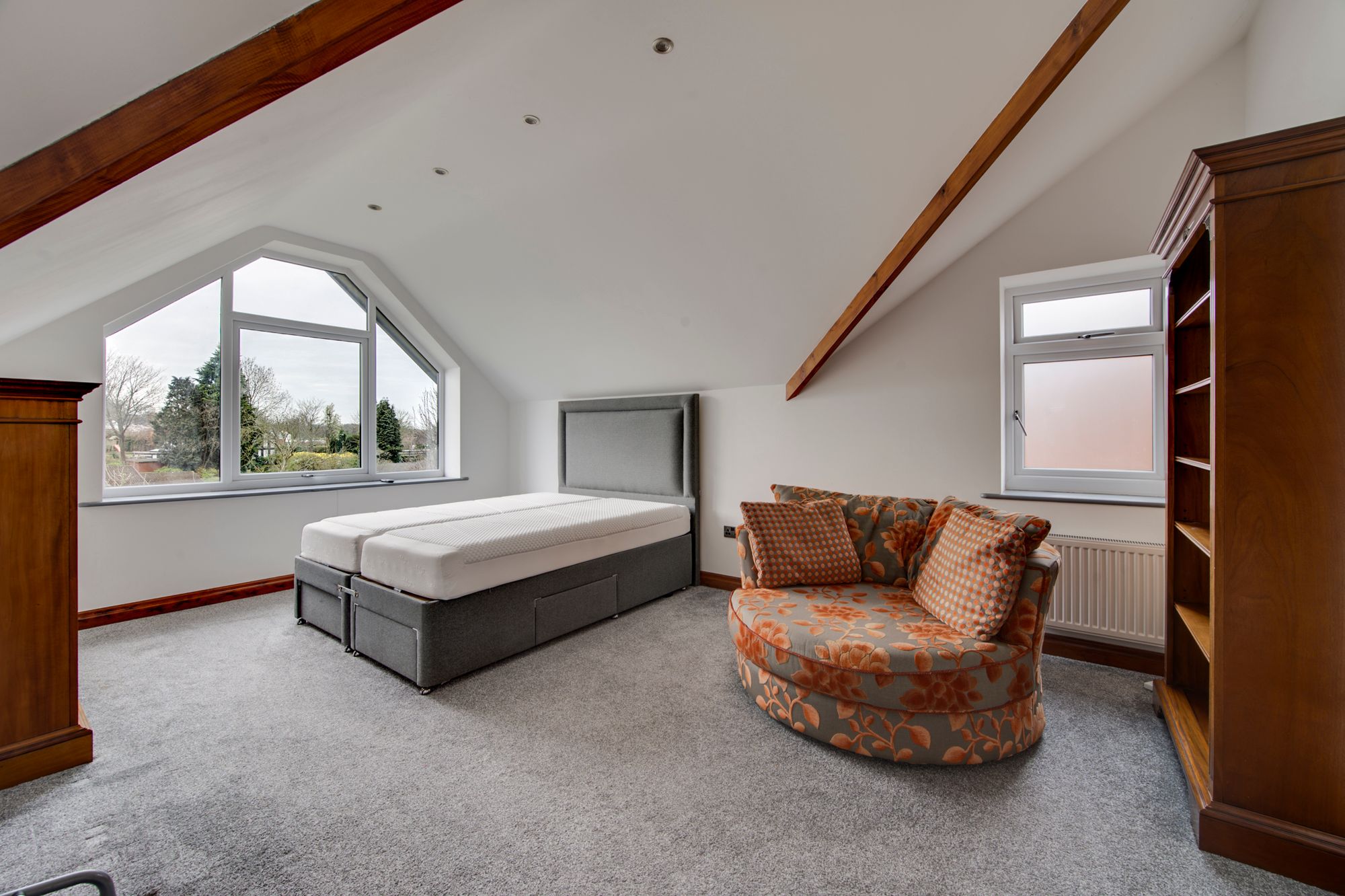 Step outside to discover beautifully landscaped gardens that perfectly complement the homeโs individual architecture. The outdoor space provides a tranquil retreat for alfresco dining, family gatherings, or simply relaxing in the sunshine, with well-maintained lawns and mature planting offering both privacy and year-round interest. Immediately adjacent to the homes lounge and kitchen/diner is an extended Indian stone patio, the perfect place to sit and admire your peaceful surroundings. Practicality is at the forefront, with vehicular access and parking available from both The Mount and Margery Avenue, ensuring convenience for both residents and guests alike. Whether you envision summer barbeques, childrenโs play, or a peaceful morning coffee surrounded by greenery, this garden is designed to accommodate every occasion.