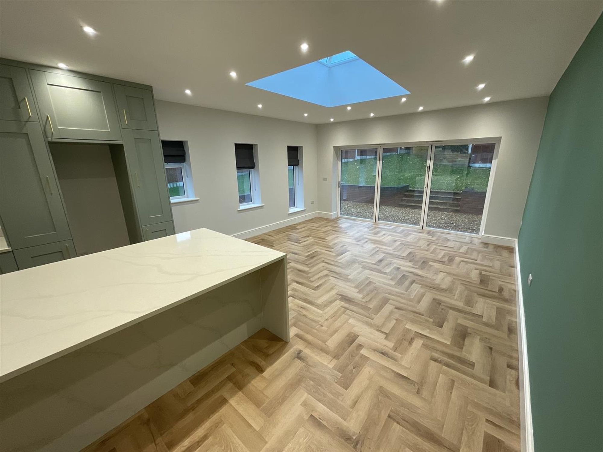 The kitchen is equipped with contemporary fittings and features underfloor heating, ensuring a cosy environment throughout the year. The master bedroom boasts an en-suite bathroom, providing a private retreat for relaxation. In addition to the en-suite, there -is also the family bathroom and down stairs cloak, catering to the needs of a busy household.