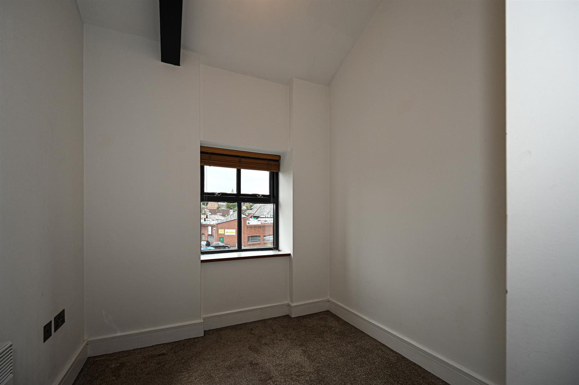 Presenting an exceptional opportunity to acquire a stunning two bedroom top floor apartment, situated in the heart of Congleton town centre within a beautifully converted mill. This impressive property seamlessly blends contemporary luxury with charming character features, including striking vaulted ceilings and exposed beams that create a sense of space and grandeur throughout. The high specification kitchen is both stylish and practical, offering integrated appliances, sleek cabinetry, and ample workspace, making it ideal for both every-day living and entertaining. The spacious open plan living and dining area is flooded with natural light, enhanced by the unique architectural details and direct access to a private balcony (perfect for relaxing or enjoying the vibrant atmosphere of the town centre). Both bedrooms are generously proportioned, with the principal bedroom benefiting from a luxurious en suite bathroom, fitted with high quality fixtures and elegant tiling. The second bedroom is equally well appointed and served by a contemporary family bathroom, ensuring convenience and comfort for residents and guests alike. This outstanding apartment also benefits from secure allocated parking, providing peace of mind in a central location, as well as access to beautifully maintained communal gardens. The property is accessed via a secure entry system and serviced by a lift, ensuring ease of access to the top floor. Offering a rare combination of modern living, historic charm, and superb convenience, this apartment must be viewed to be fully appreciated. Whether you are a professional seeking a stylish town centre residence, a downsizer looking for low maintenance luxury, or an investor searching for a high quality addition to your portfolio, this exceptional home offers versatility and broad appeal. With Congleton’s array of shops, cafes, restaurants, and amenities quite literally on your doorstep, and excellent transport links nearby, the location is second to none. Early viewing is highly recommended to avoid disappointment and to experience first hand the unique features and superior specification that set this property apart. Please contact our office to arrange a viewing or to request further information about this remarkable mill conversion apartment.