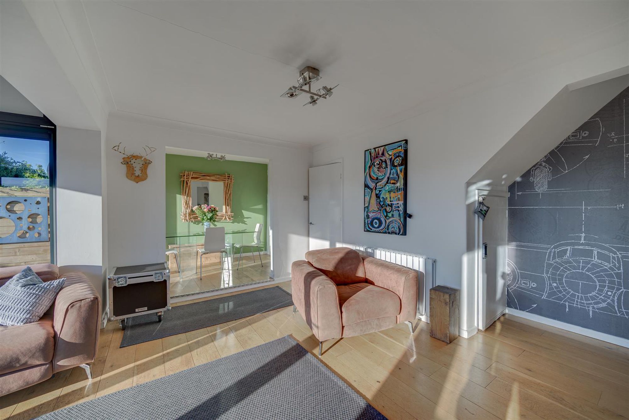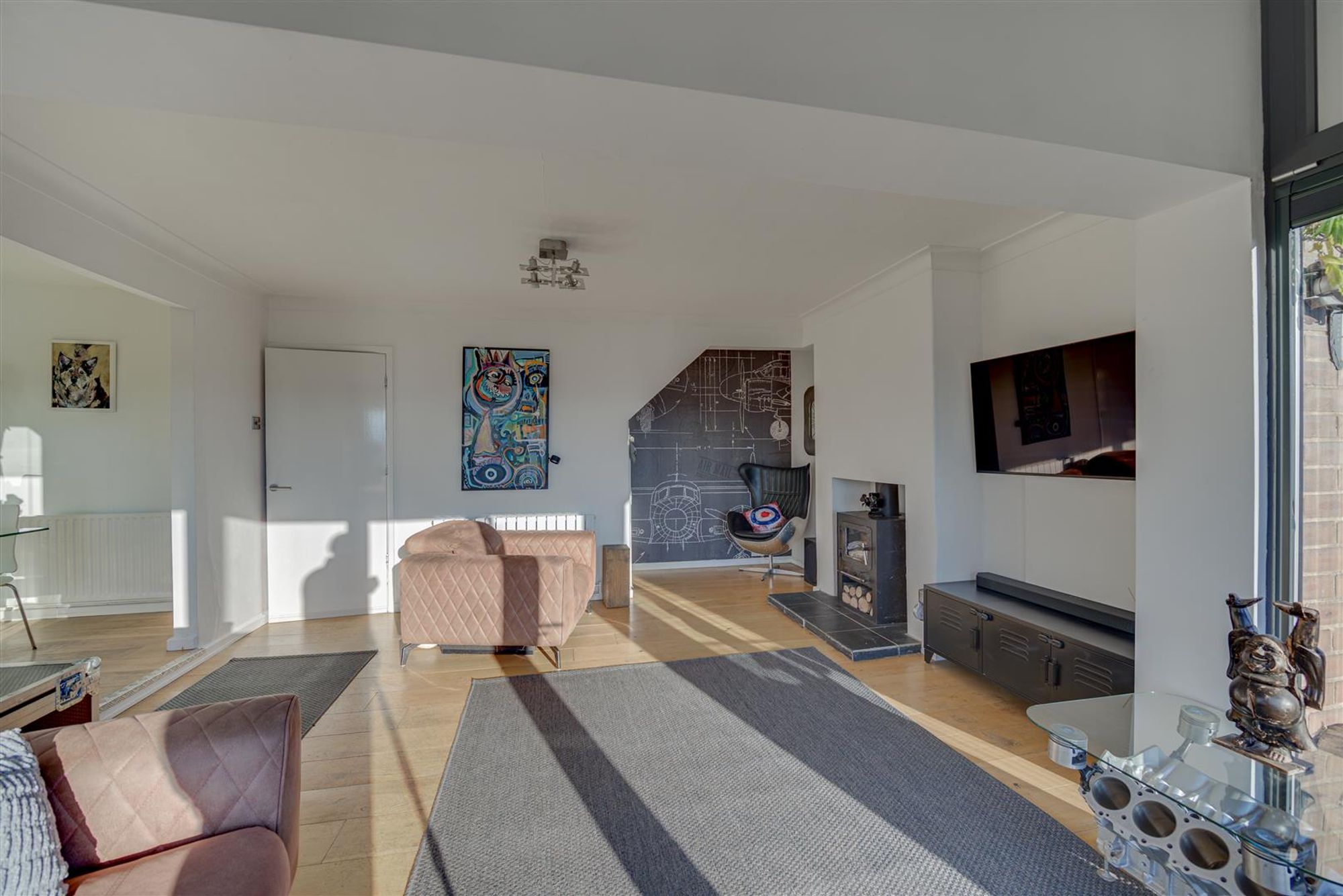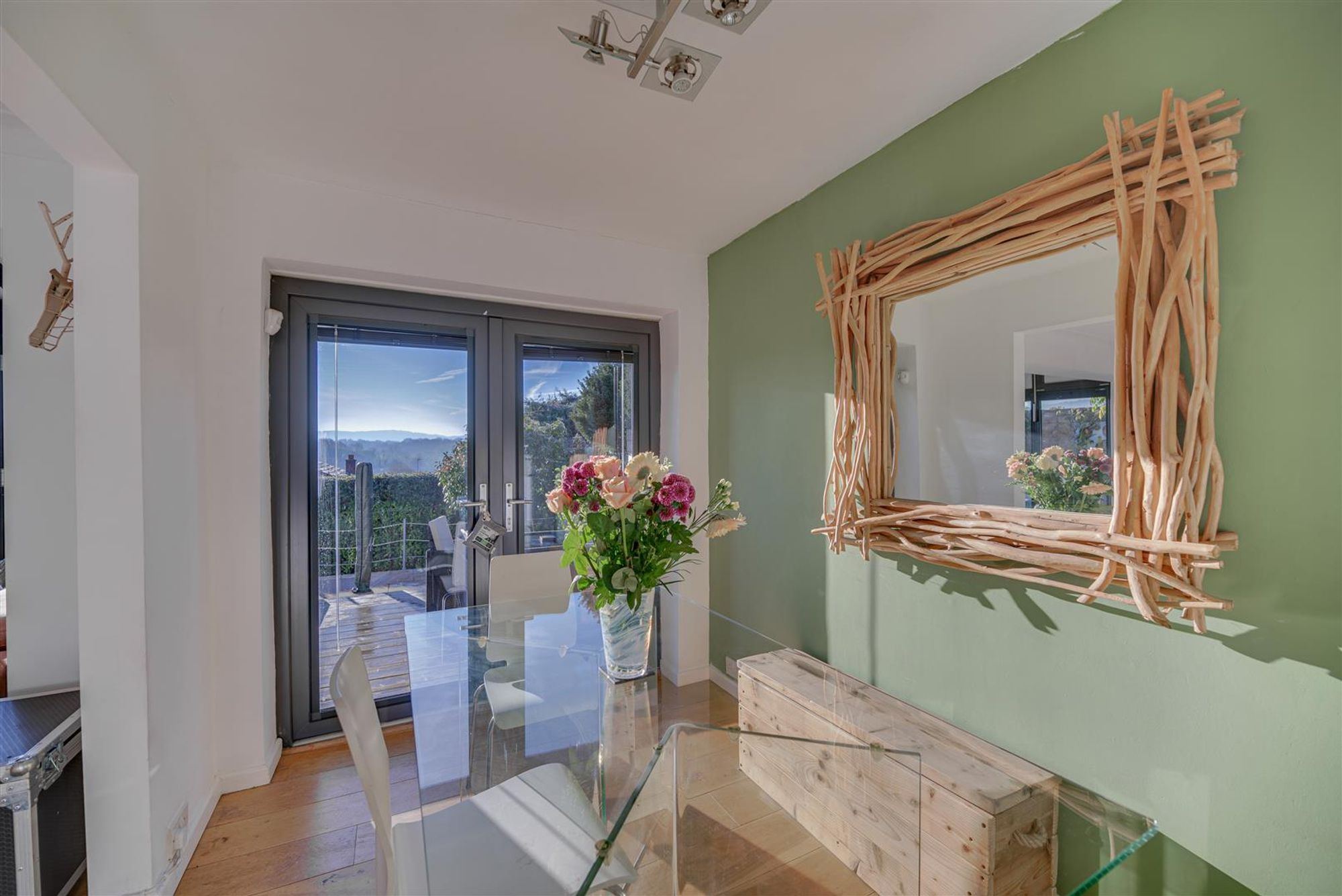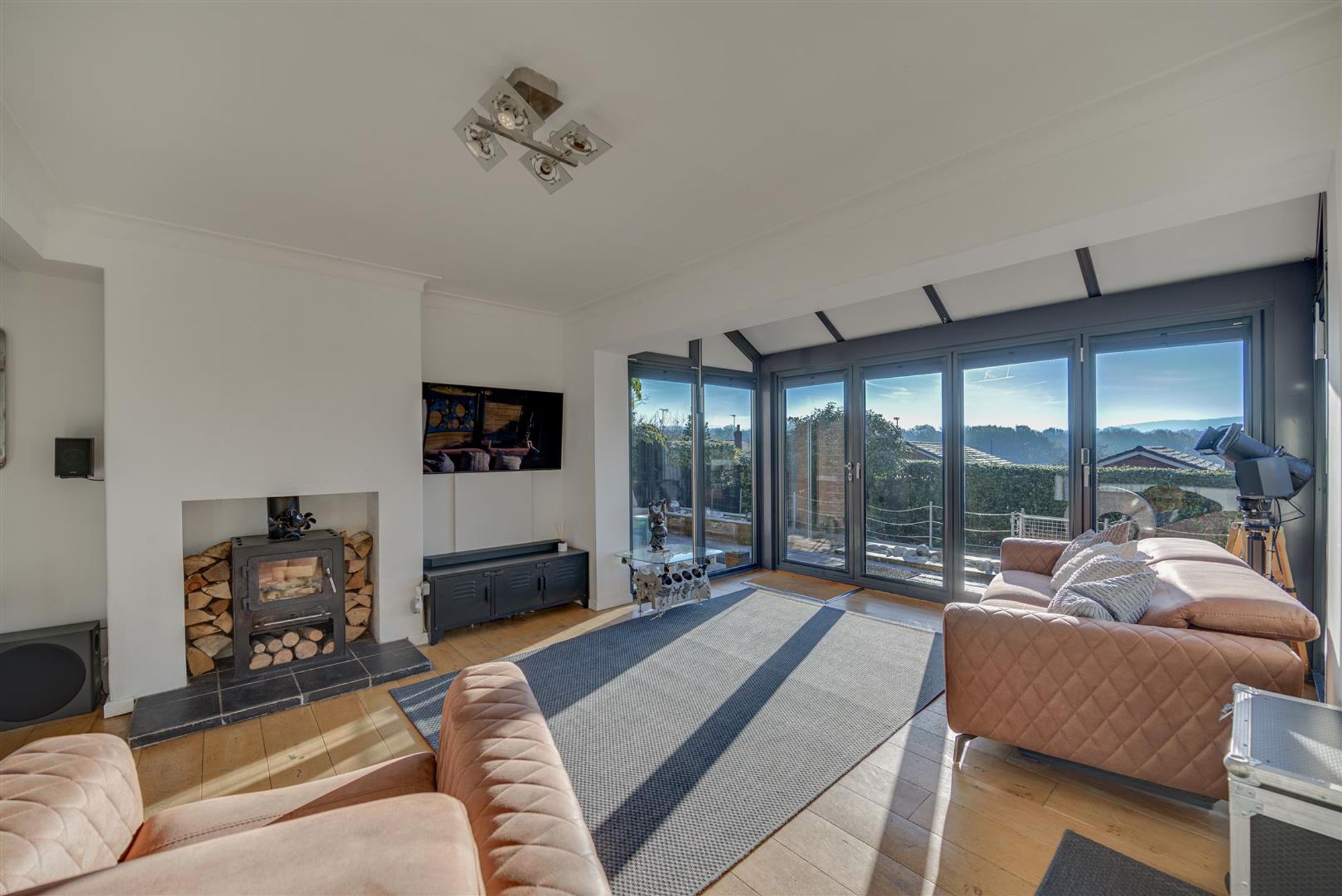 - Extended Lounge with wood floors and bifolding doors to gardens