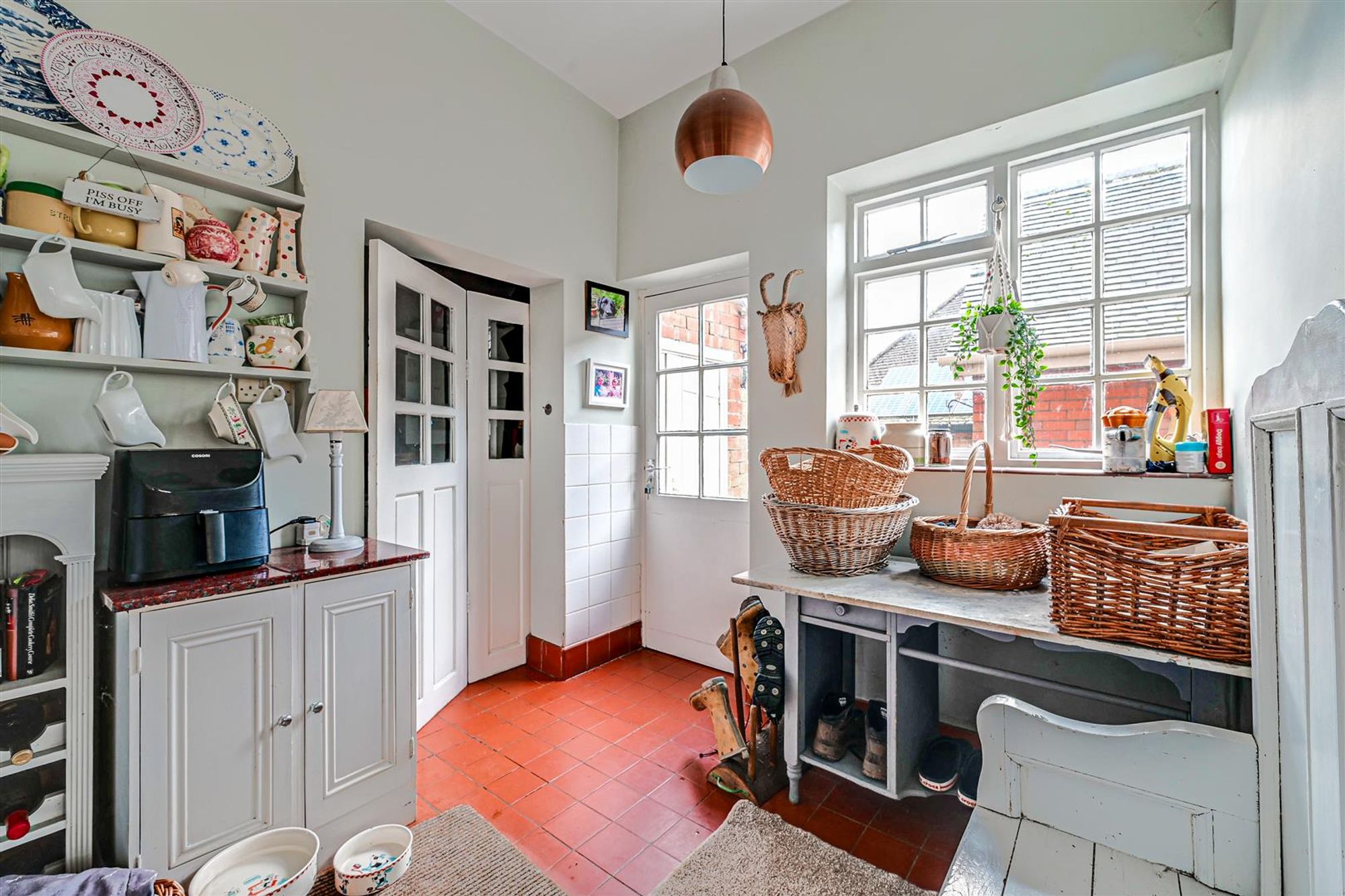 Dimensions: 2.64m x 2.36m (8'8 x 7'9). Single panel central heating radiator. 13 Amp power points. Quarry tiled floor. Timber framed multi glazed window to side aspect. 13 Amp power points. Door to outside. Door to utility.