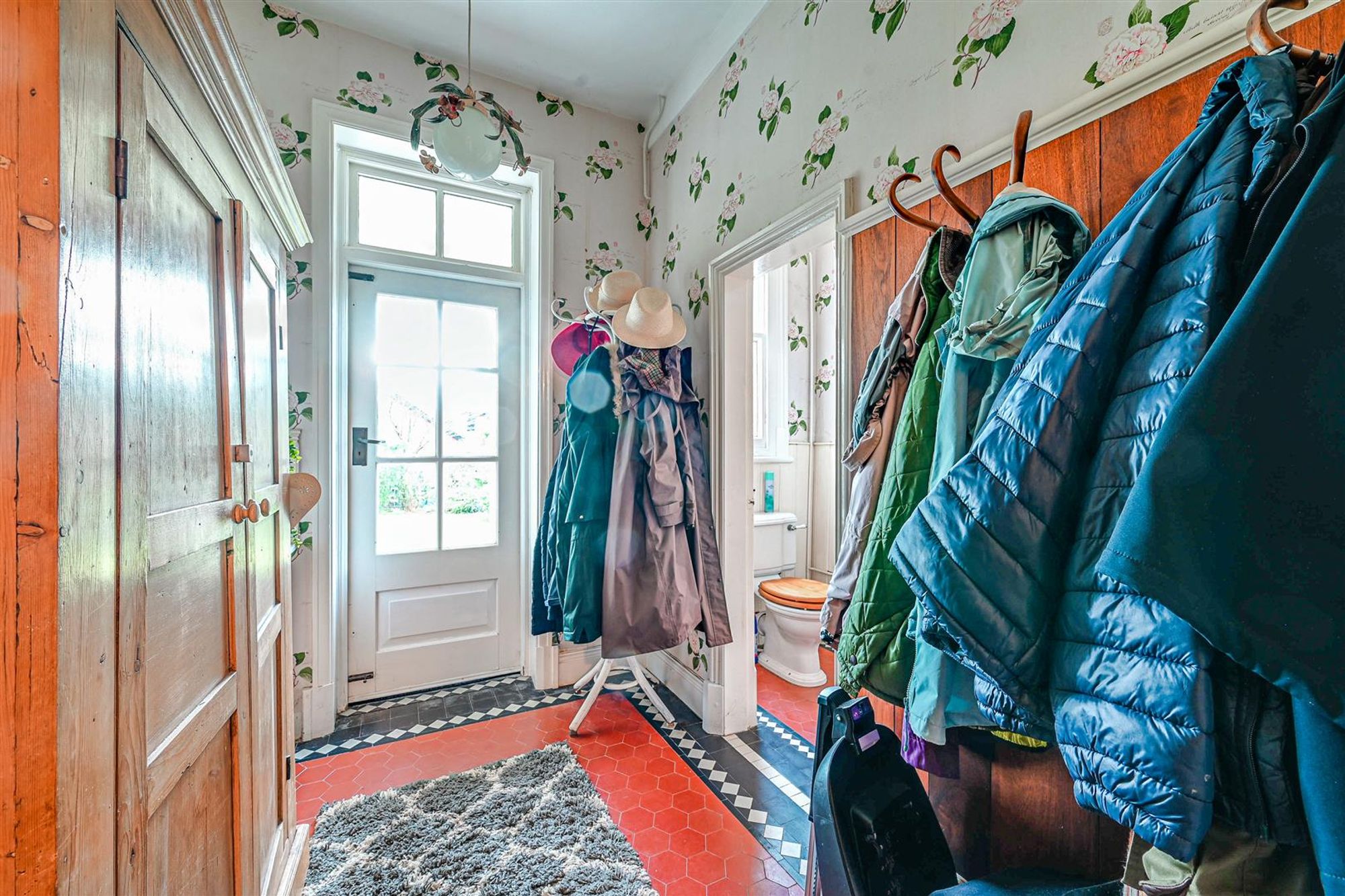 Quarry tiled floor. Coving to ceiling. Glazed tiles to half height. Oak panelled and multi glazed door to reception hallway.