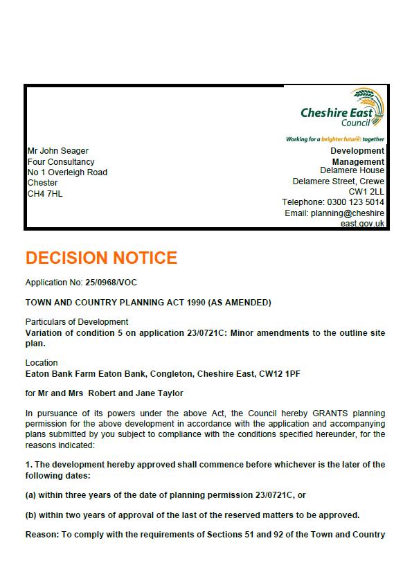 An exciting development opportunity to acquire a site comprising a barn and two fields with outline planning permission to demolish the barn and construct seven detached dormer bungalows and one large detached house. Overall size 9601sqft. We have conducted extensive retail price projections which we can share upon request. GDV estimate 3.135m (buyers must rely upon their own judgment and investigations).Cheshire East Council Planning ref: Application No: 25/0968/VOC.Buyers please note: This site is NOT subject to a CIL (Community Infrastructure Levy).The location is to the side of an established farmhouse in the Eaton Bank area of Lower heath with amazing views of Cheshire countryside and easy access to Congleton Link Road, an array of amenities/shops and well regarded schools with Eaton Bank Academy neighbouring the site.An exciting opportunity for a developer, builder or investor. Watch our video, familiarise yourself with the planning and call us for more information and to book a viewing!