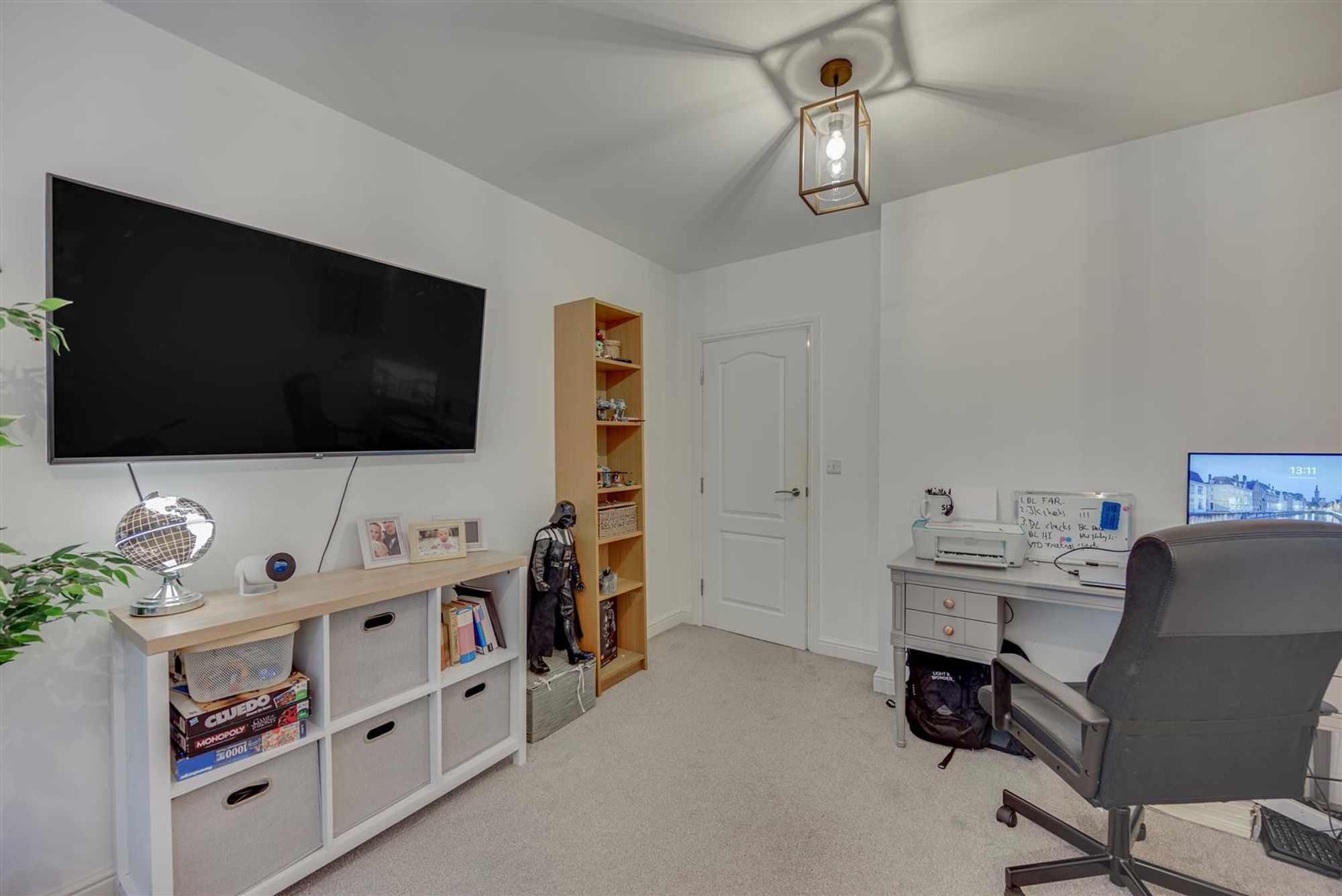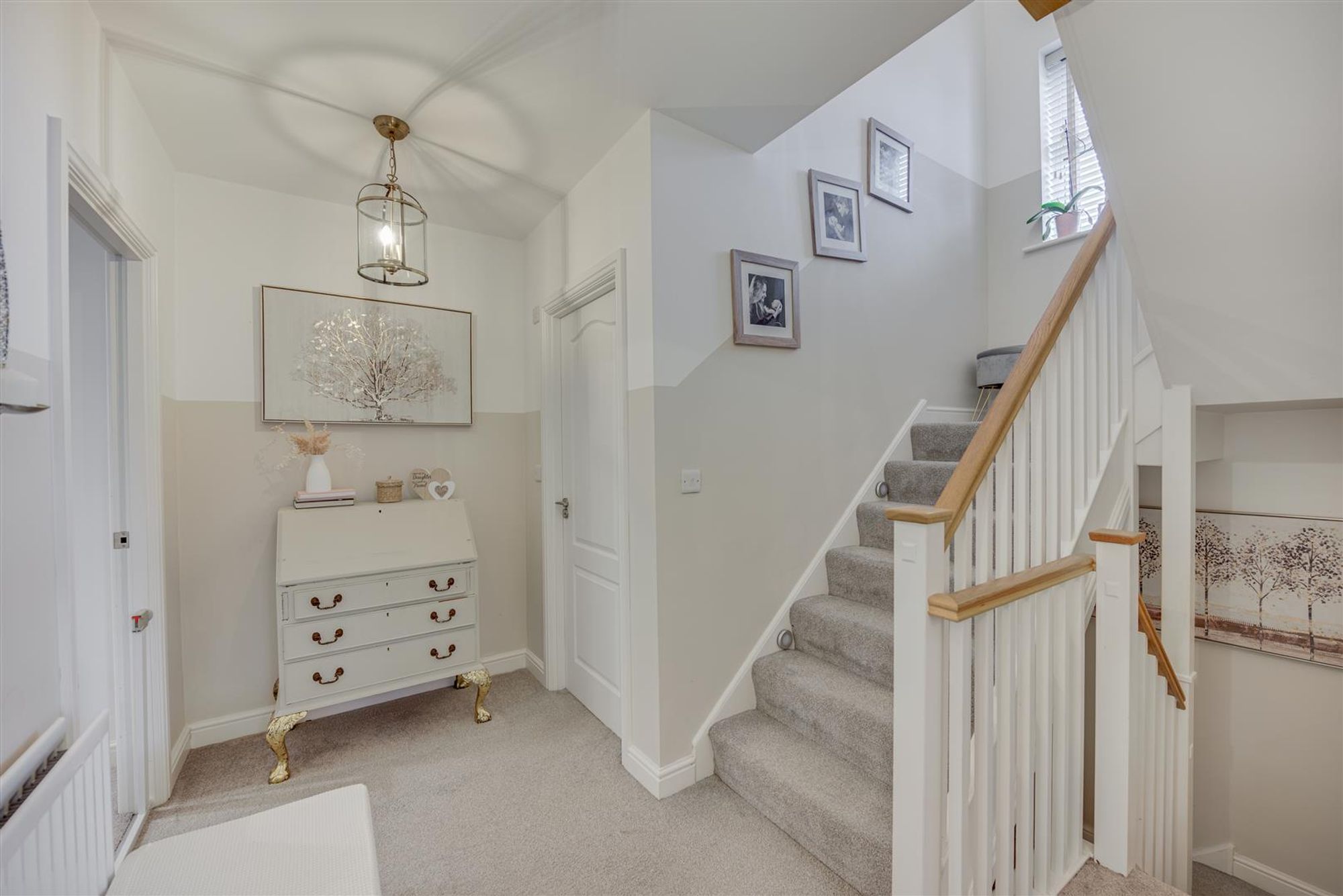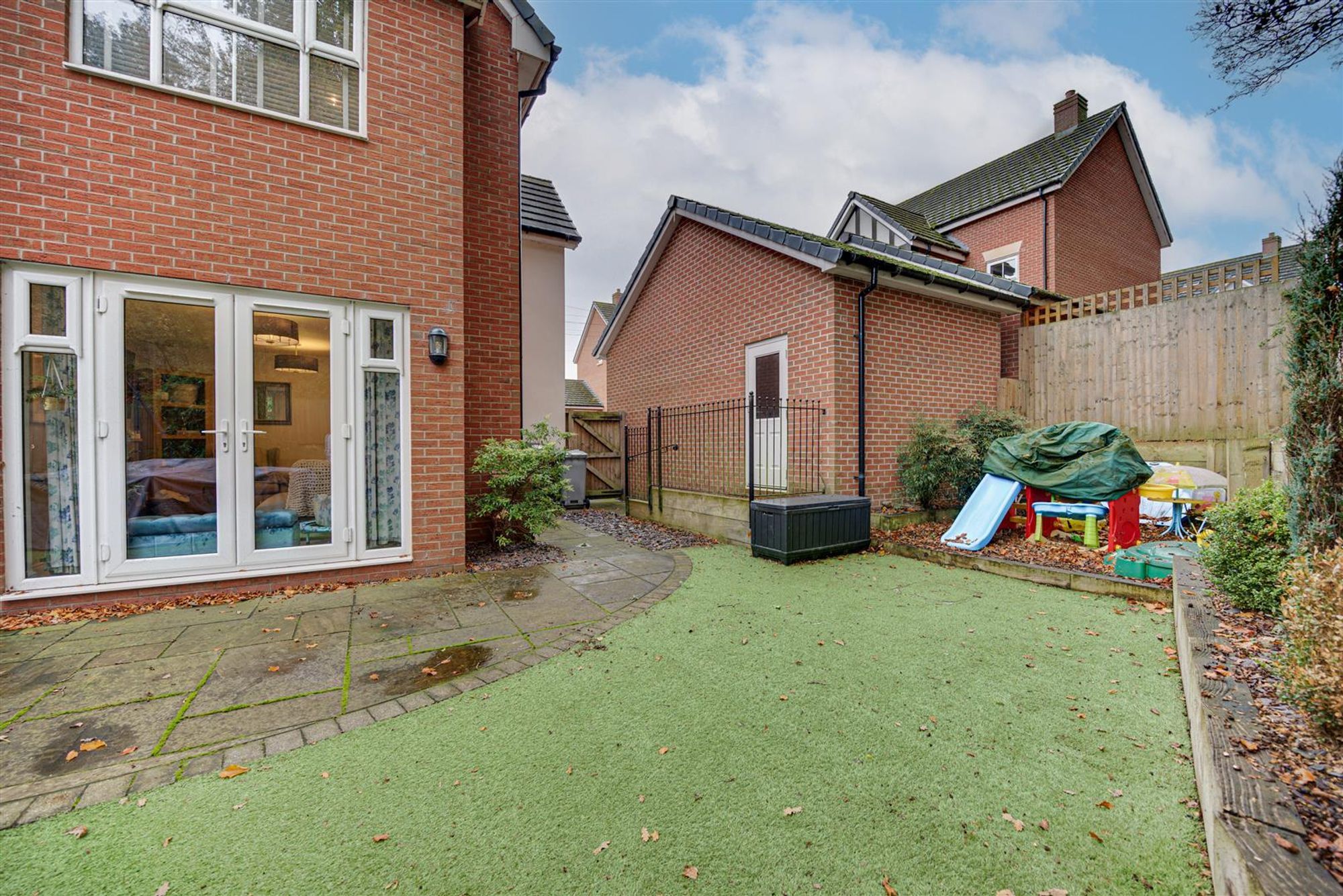 Located within an exclusive and highly sought after residential development, this detached family home exudes kerb appeal and is set agains mature leafy woodland! Having been recently constructed, the development is very well thought out and enjoys this leafy woodland view. Inside the home you'll find exceptionally well presented family accommodation across all three floors with many upgrades and a beautiful presentation throughout. The ground floor is simply perfect for family life whether you're entertaining, relaxing or home working. Of particular note is the dining kitchen that opens into the private gardens. Up on the first floor, all three bedrooms here are of a double size and both the en suite and family bathroom are luxurious. Up on the top floor are two further double bedrooms plus a luxury shower room, we feel this is the perfect space for independent teenagers to have their own space! Outside to the front is a handy driveway leading to the garage whilst the rear enjoys the aforementioned gardens backing onto the mature woods that you own a portion of just behind your fence!