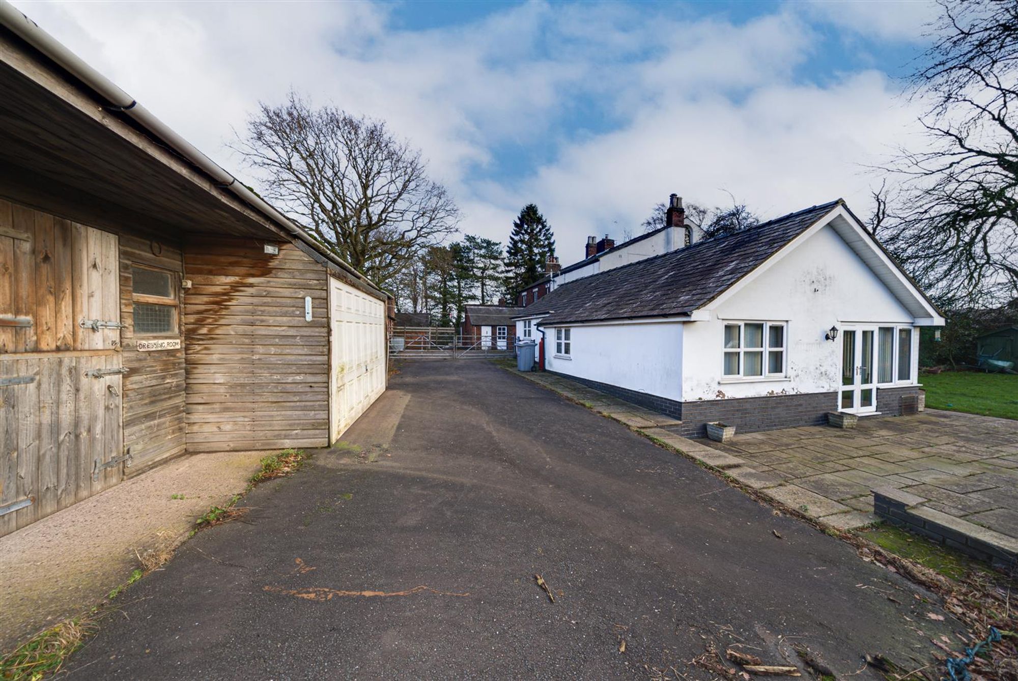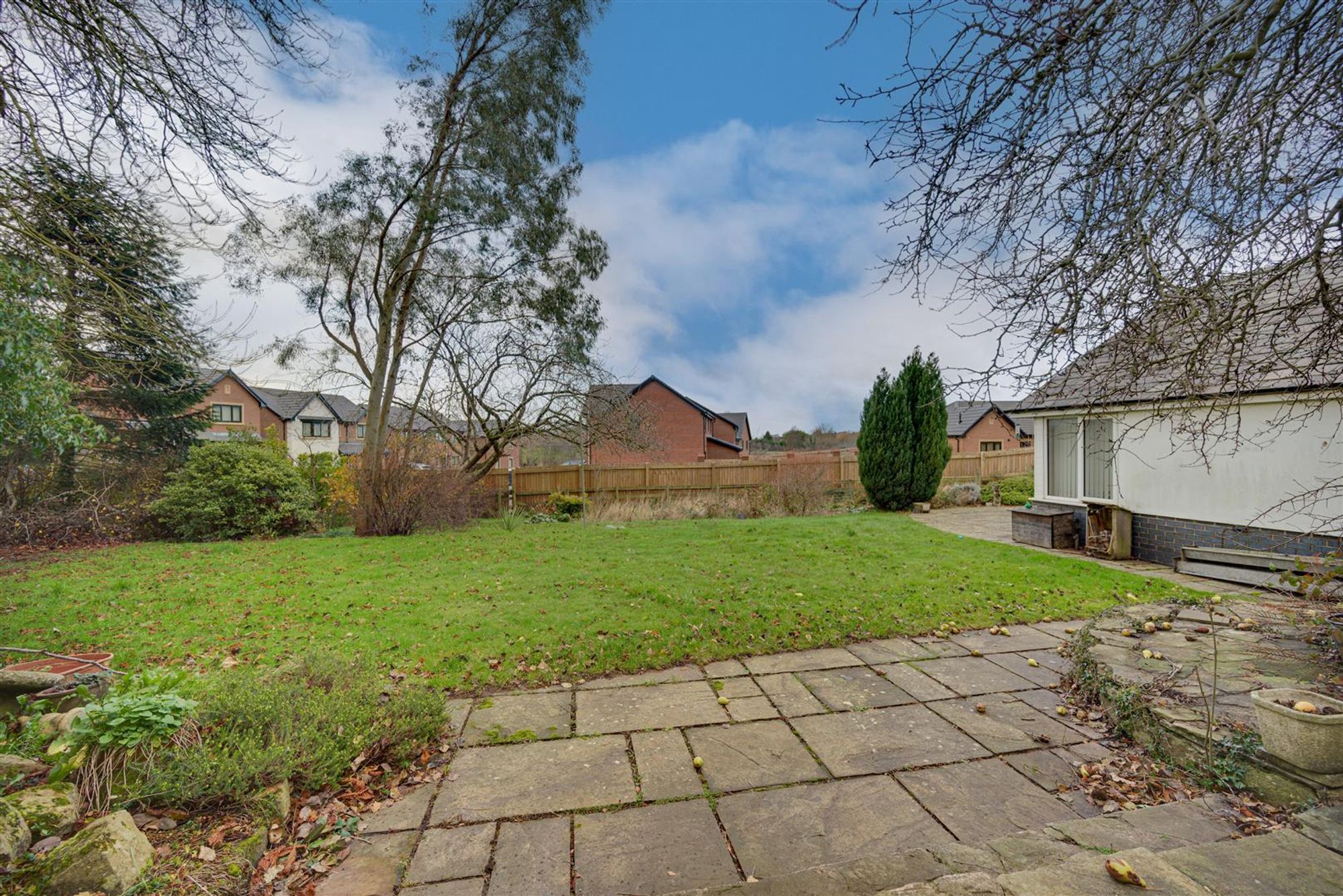 - Gardens, driveway and outbuildings to side and rear