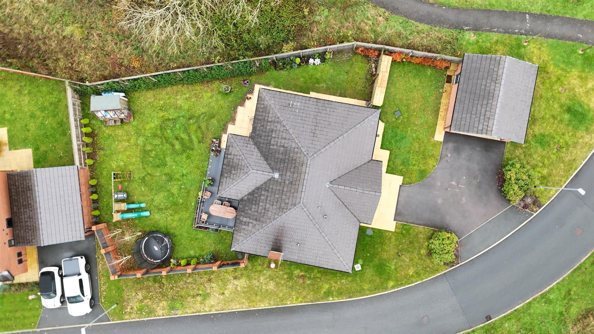 - Detached double garage and large driveway