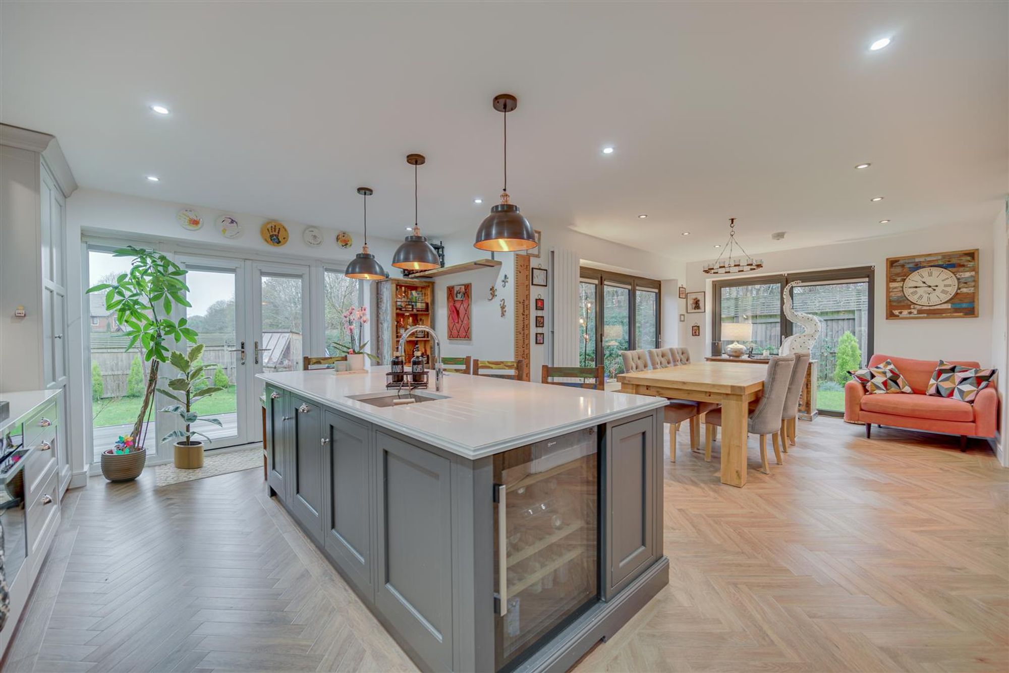 - Striking dining kitchen with garden access plus separate utility room