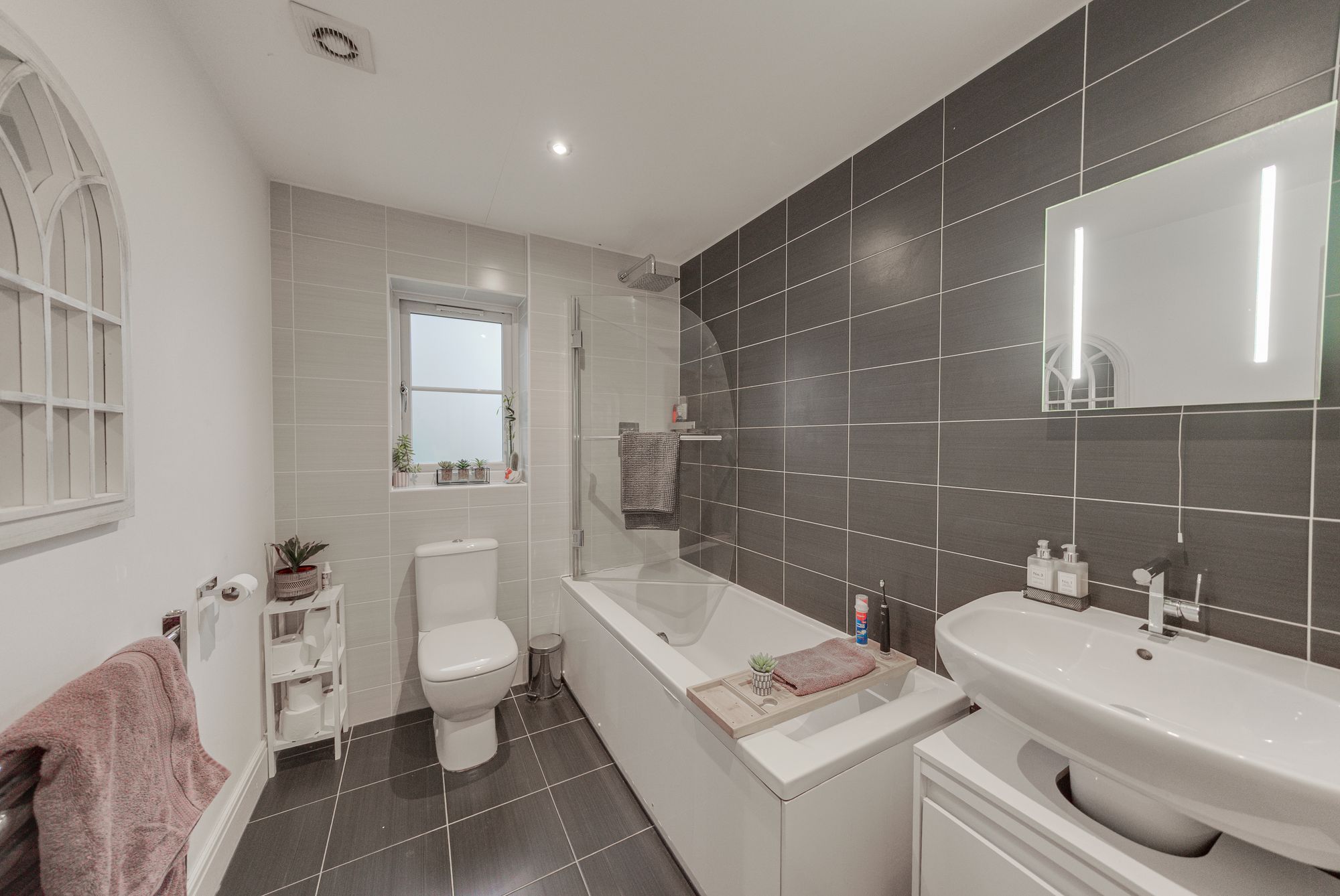 All sanitary areas, including the en-suite, family bathroom, and ground floor WC, are finished with high-quality fittings, modern tiling, polished chrome tapware, and heated towel rails, creating a luxurious and cohesive feel throughout.
