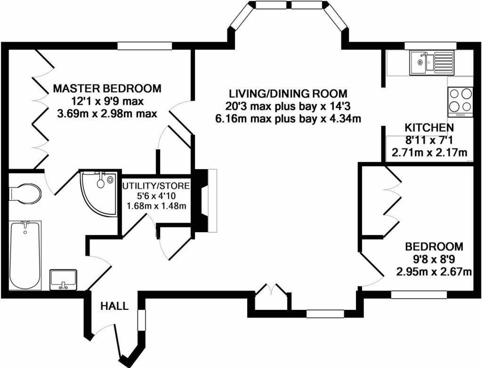 Dimensions: 3.69 x 2.98 (12'1" x 9'9").