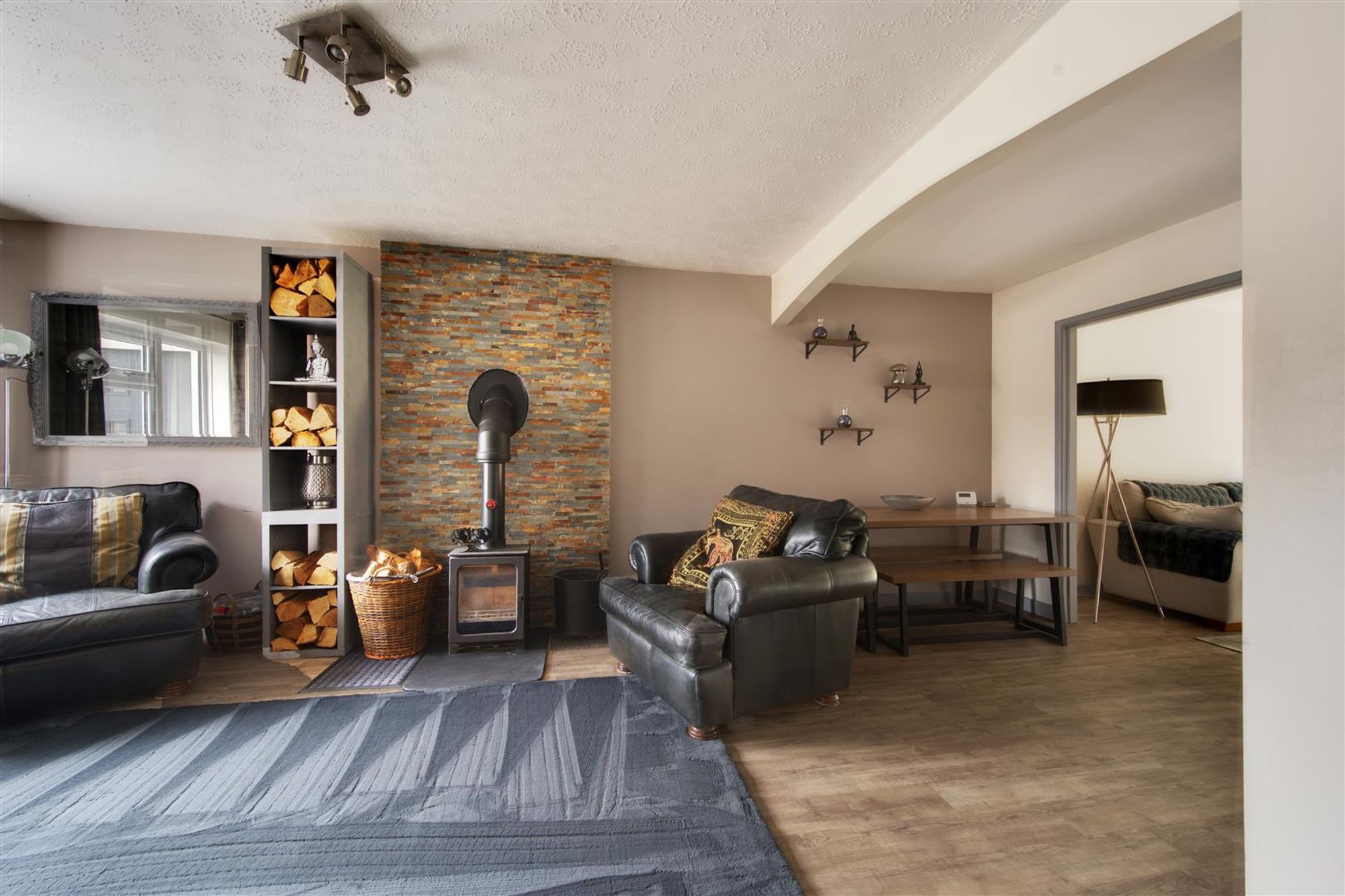 Accompanying the home are a number of features to note, some of which include:- double glazing throughout, a ground floor cloakroom, a spacious lounge with wood burning stove and split-face tiled surround, a generous breakfast kitchen complete with country-style shaker units, a wealth of storage, a range cooker and slate effect floor tiles. At the rear of the home, there is versatile reception space which is rear garden facing with patio doors opening onto the rear terrace.