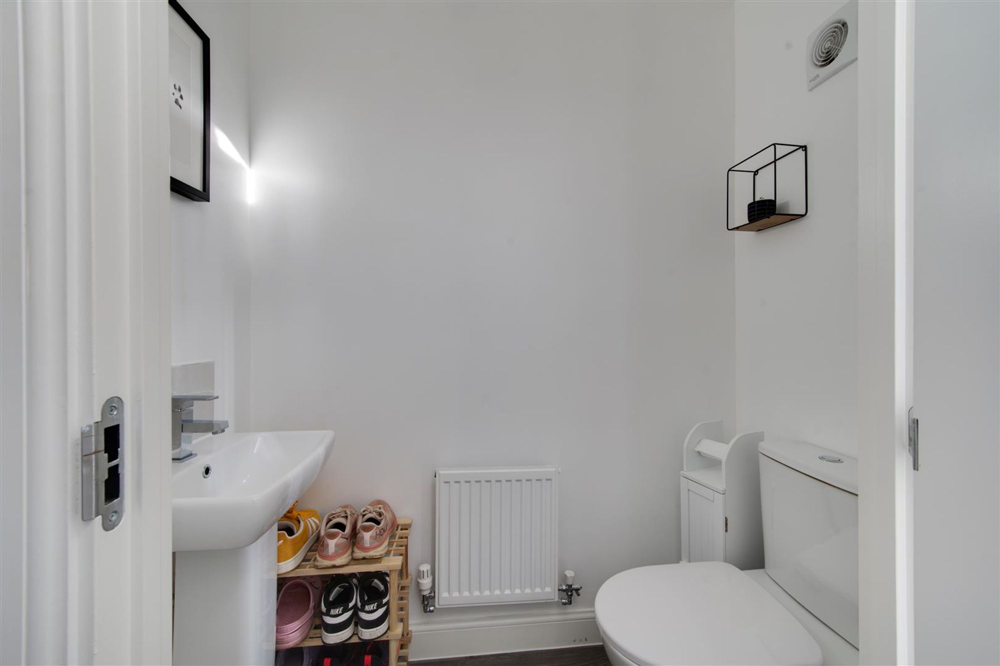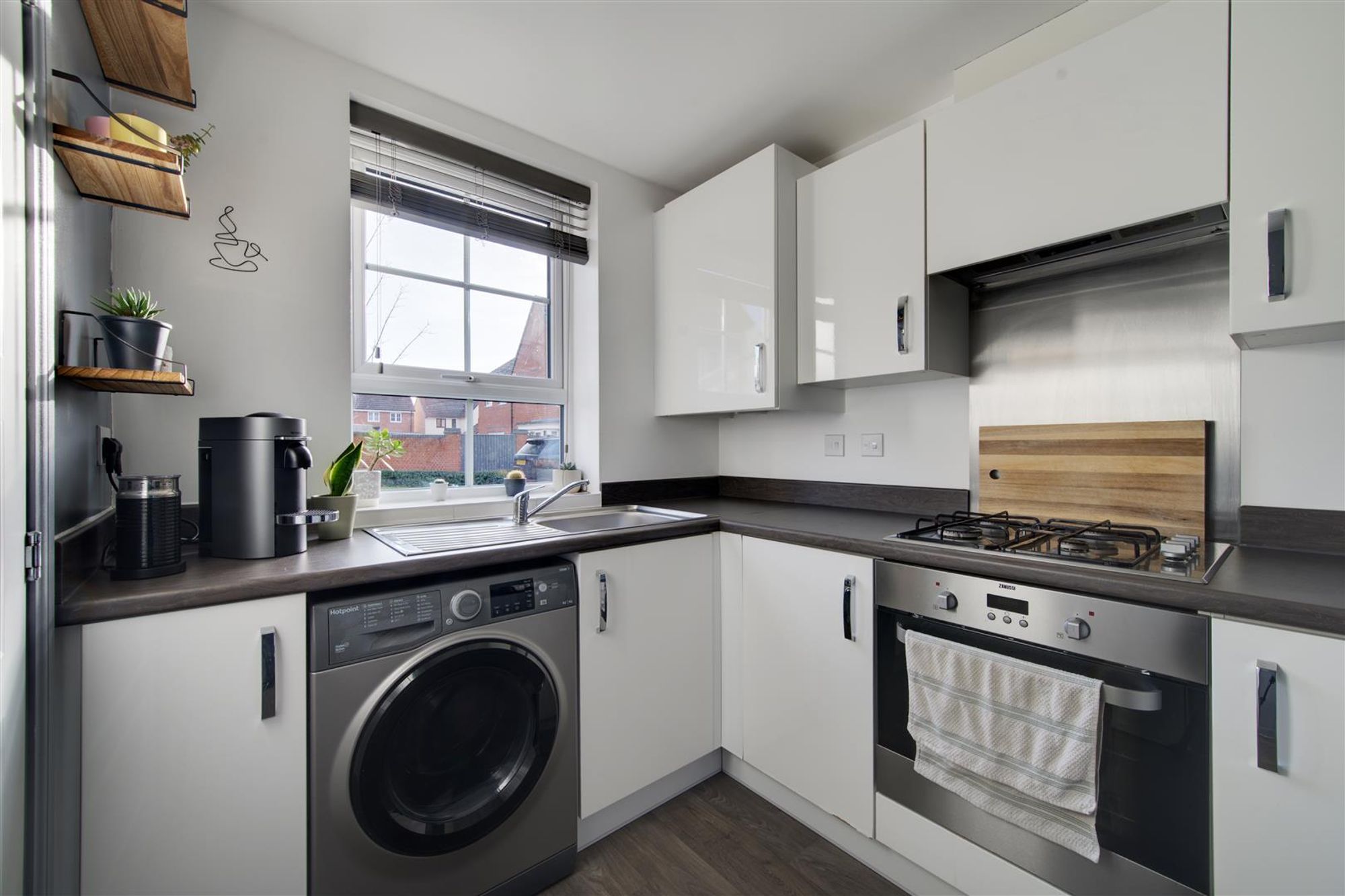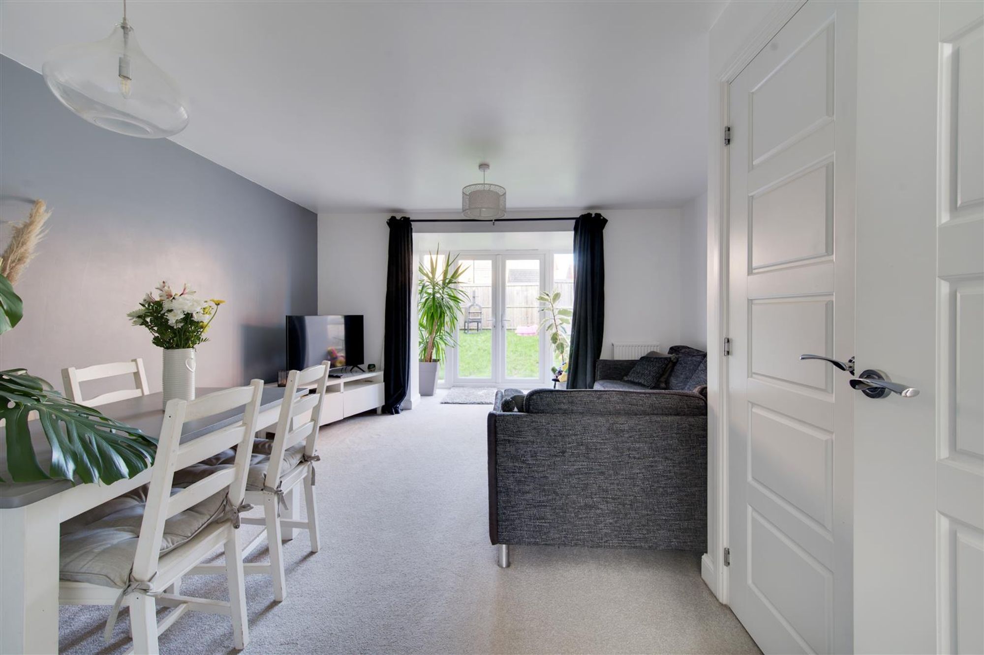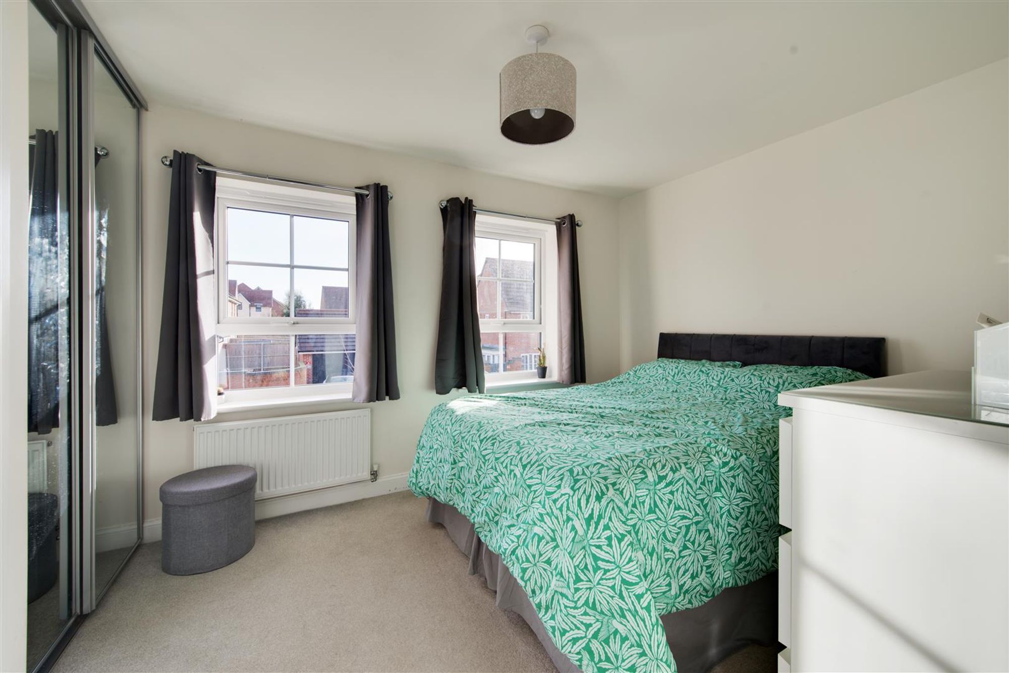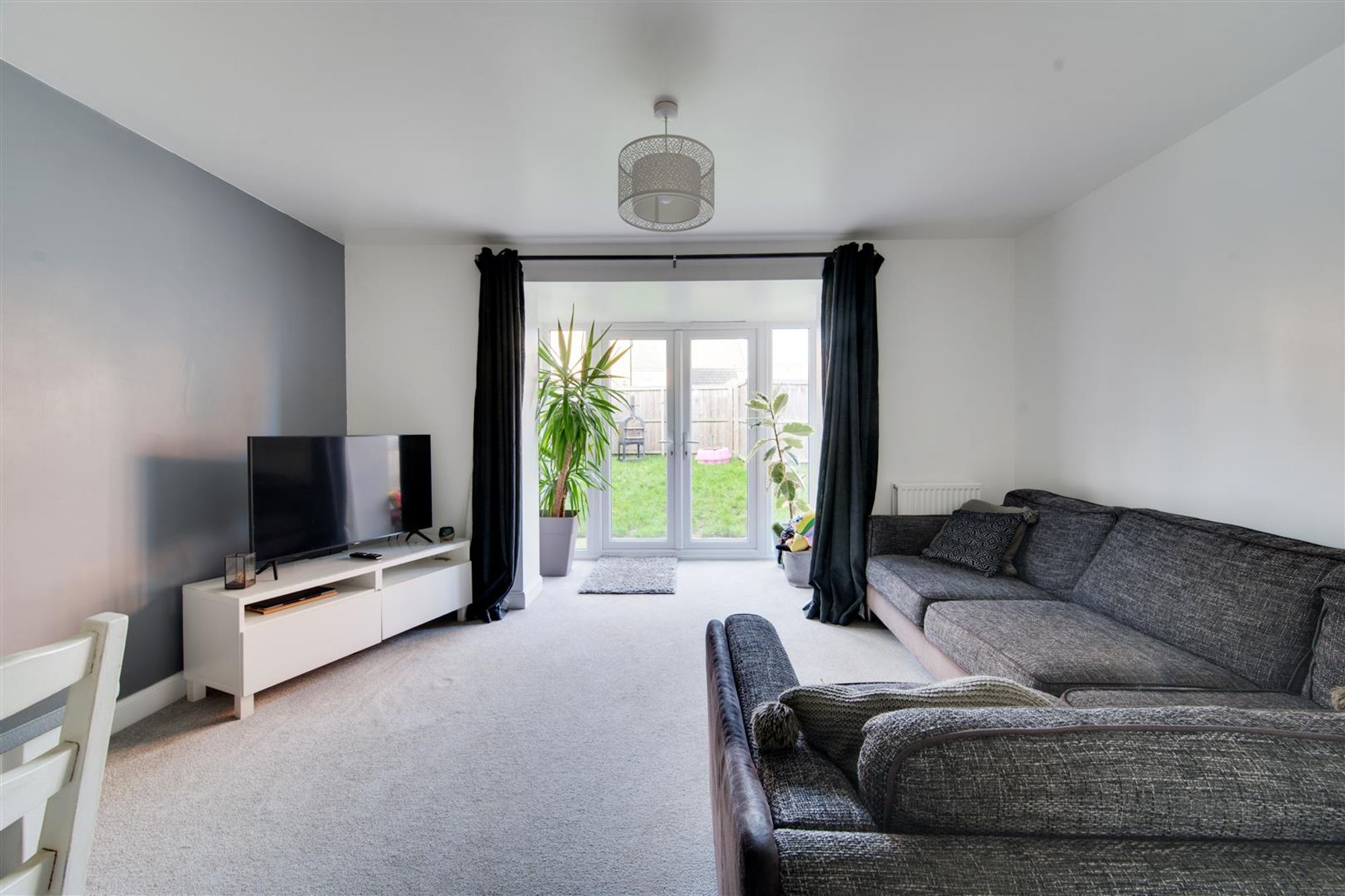 The property features a well-appointed, versatile lounge/dining room at the rear of the home with a feature walk-in bay window and French doors, perfect for entertaining guests or enjoying quiet evenings at home. At the front of the property the modern kitchen con be found with ample space for freestanding appliances and quality stylish kitchen cabinetry. In addition, there is a handy down stairs cloakroom and the whole home is awash with clever storage solutions in both the lounge, landing and main bedroom!