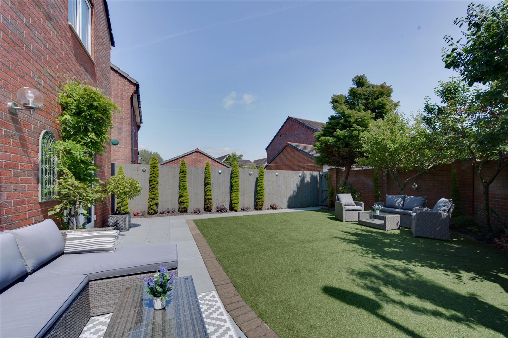 Externally, the home has a detached garage approached by a driveway providing off-road parking and a landscaped rear garden which has been designed with low maintenance in mind, having well-stocked beds home to a range of ever-maturing trees, an artificial lawn section and a beautiful patio, perfect for alfresco dining and relaxing with privacy!