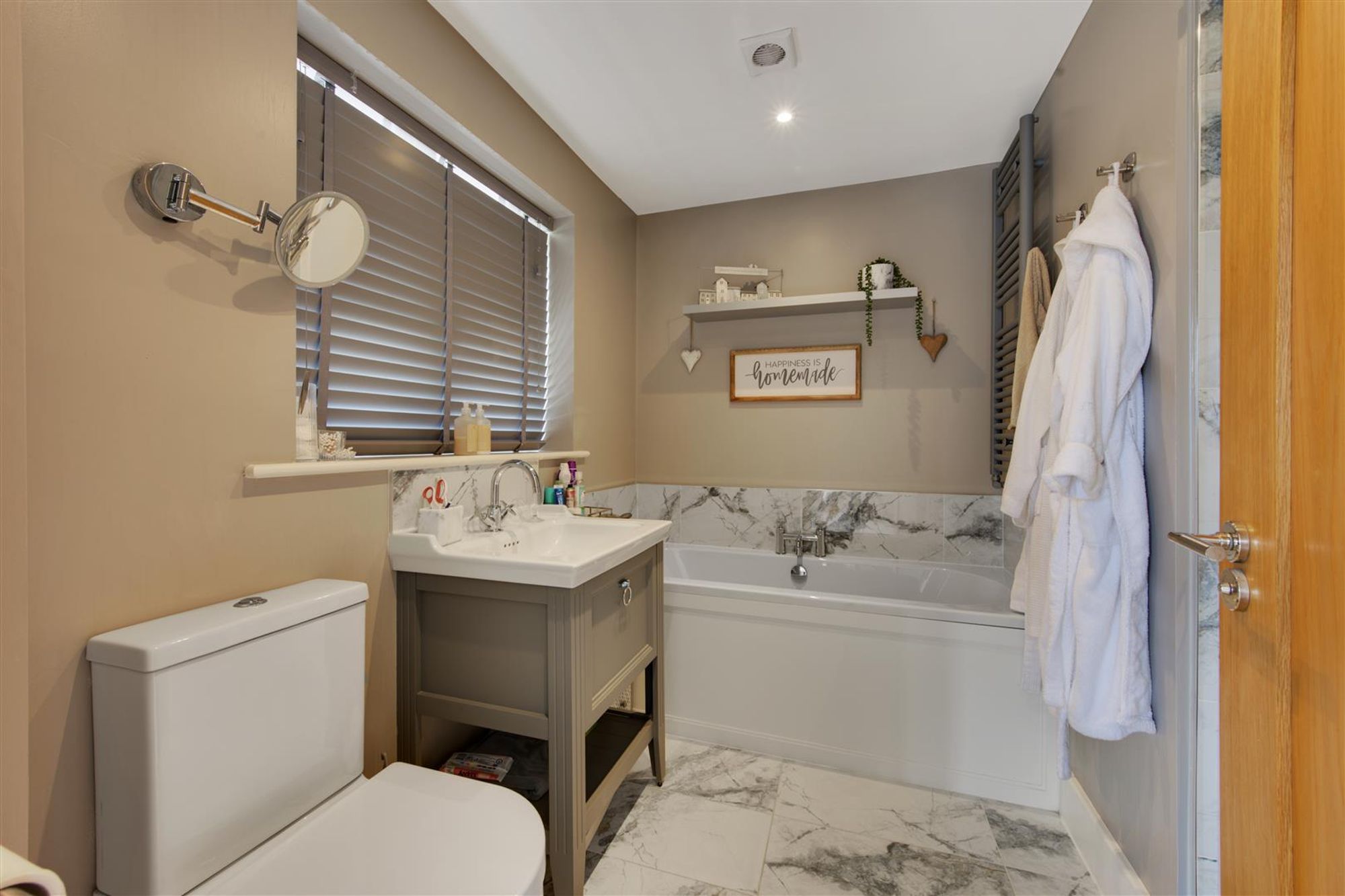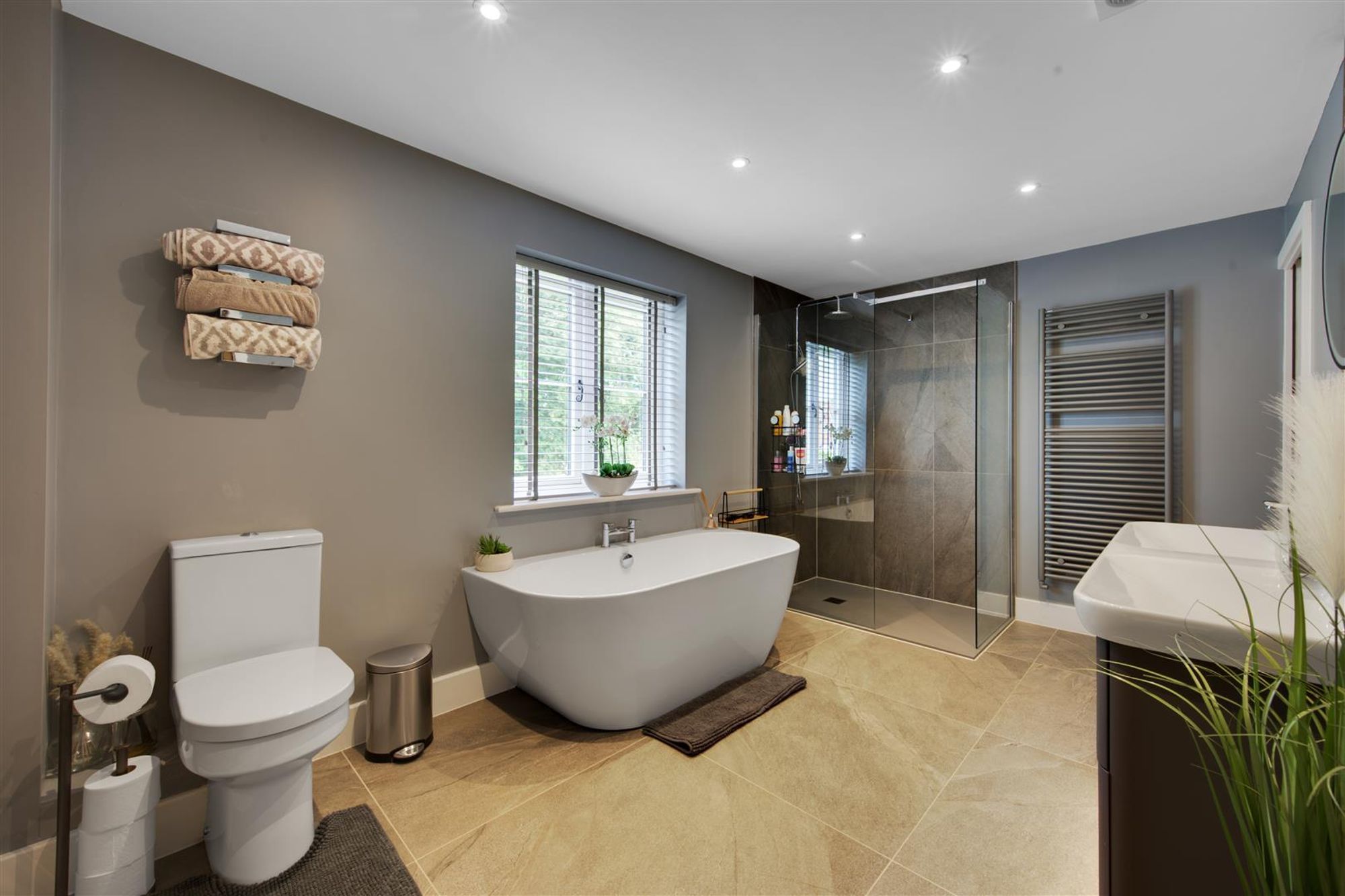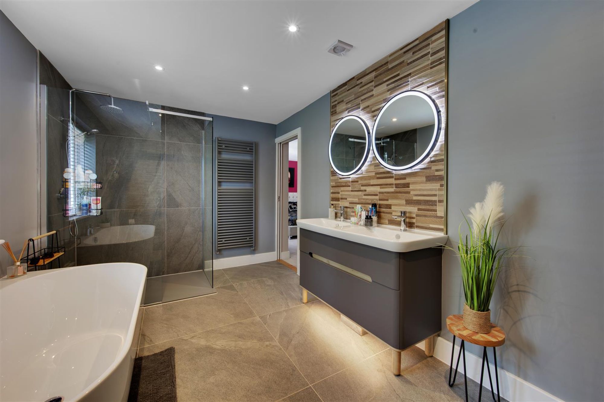 The first floor landing gives access to a spacious master bedroom with dressing room, contemporary en-suite bathroom & Juliette balcony. Bedrooms two & three are good sized and have access to an amazing 'Jack& Jill' en-suite with designer freestanding bath, separate shower and twin wash hand basins. There is a further bedroom with its own en-suite shower.