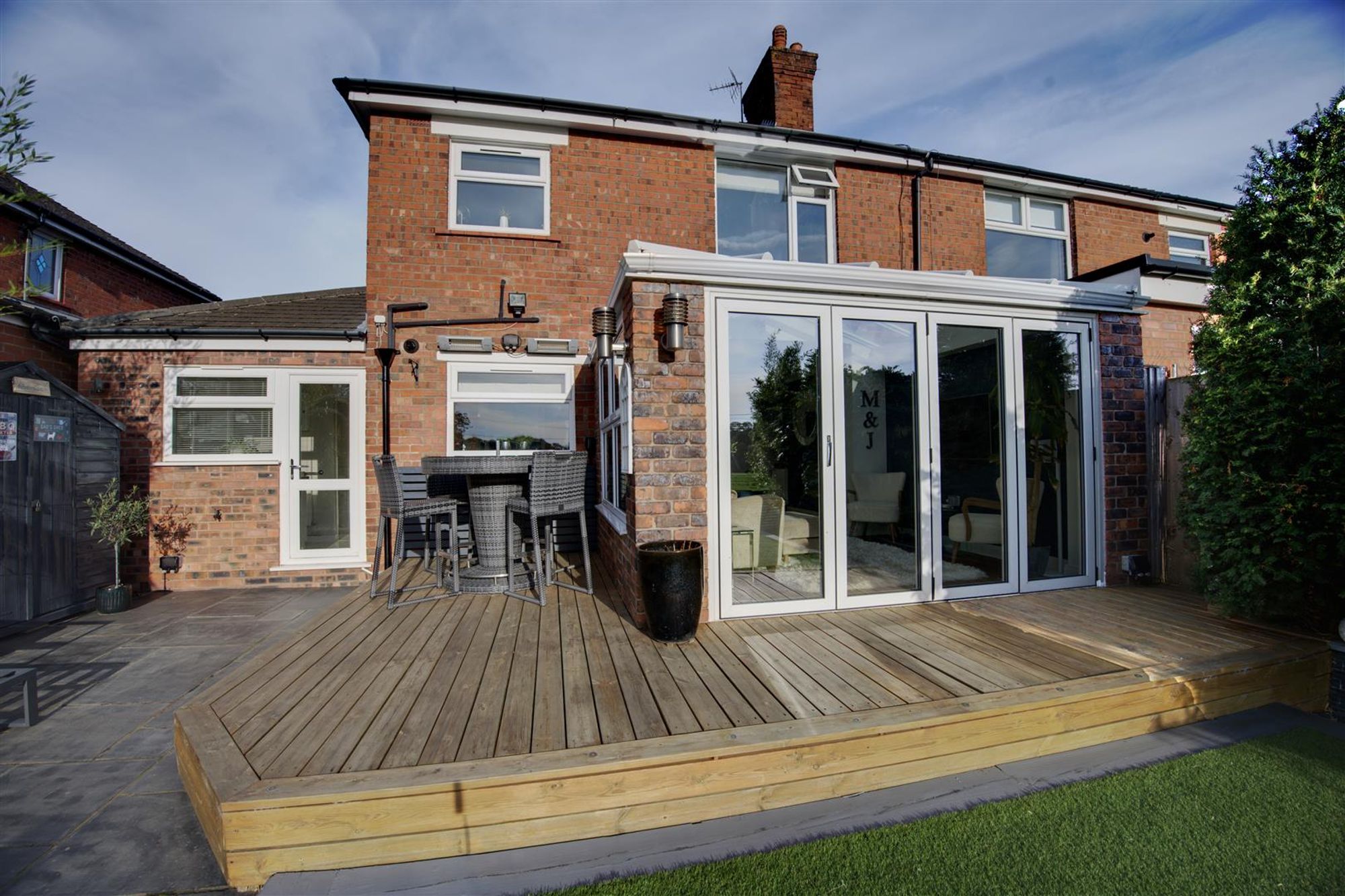 Step outside to discover the generous and totally private, south-westerly facing rear garden. A tranquil oasis that backs onto open fields. Enjoy the peaceful surroundings and soak up the sun in your own private outdoor sanctuary. The rear garden has been landscaped with ease of maintenance in mind, with artificial lawned area, raised deck and quality paving, designed totally for the enjoyment of the occupier & perfect for those who love to host!