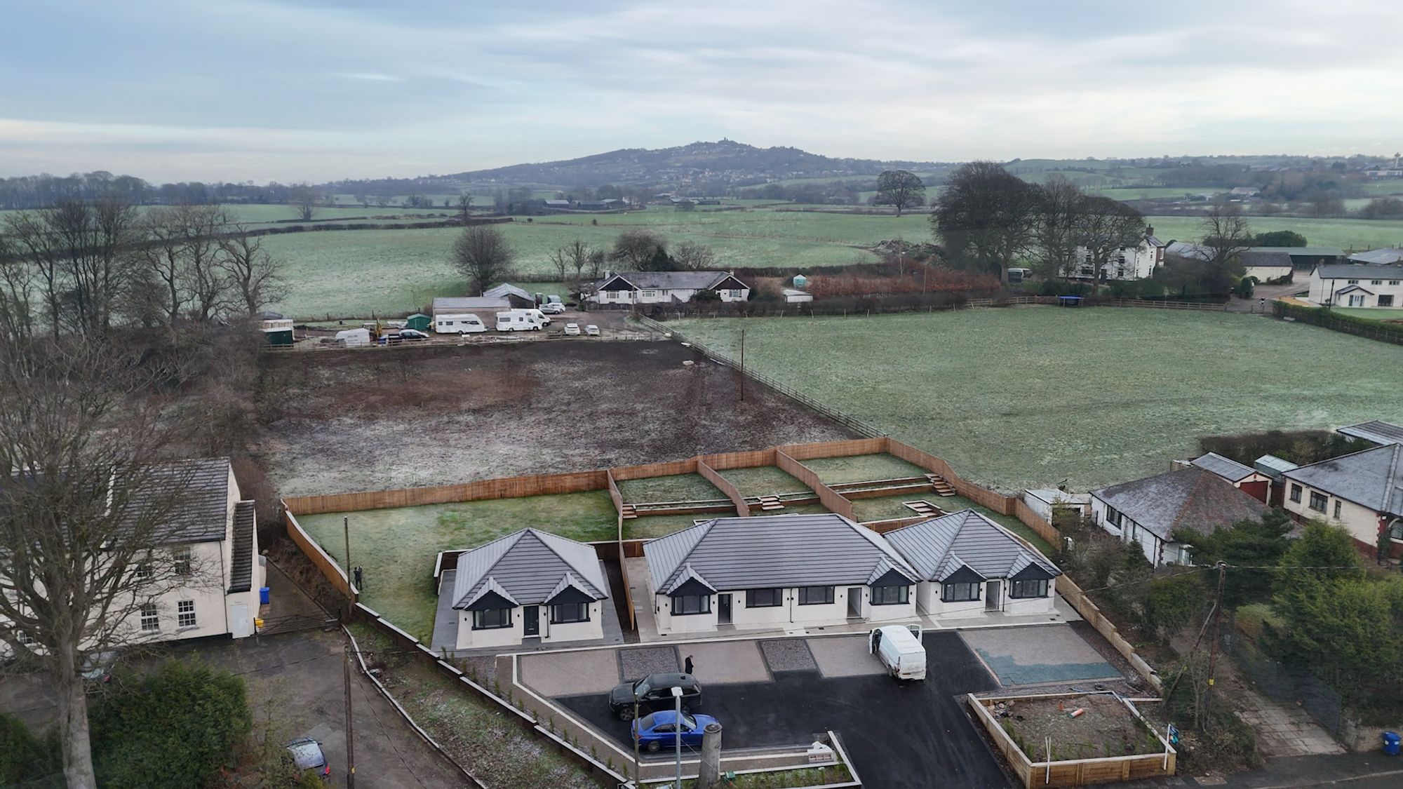 Welcome to this exceptional two bedroom semi-detached bungalow, crafted by a local developer and finished to an outstanding specification throughout. Step inside and you will immediately appreciate the attention to detail and quality that sets this home apart. The inviting entrance hall leads to a stunning open-plan living kitchen/diner where contemporary design meets comfort and practicality. The kitchen is beautifully appointed with sleek cabinetry, a wealth of integrated appliances, a breakfast island and plentiful workspace making it a joy for both every-day living and entertaining. The open-plan layout is perfect for modern lifestyles too, offering ample space for relaxing and dining with family or friends. Underfloor heating runs throughout the property, ensuring a cosy and energy-efficient environment all year round. Both double bedrooms are generously proportioned, with large windows and a walk-in bay-window to bedroom one that bathe both rooms in natural light and provide a tranquil retreat at the end of the day. The luxurious shower room is finished to a high standard too, featuring stylish fixtures and fittings, a spacious walk-in shower, and elegant tiling. Quality materials and thoughtful touches are evident in every corner, from the internal doors to the tasteful décor and high-end finishes.