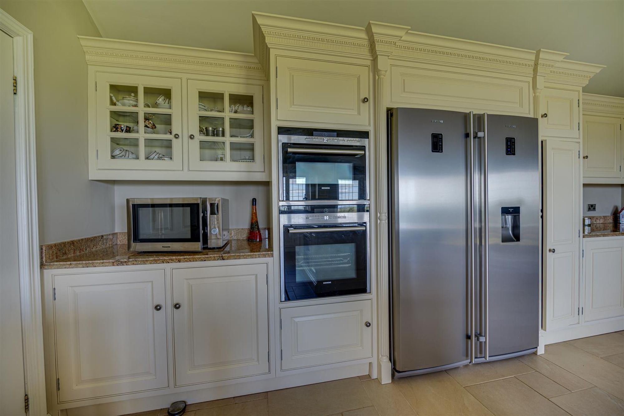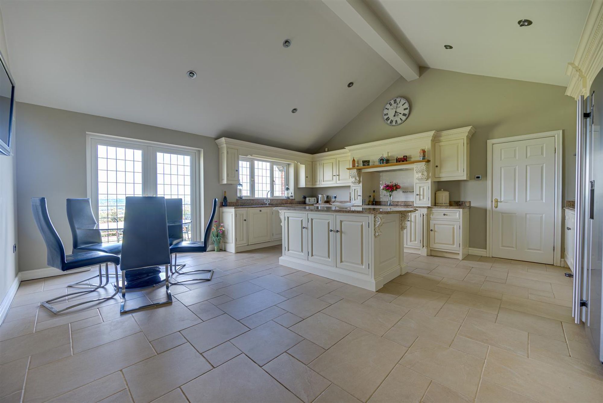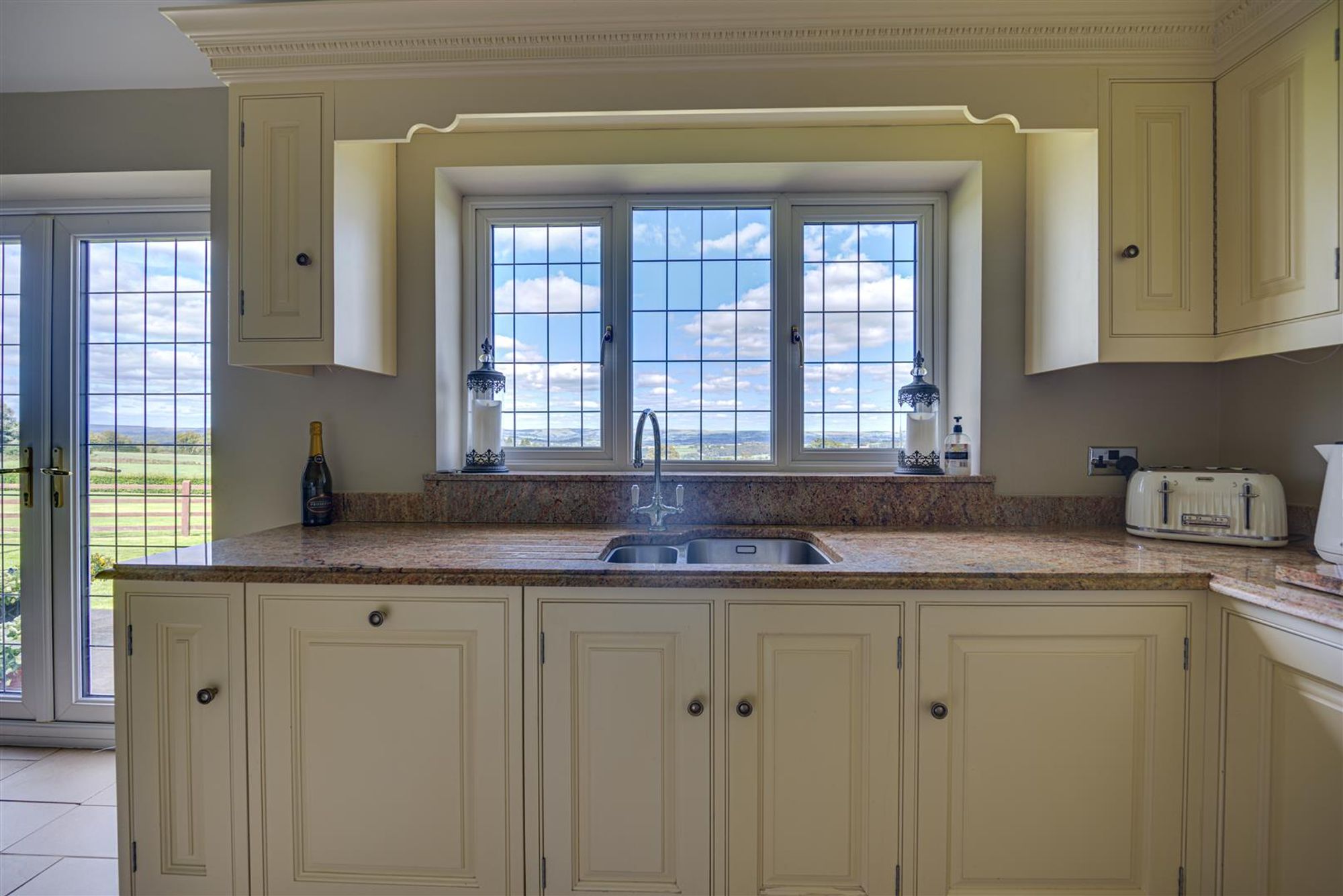 Inside, a spacious reception/dining hall flows through to an impressive multi-aspect lounge, anchored by a striking exposed brick fireplace. The expansive living dining kitchen, enhanced by vaulted ceilings, is the true heart of the home – superbly appointed with quality appliances, detailed finishes, and a generous entertaining island. Accommodation includes three large bedrooms, two luxury bathrooms, and plentiful storage, complemented by a boot room, double garage, and versatile outbuilding. The paddock offers potential for animal keeping, while the outbuilding could be adapted (STP).